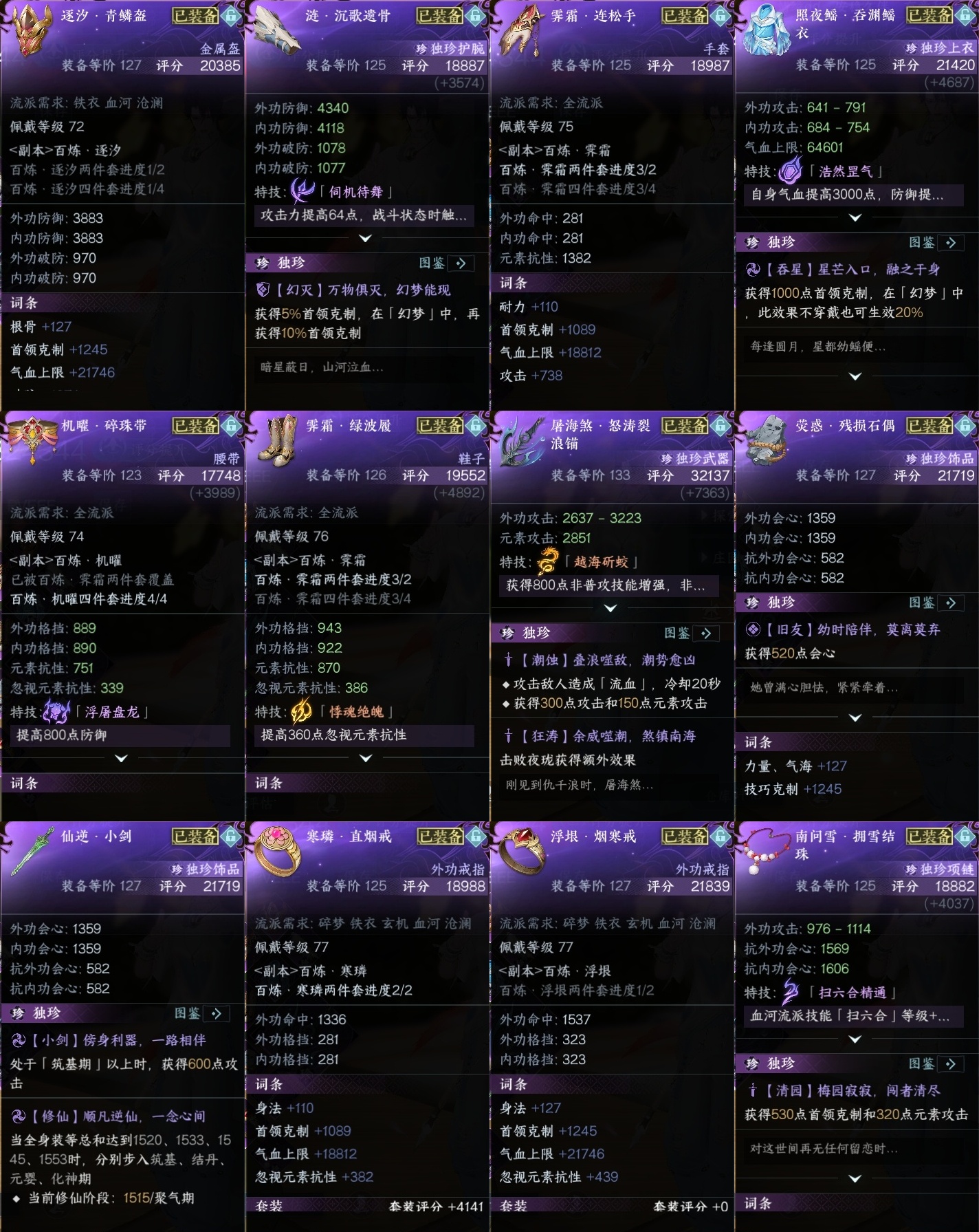 XY-076628921 1素问【把酒临风】【已用天赏石16】天霓染5, 转盘外观1, 副本外观1, 馆藏5级, 灵韵6, 9国色, 163305衣品, 76190国色值, 177套时装, 装备特技19金, 宠物图鉴8级