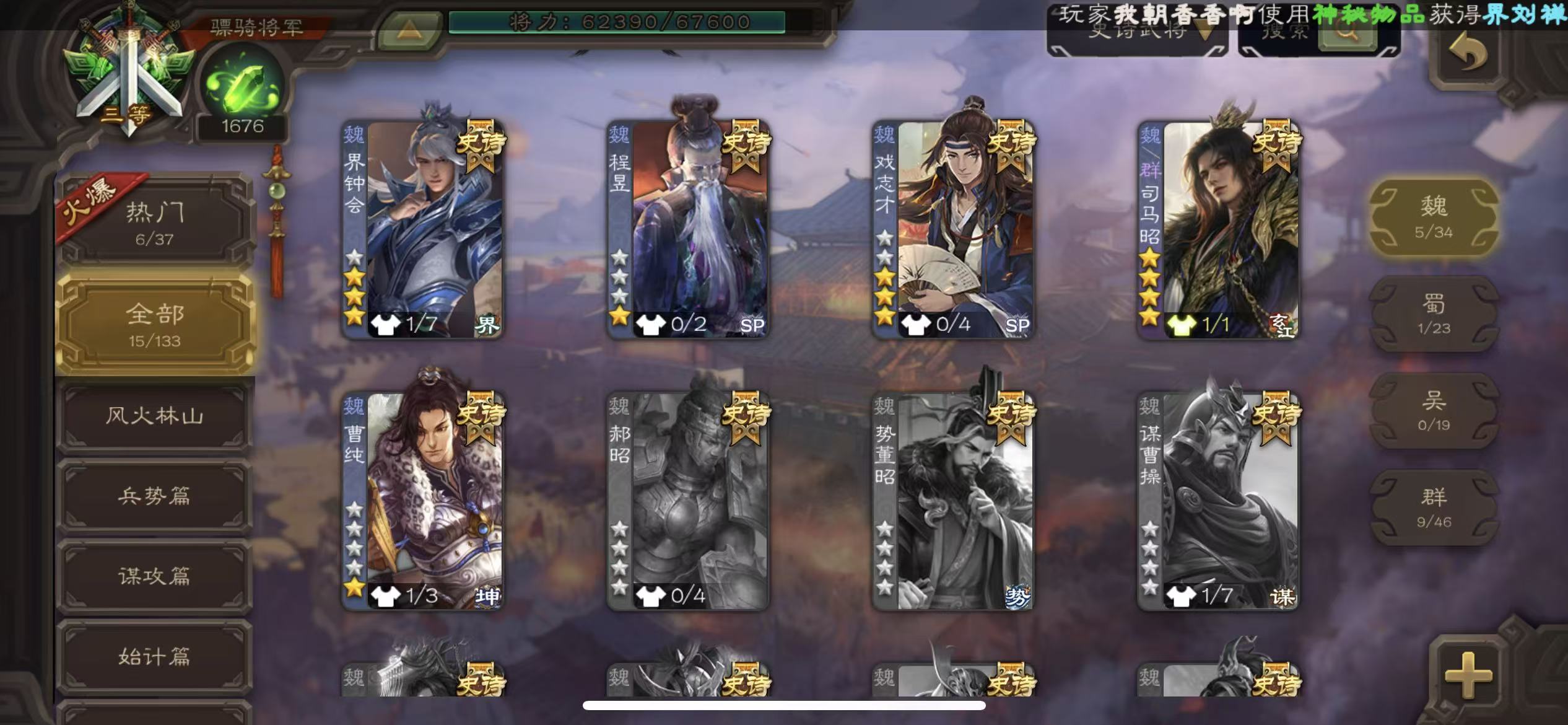 商品描述:骠骑15史诗动态司马昭友诸葛亮动态星黄忠界钟会戏子张琪琪张让神赵云谋赵云三卡