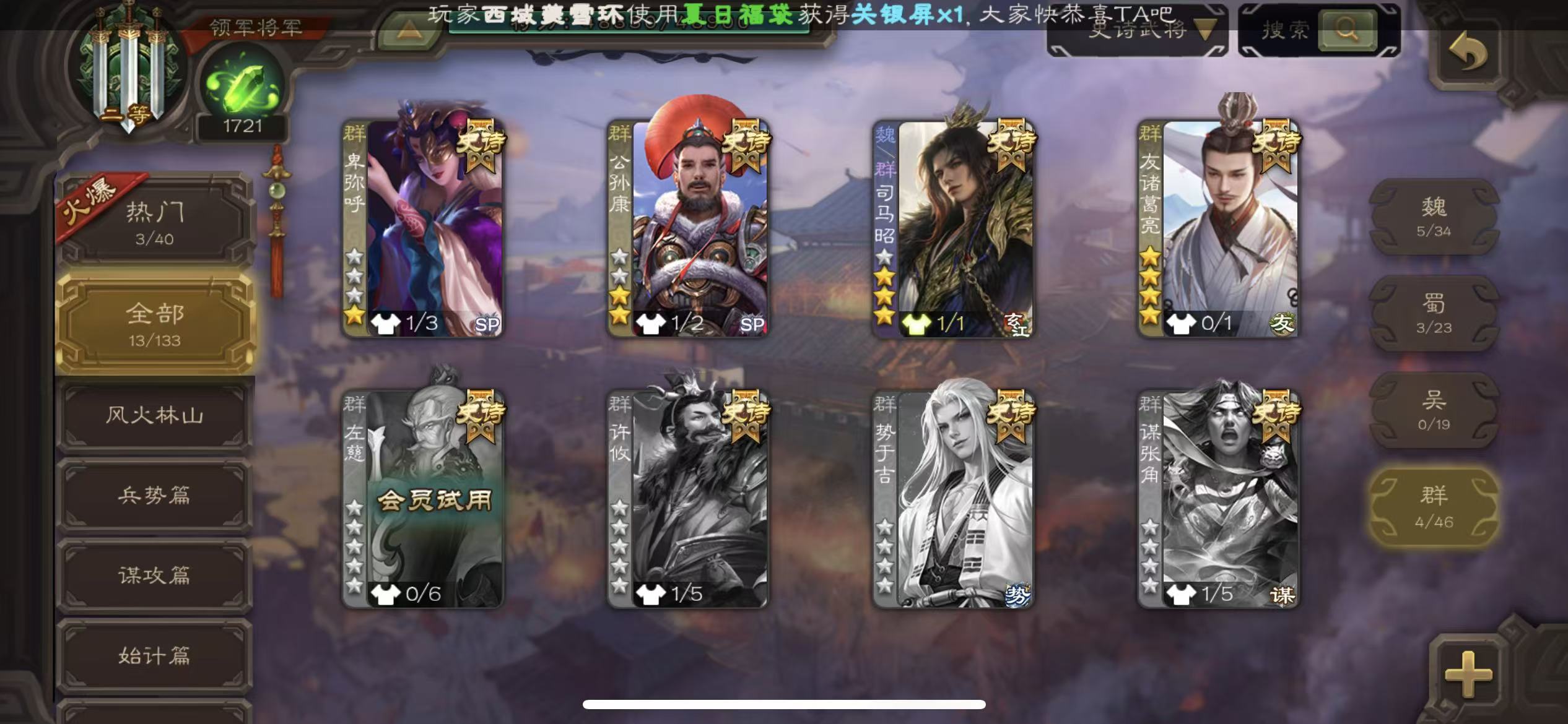 商品描述:二等领军动态司马昭神司马懿友诸葛亮动态星周不易动态赵嚷沙和尚神吕布