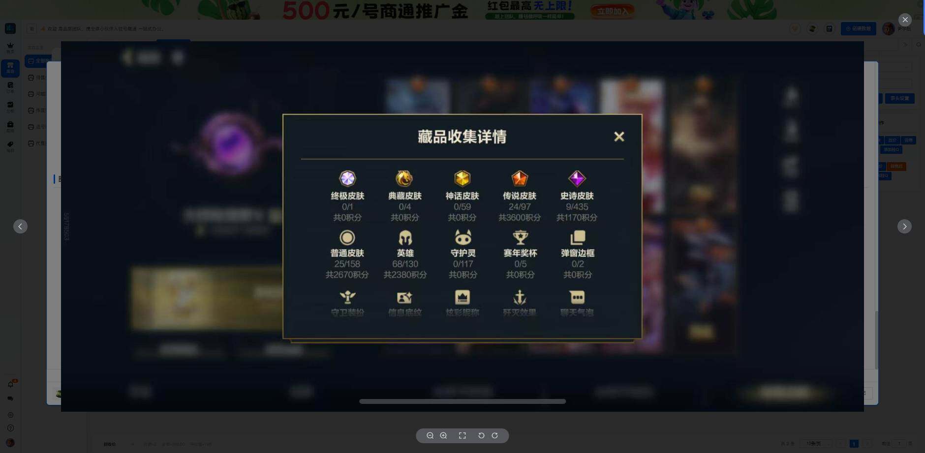 [12604999]1神话 2限定 22传说 43史诗 104皮肤 可二次 可修改实名 【优质装备】:K/DA ALLOUT萨勒芬妮,炼狱魔犬,律政大亨,日蚀骑士蕾欧娜,神龙尊者 驭风啸龙,神拳盲僧,神王盖伦,西部魔影卢锡安,西部天使寒冰,星域游侠卡牌,星之守护者阿狸,星之守护者 陨,驯龙炮手,源计划:联合,月蚀骑士蕾欧娜,玉剑传说 武剑仙,最终BOSS维迦,光明哨兵格雷福斯,星域武神贾克斯,灵魂莲华腕豪,魔女伊芙琳 【段位】:宗师 【神话皮】:夜星流火 金克丝 【限定皮肤】:穿星魔锋,赵云子龙 【传说皮】:海魔至尊 亚托克斯,地狱之门卫士