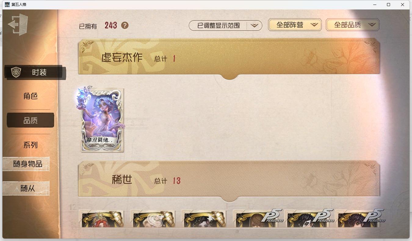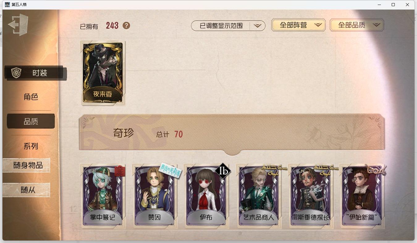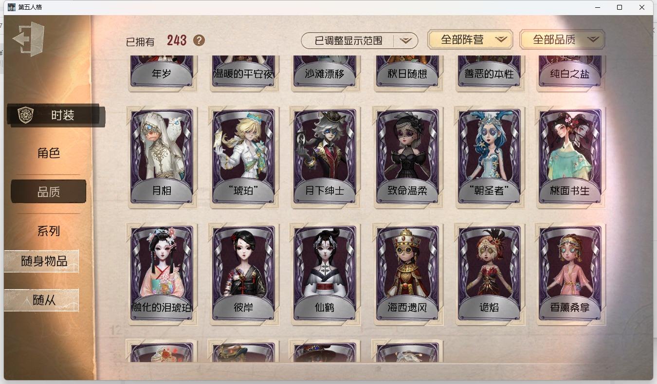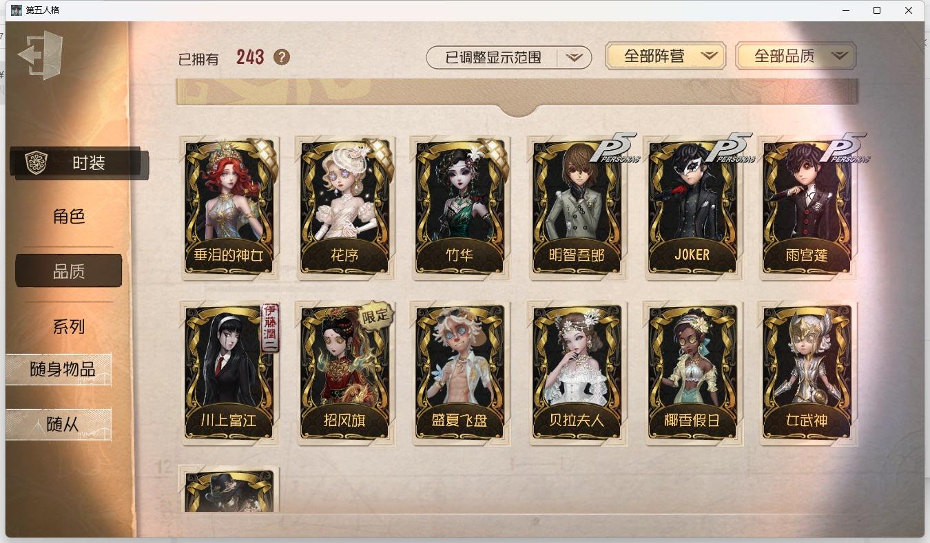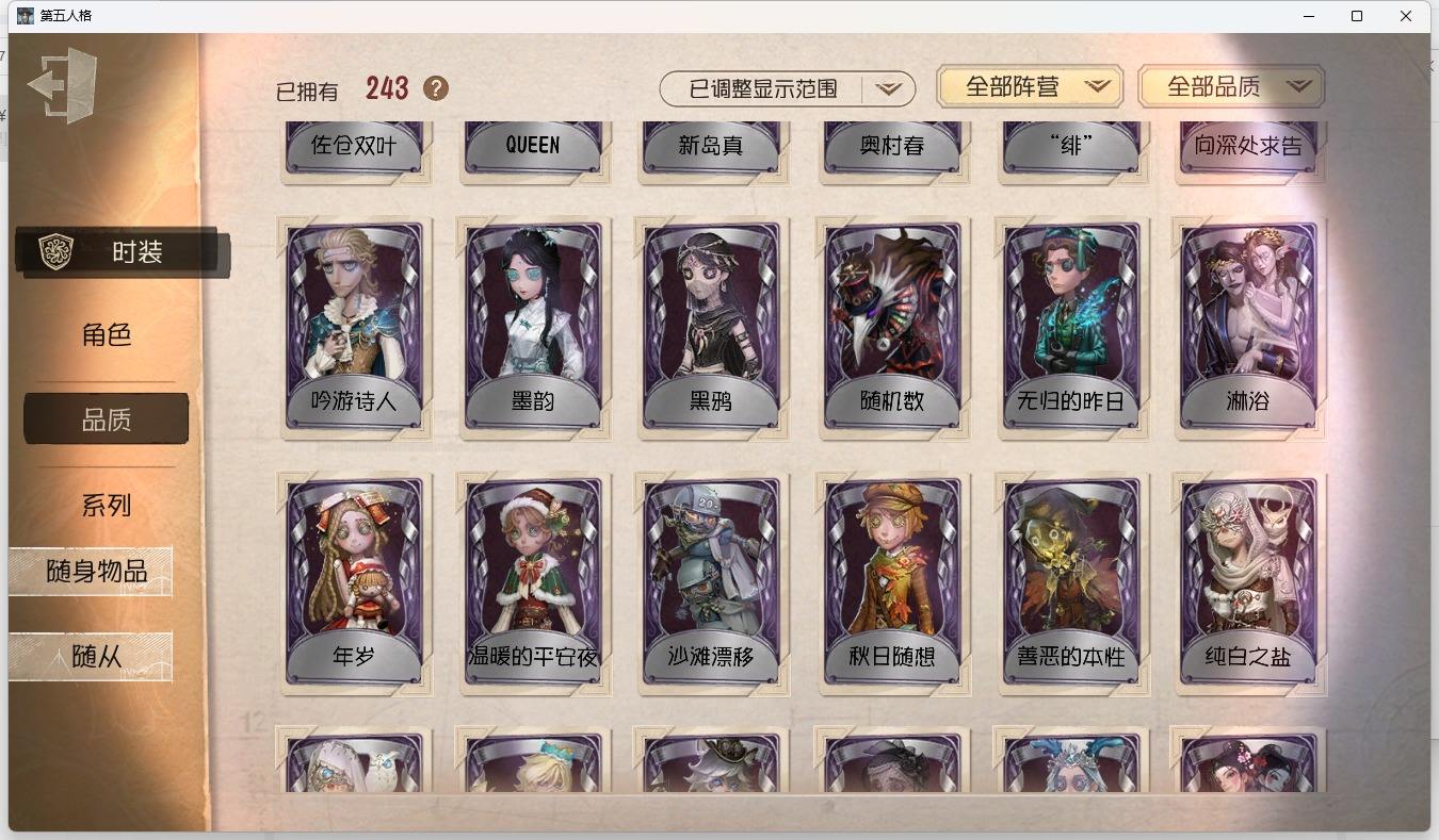 [14349997]苹果官服 邮箱账号 1虚妄杰作 243时装 13金皮 70紫皮 18随从 101随身物品 【时装】:古董商-招风旗,渔女-垂泪的神女,使徒-多加雷萨,小说家-最原终一,画家-温暖的平安夜,古董商-木兰,园丁-异想Hello Kitty,爱哭鬼-摩诺,渔女-百万人鱼,律师-亚伯拉罕·葛雷,祭司-“绯”,渔女-Chef K,古董商-填海平,邮差-秋日随想,“囚徒”-天海兰太郎,调香师-提炼师,古董商-黑鸦,咒术师-椰香假日,杂技演员-雨宫莲,杂技演员-JOKER,空军-爱神之吻,记者-伊布,红蝶-融化的泪琥珀,大副-雷斯垂德探长,雕刻家-善忘的海马体,骑士-艺术品商人,爱哭鬼-善恶的本性,教授-吟游诗人,画家-掌中篆记,26号守卫-秘密大厨,小说家-无归的昨日,冒险家-赞因,“法罗女士”-向深处求告,魔术师-动力芯,幸运儿-蛋小黄的好朋友,古董商-墨韵,宿伞之魂-桃面书生,摄影师-“琥珀”,勘探员-盛夏飞盘,“法罗女士”-VIOLET,古董商-菌丝研究,先知-纯白之盐,调酒师-逐浪的玫瑰,“法罗女士”-芳泽霞,“小女孩”-异动指针,小说家-“伊始新篇”,园丁-郁金香之梦,破轮-沙滩漂移,蜡像师-收藏品,空军-新岛真,空军-QUEEN,祭司-“朝圣者”,机械师-佐仓双叶,空军-“苏珊娜”,蜡像师-淋浴,魔术师-梅林,昆虫学者-可妮兔,“杰克”-夜来香,大副-明智吾郎,“噩梦”-随机数,红蝶-仙鹤,红蝶-彼岸,红蝶-更纱,红夫人-贝拉夫人,红蝶-竹华,舞女-高卷杏,舞女-女武神,舞女-PANTHER,调香师-致命温柔,调香师-Lady K,调香师-红菱艳,调香师-摩涅莫绪涅之梦,调香师-花序,园丁-奥村春,先知-月相,“小女孩”-年岁,前锋-坂本龙司,盲女-海西遗风,梦之女巫-川上富江,摄影师-月下绅士,入殓师-喜多川祐介【随身物品】:荣光的残像(稀世),茅龙书(稀世),夏(稀世),遗忘之花(稀世),火火火(奇珍),指挥(奇珍),海岸花环(奇珍),海之低语(奇珍),集邮册(奇珍),回旋镖(奇珍),炸药桶(奇珍),“全熟”(奇珍),凝固的声音(奇珍),漂浮(奇珍),充气海豚(奇珍),沙漠精灵(奇珍),咖啡壶(稀世),德米特里1号(奇珍),聚集哨笛(奇珍),手摇铃(奇珍),酩酊(奇珍),心海之梦(奇珍),欢呼(奇珍),糖果鬼(奇珍),秘密(奇珍),折柳(稀世),海底遗物(奇[13739442]苹果官服 邮箱账号 208时装 15金皮 63紫皮 8随从 78随身物品 【时装】:守夜人-KNIGHT-c3,破轮-胡桃夹子,勘探员-盖提亚之遗,飞行家-异相睡眠,小丑-捣蛋裘克,爱哭鬼-摩诺,作曲家-幽灵帆,舞女-西尔菲德,佣兵-中岛敦,园丁-宇宙女巫,杂技演员-茶话会,记者-华生小姐,“囚徒”-OPH.LUCA,骑士-Mentor K,教授-吟游诗人,病患-溯光,“杰克”-加里,雕刻家-善忘的海马体,邮差-华生医生,小丑-OPH.JOKER,邮差-潘塔龙,小说家-“伊始新篇”,哭泣小丑-熄灭的太阳,“法罗女士”-芳泽霞,时空之影-“有机磷”,入殓师-“温室”,“记录员”-删除符,击球手-迫降专家,哭泣小丑-炮弹飞船,勘探员-中原中也,爱哭鬼-雪上小王子,红夫人-女大公,画家-江户川乱步,红蝶-更纱,舞女-高卷杏,调酒师-海盐特调,幸运儿-双一,小丑-变脸王,魔术师-广津柳浪,梦之女巫-信使,前锋-SKULL,梦之女巫-川上富江,前锋-坂本龙司,摄影师-宿醉,“囚徒”-太宰治