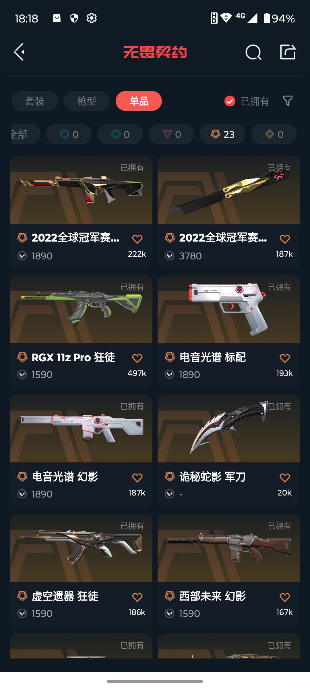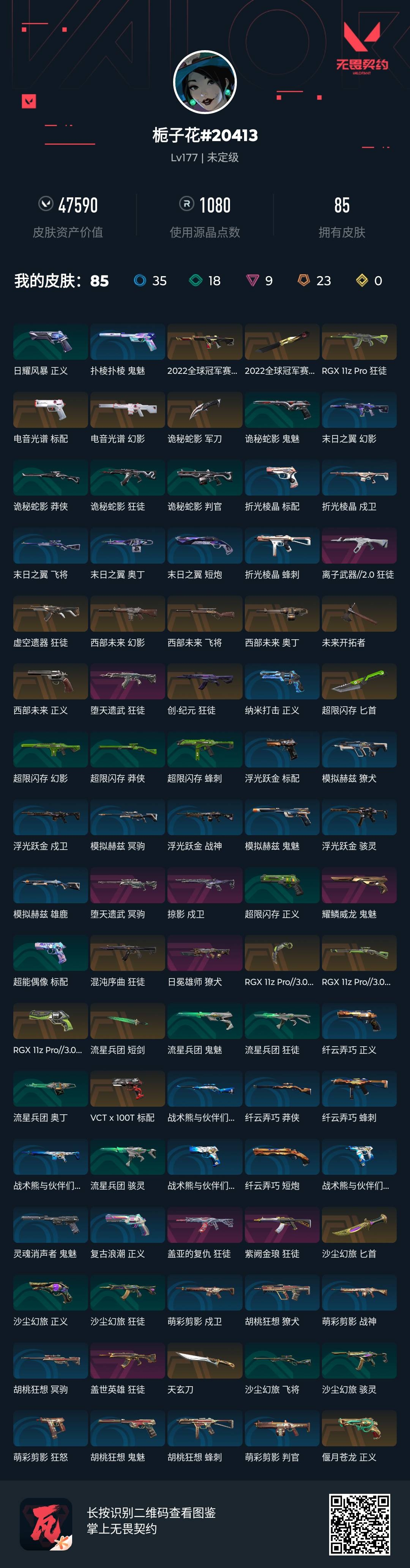 商品描述:[12909898]S189097 (2022全球冠军赛套装/RGX-11z-Pro//3.0套装/西部未来套装)无畏契约/177等级/未定级/27英雄/85皮肤/资产47590/已使用R点1080/剩余R点70/2022全球冠军赛-幻影,2022全球冠军赛-蝴蝶刀,西部未来-幻影,西部未来-奥丁,西部未来-飞将,西部未来-正义,未来开拓者,RGX-11z-Pro//3.0-莽侠,RGX-11z-Pro//3.0-正义,RGX-11z-Pro//3.0-爪刀, 诡秘蛇影-军刀,超限闪存-匕首,流星兵团-短剑,沙尘幻旅-匕首,天玄刀,RGX-11z-Pro-狂徒,电音光谱-幻影,虚空遗器-狂徒,创·纪元-狂徒,混沌序曲-狂徒,离子武器//2.0-狂徒,堕天遗武-狂徒,盖世英雄-狂徒,紫阙金琅-狂徒,盖亚的复仇-狂徒,日冕雄师-獠犬,掠影-戍卫,堕天遗武-冥驹,VCT-x-100T-标配,电音光谱-标配,偃月苍龙-正义,耀鳞威龙-鬼魅