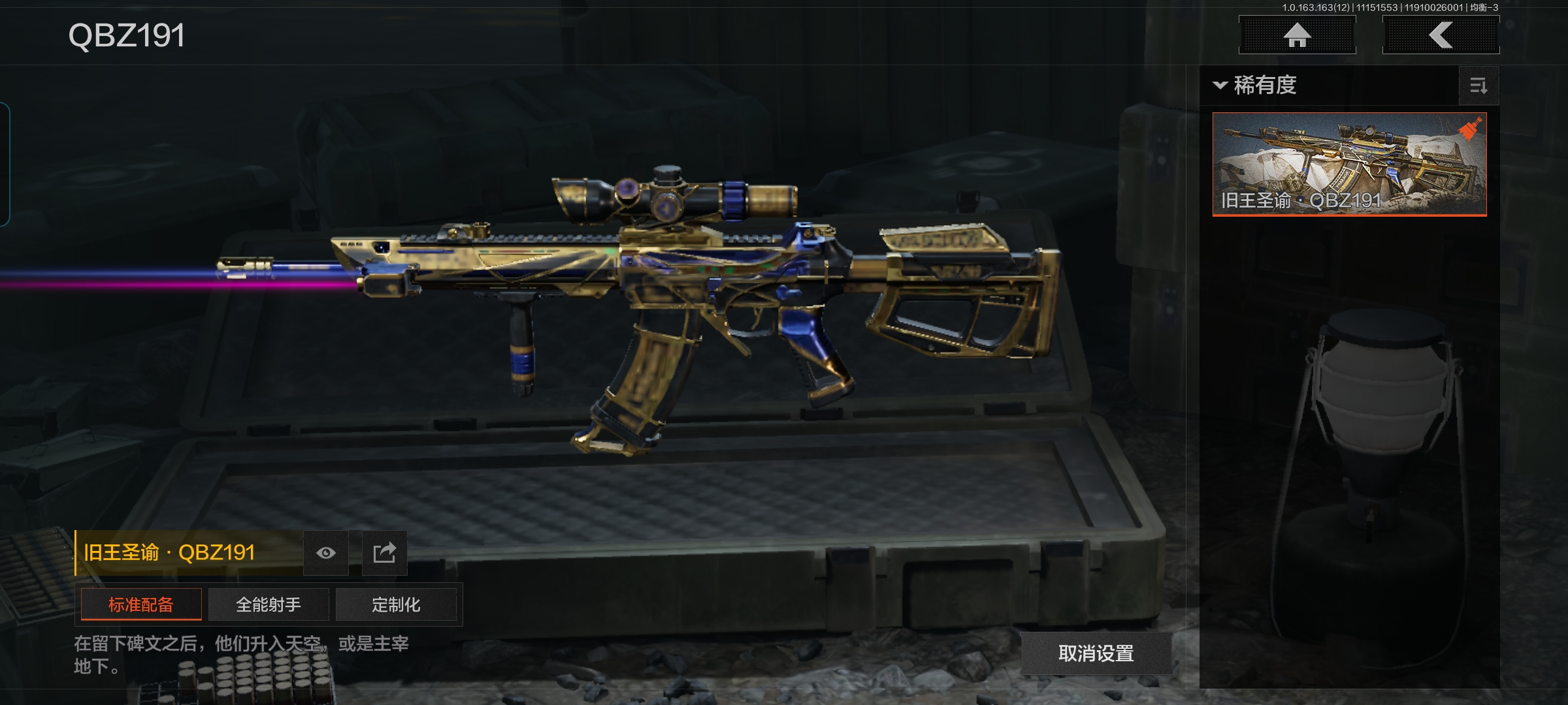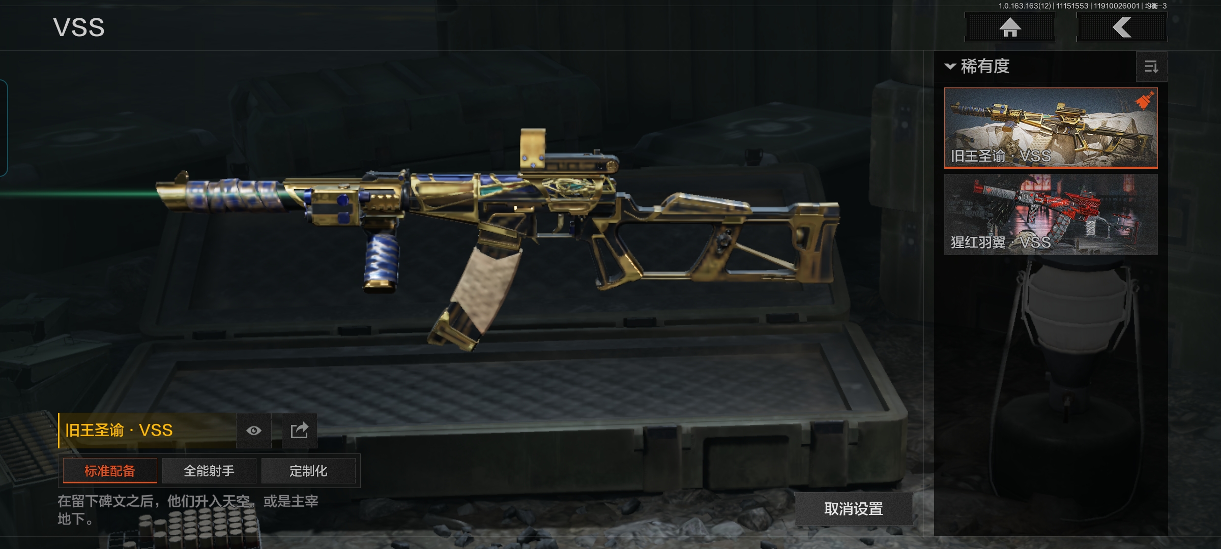 商品描述:MWT3798安卓Q-等级30-仓库价值1m-科恩币347813 【枪皮】 旧王圣谕·OBZ191 旧王圣谕·VSS 【套装】 城市户外运动套装 王国卫队礼装·轻装 森林守望特种服 林地作战服 【刀皮】 明刀·绣春 苍穹利爪