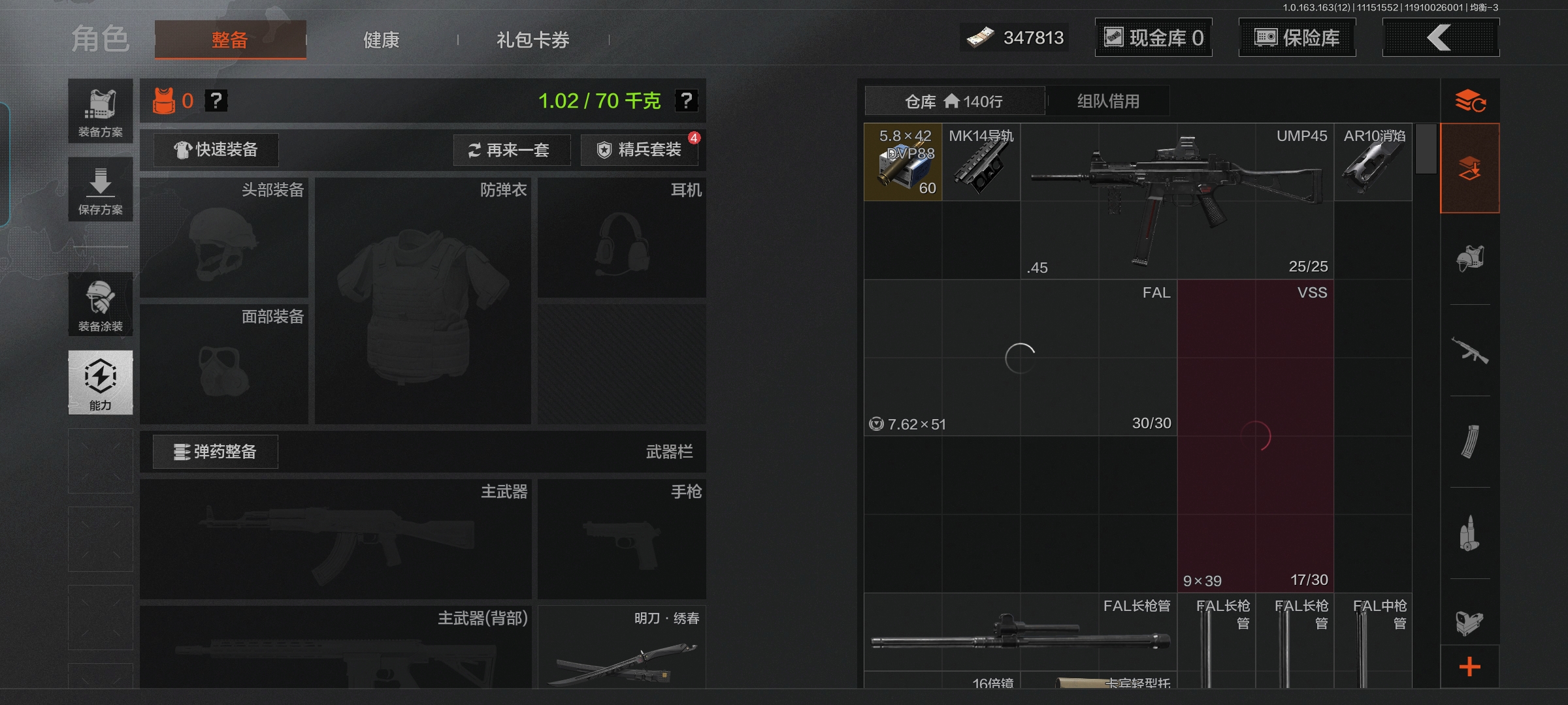 AQ393安Q-可二次-仓库价值:2.2M 科恩币: 525170 3刀皮: S-07折刀 工兵铲 来战·开山刀 金枪: 伦琴幻影· FAL 骑士之剑·VSS 武器: 来战·AKM 自喷网络·H416 北国内卫·MDR 鱼跃丹青·AK102 战术大师·AK74N 骑士之剑·AKS74U 火力倾泻·AUG 战术大师·AEK 幻象·FAMAS 典礼武器·MCX 利齿风暴·MPX 典礼武器·14