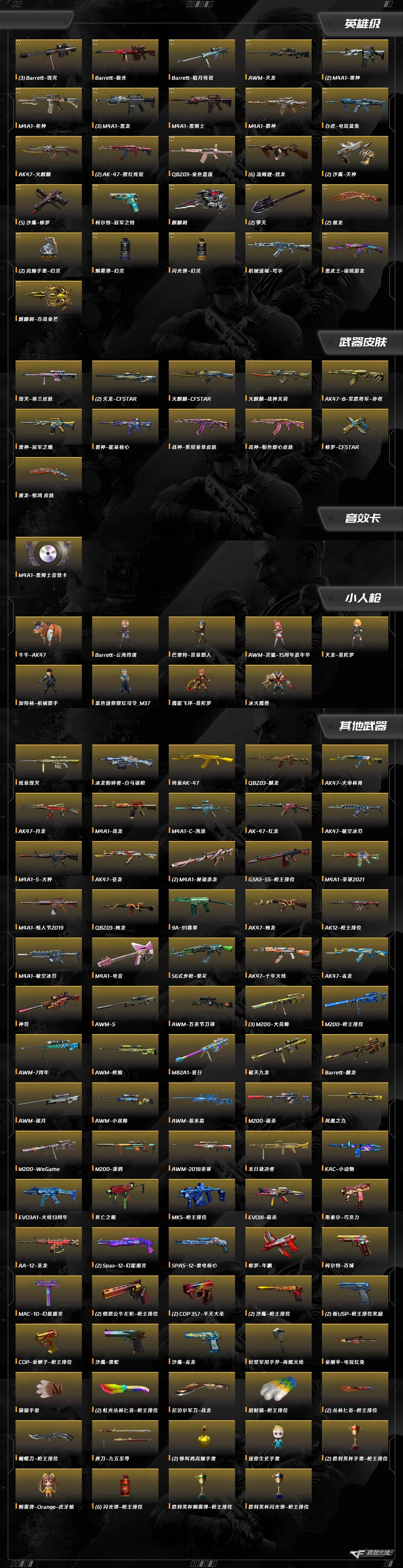 陕西一区 有二次 可排位 78v 【传说破晓+晴雅+炽芒蝶刃】【M200-幻神+幻神-宠儿+幻神-N9+幻神-星火小队签名珍藏版+幻神-冠军之幻+幻神-丹凤+幻神音效卡+USP雷暴+柯尔特-荣耀世冠+冠军之刃*2】【王者星霆】【QBZ金色蔷薇+QBZ-CFS2024+QBZ王者蔷薇】【Scar白虎+白虎-暗星+M4A1-青龙】【火麒麟+火麒麟-HeartShot+火麒麟音效卡】【雷神+雷神-巅峰荣耀+雷神-LGD18冠军】【毁灭+毁灭-HeartShot+毁灭-AG15冠军+毁灭音效卡】【天龙+天龙-能量核心】【极光+极光音效卡】【斩神刀-雷暴+雷暴手雷套】【幻灵之锋+幻灵手雷套】【雷霆王者之锋+雷霆王者手雷套】王者之魄 王者之势 王者之烈 王者玉锋 炫金火麒麟 炫金骑士 炫金毁灭 炫金天神 无影 极光 裁决 修罗 天神 屠龙 麒麟刺 【小人枪】COP白鲨 【角色】4防王者云悠悠 晴雅 奇洋探员 王者玲珑 王者凌霄 云海玲珑 岚兮儿 魅影 如赛季更新等不可抗拒因素发生变化、时限道具不保证所剩时间 如有号中有战队需解除或退出只能协调解除不保证解除成功四川一区 有二次 可排位 11v 【M200-幻神+幻神-纸灯龙】【王者芳薇】【M4A1-青龙】【幻灵之锋+幻灵手雷套】天启 黑鲨 修罗 等各种永久道具详情看图(截图展示段位不代表实际段位,如赛季更新等不可抗拒因素发生变化、时限道具不保证所剩时间,其余道具看截图或咨询客服)