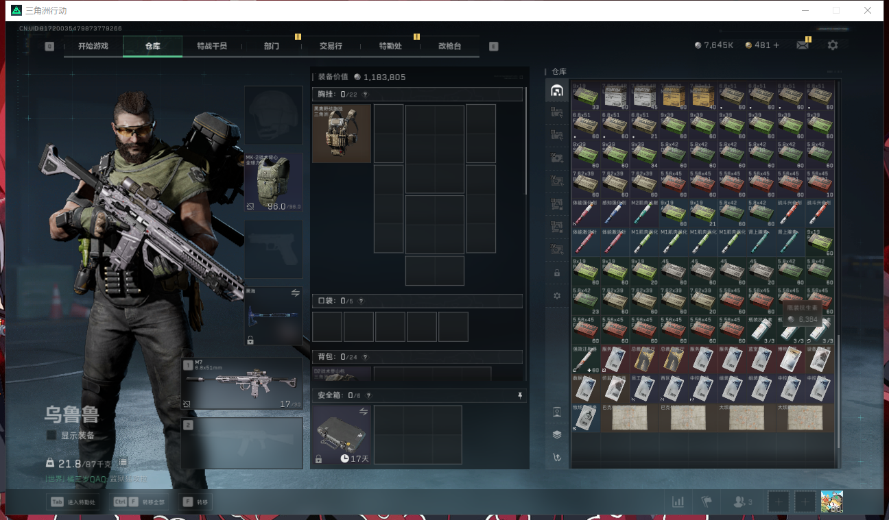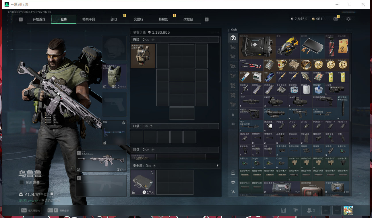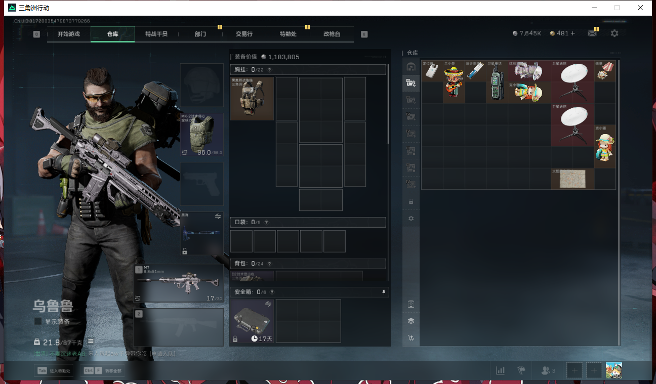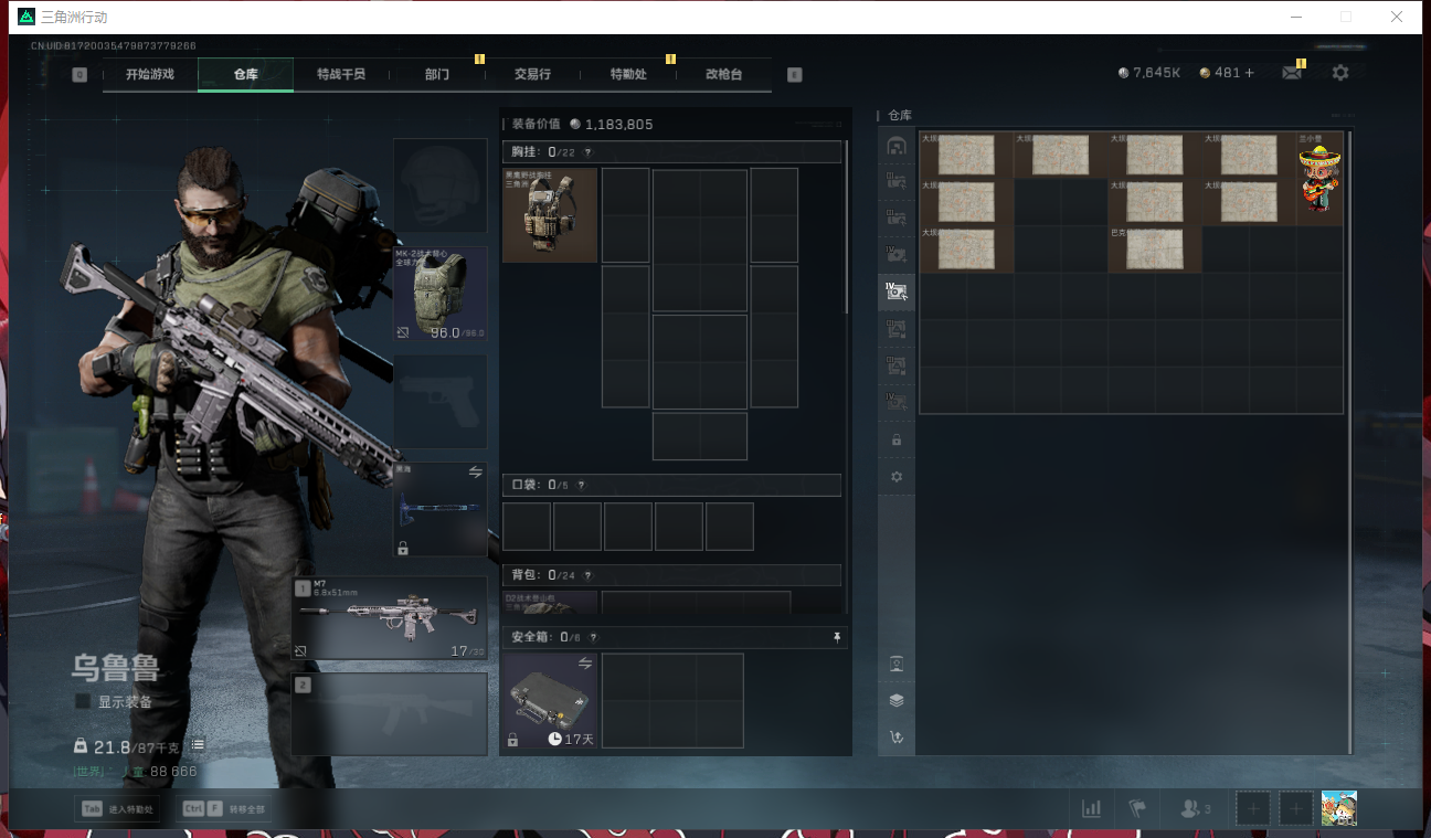 N6260/QQ区/哈夫币1762W/总资产241.3M/行动等级60/战场等级9/近战/黑鹰/干员/蜂医送葬人无题密令/枪皮/M4A1突击步枪阿米娅/CAR15突击步枪阿米娅/勇士冲锋枪能天使午夜邮差/725双管散弹枪送葬人无题密令/复合弓黑天际线/找回包赔