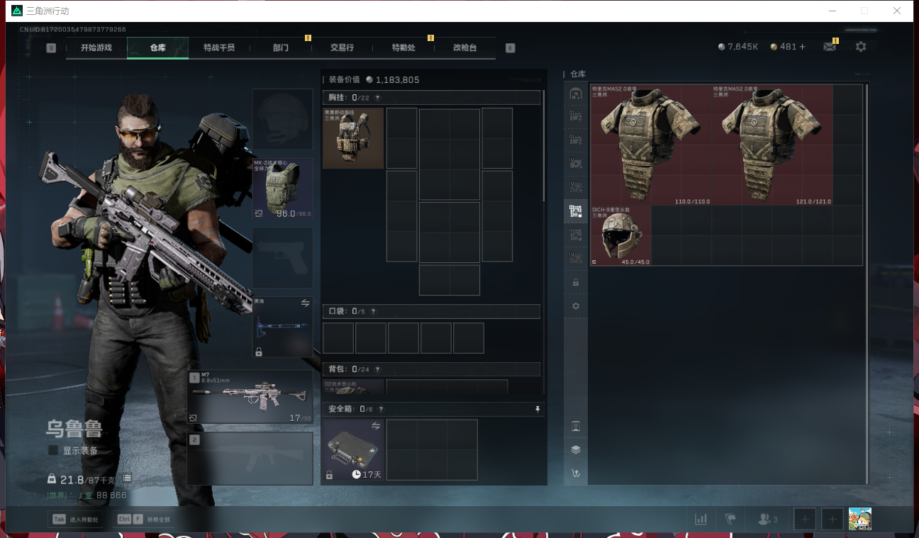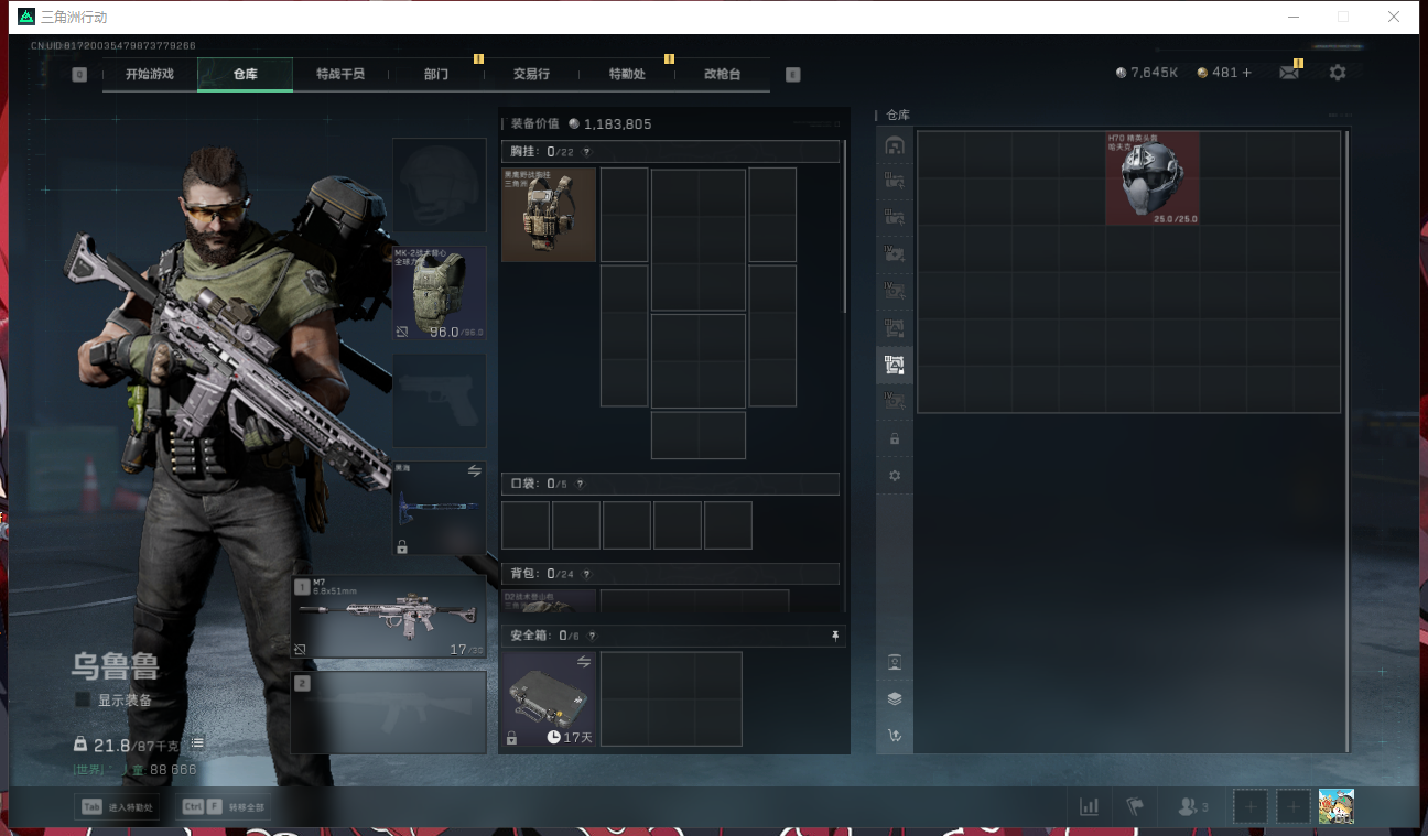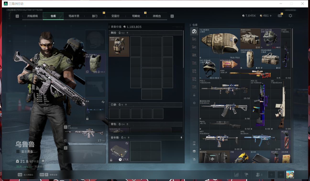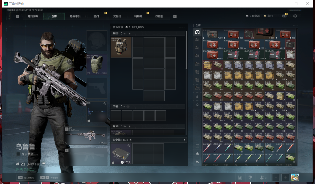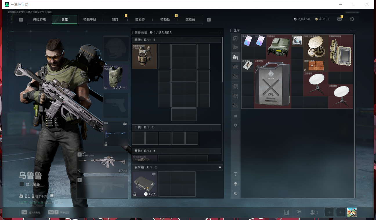 N6260/QQ区/哈夫币1762W/总资产241.3M/行动等级60/战场等级9/近战/黑鹰/干员/蜂医送葬人无题密令/枪皮/M4A1突击步枪阿米娅/CAR15突击步枪阿米娅/勇士冲锋枪能天使午夜邮差/725双管散弹枪送葬人无题密令/复合弓黑天际线/找回包赔