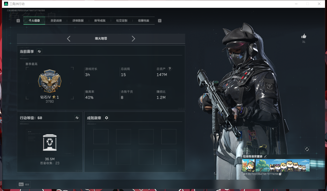 SH3908 总资产636M/6格安全箱/18AW/露娜-黑天际线/蜂医-送葬人无题密令/仓库9/指挥中心3/训练中心6/靶场4/细节看图