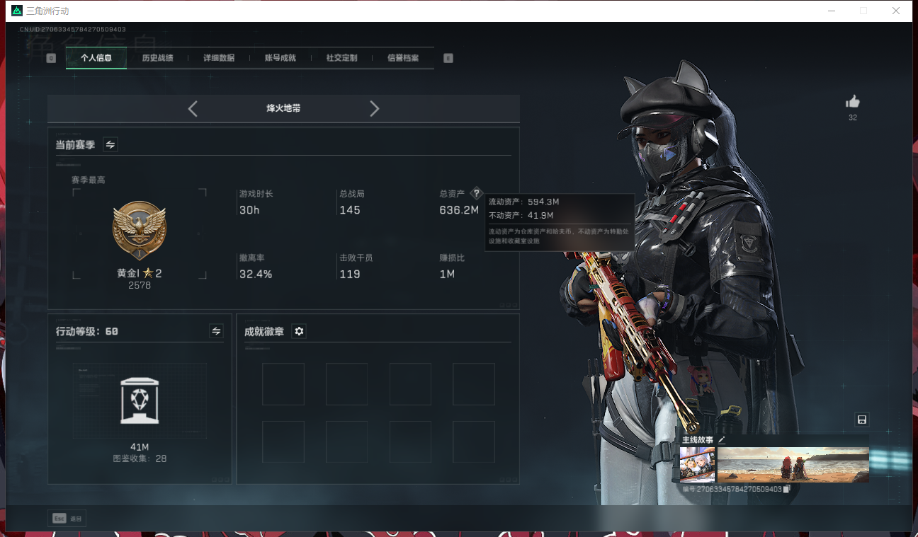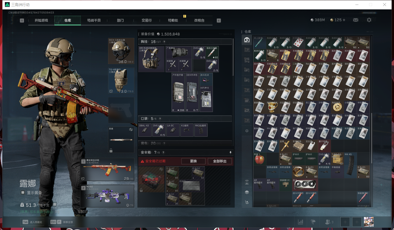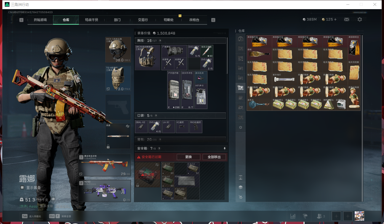 SH3908 总资产636M/6格安全箱/18AW/露娜-黑天际线/蜂医-送葬人无题密令/仓库9/指挥中心3/训练中心6/靶场4/细节看图