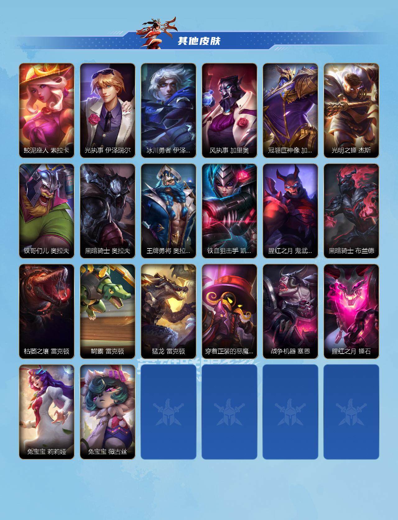 【LSC101】130英雄/706皮肤/傲世宗师/超武乾坤:虹影 劫/超武乾坤:孤拳 瑟提/超武乾坤:裁决 德莱厄斯/超武乾坤:征服 莎弥拉/冠星耀辰 盖伦/臻藏 光影巨翼 亚托克斯/定海神珍:御定乾坤 孙悟空/摄魂使者 薇恩/至臻 斗魂无双 赵信/光谱幻影 金克丝/至臻 喵喵魅影 金克丝/夜星流火 金克丝/星域游侠 圣时豪杰 崔斯特/春晖仙子 苍云缥缈 卡莎/灰烬征服者 潘森/KBG 任凭浪起 破浪 菲奥娜/海克斯科技 安妮/臻藏 御风墨影 亚索/渔帆满载 亚索/星之守护者 永绽盛芒 阿狸/臻藏 西部魔影 卢锡安/至臻 水晶玫瑰 格温/海克斯科技 嘉文四世/银鞍玉甲 嘉文四世/黎明使者 破