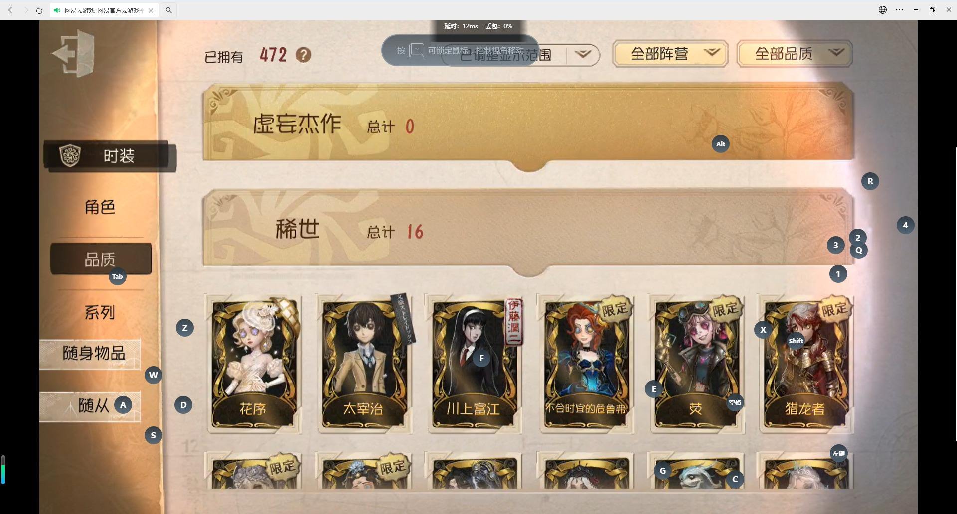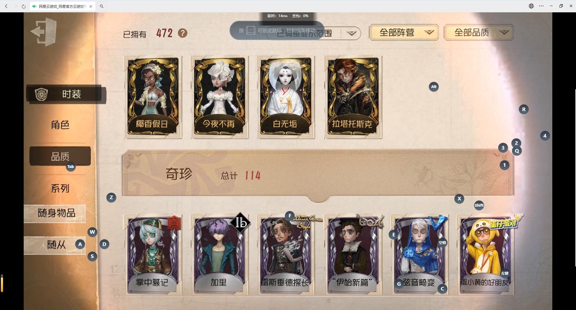 商品描述:[13062331]VIVO 手机账号 706时装 17金皮 47紫皮 29随从 185随身物品 【时装】:拉拉队员-荧,玩具商-入间美兔,心理学家-长夜,雕刻家-白兔术士,爱丽丝·德罗斯-片刻闲暇,渔女-Chef K,邮差-“亡灵”,咒术师-椰香假日,“囚徒”-天海兰太郎,作曲家-猎龙者,杂技演员-ACE,蜡像师-星相师,医生-司药,孽蜥-耶梦加得,古董商-墨韵,渔女-百万人鱼,机械师-纸心,祭司-“厄运”,机械师-七海千秋,机械师-咫尺天涯,魔术师-光学镜面,雕刻家-“夜魔”,红夫人-夜潮,红蝶-白无垢,调酒师-“宴舞”,调香师-花序,守墓人-壁画修复员,调香师-今夜不再,调香师-红菱艳,“小女孩”-滚滚伙伴,医生-往昔,幸运儿-拉塔托斯克,盲女-海女巫,梦之女巫-川上富江,宿伞之魂-残花泪,宿伞之魂-程小时&陆光,宿伞之魂-十字路口的美少年,“囚徒”-太宰治