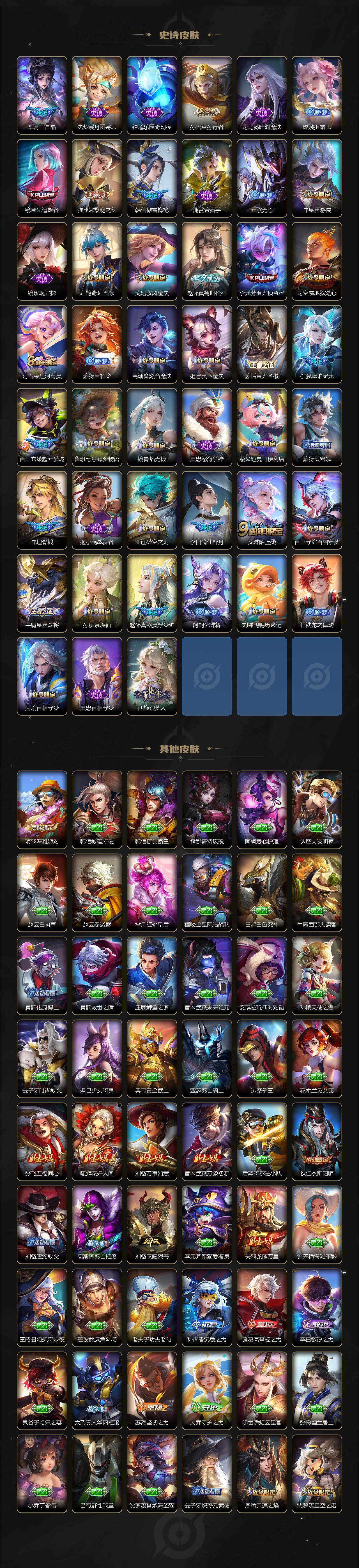 商品描述:[13108519]Xr41817-安卓Q-V9-永恒钻石I段位-127英雄-355皮肤-3典藏-1无双--21传说-86史诗【英雄全皮】:刘邦全皮,曜全皮,蒙恬全皮,赵怀真全皮,戈娅全皮,空空儿全皮,影全皮【荣耀典藏】:芈月大秦宣太后,李白鸣剑曳影,韩信弑枪猎影【无双皮肤】:曜器灵螭龙剑【传说皮肤】:澜愿照九州拓,云缨幻光神枪,桑启鸣野蒿,赵云乘龙铭钟鼎,澜逐花归海,露娜霜月吟,马可波罗妄想实况,夏洛特浮生妄,曜山海苍雷引,李白诗剑行,马超无双飞将,露娜启示之音,裴擒虎寅虎赤拳,曜李逍遥 ,公孙离祈雪灵祝,镜炽阳神光,虞姬启明星使,曜云鹰飞将,张良黄金白羊座,百里玄策白虎志,宫本武藏地狱之眼【限定皮肤】:暃埋骨钱,蒙犽顽岩魄,蔡文姬夏日便利店,大乔绒语心约,虞姬夏日便利店,姜子牙天穹之誓,杨戬破阵退雄兵,李白谪仙醉月,狄仁杰阴阳师,赵云皇家上将,嬴政优雅恋人,高渐离死亡摇滚,扁鹊奇幻香踪,芈月白晶晶,周瑜赤莲之焰,元歌云间偶戏,元歌无心,甄姬落雪兰心,马可波罗妄想实况,狄仁杰魔术师,项羽海滩派对,露娜启示之音,刘邦夺宝奇兵,韩信逐梦之影,韩信傲雪梅枪,兰陵王金庭之子,孙悟空至尊宝,孙悟空孙行者,李元芳匿光侦查者,李元芳云中旅人,虞姬启明星使,杨戬潮玩骑兵,雅典娜黎明之约,太乙真人华丽摇滚,百里玄策白虎志,百里玄策原初追逐者,公孙离祈雪灵祝,沈梦溪星空之诺,沈梦溪大漠名商,裴擒虎李小龙,裴擒虎寅虎赤拳,裴擒虎擒涛扼浪,云中君纤云弄巧,嫦娥拒霜思,嫦娥暖冬兔眠,曜李逍遥 ,曜山海苍雷引,西施玲珑珍味,蒙犽狂想玩偶喵,鲁班大师探海日志,镜匿光追影者,桑启海盐诗旅,夏洛特浮生妄,暃星界游侠,戈娅驭风魔法,艾琳流音漫舞,赵怀真鹤归松栖,司空震地狱燃心,阿古朵江河有灵,张良古海寻踪,蒙犽百解令,蒙恬荣光圣徽,高渐离燃音魔法,妲己灵卜魔法,鬼谷子天穹祈灯,伽罗琥珀纪元,赵云乘龙铭钟鼎,百里玄策超元猎域,沈梦溪龙舞盛年,鲁班七号蔬乡物语,李元芳蔬乡物语,刘邦剑破天穹,程咬金群星魔术团,镜青焰无极,项羽苍威无极,刘备异域游侠,周瑜熔金海岸【年限皮肤】:百里玄策白虎志,裴擒虎寅虎赤拳,公孙离祈雪灵祝,曜山海苍雷引,赵云乘龙铭钟鼎【赛季限定】:兰陵王金庭之子,张良古海寻踪,李元芳云中旅人,雅典娜黎明之约,百里玄策原初追逐者,沈梦溪大漠名商,裴擒虎擒涛扼浪,鲁班大师探海日志,桑启海盐诗旅,鬼
