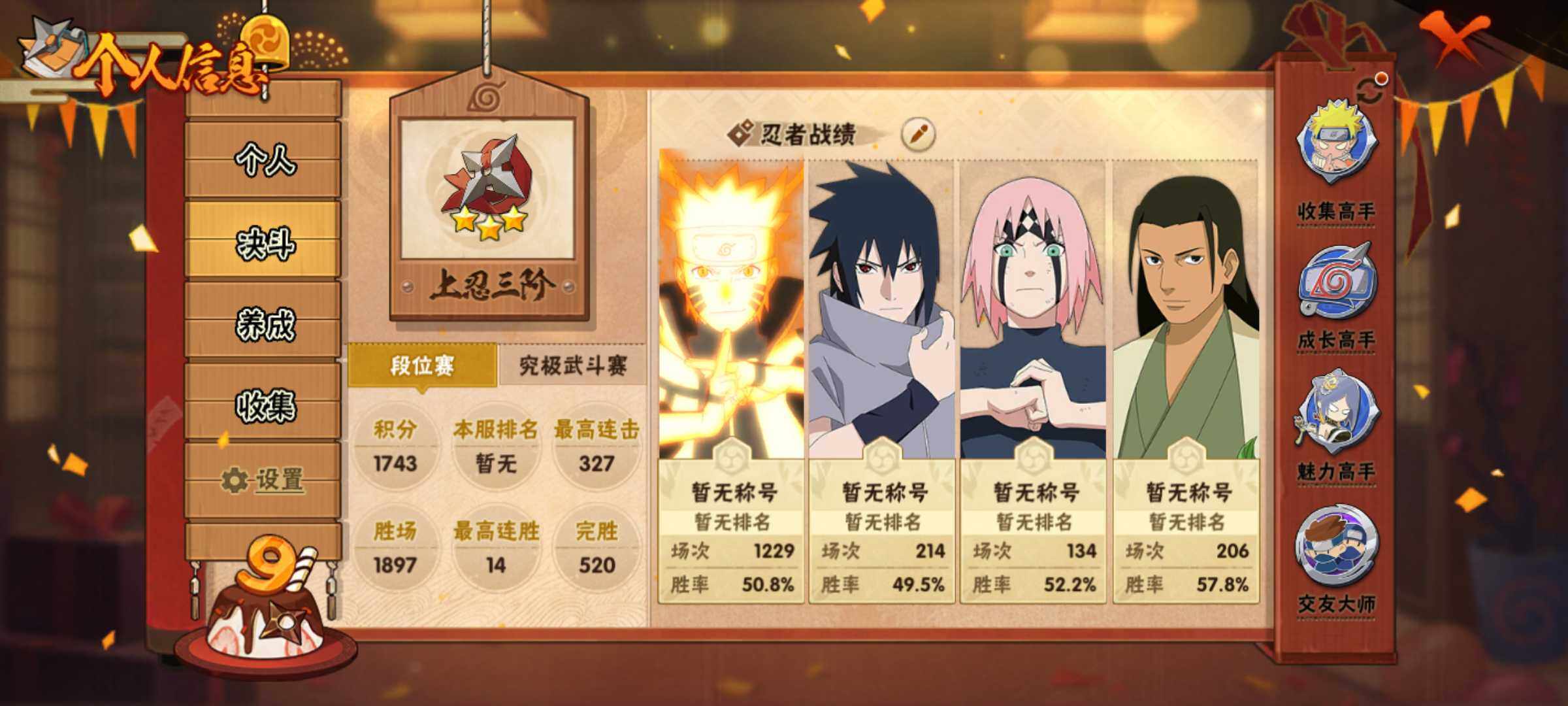 苹果Q309区:可二次实名 VIP13,战力:13070313,S忍者数量:39,A忍者数量:58,本服排名:187,战区排名:未上榜,通灵兽数量:22,时装数:18,段位:暗部1阶,忍者星数:68711s❤20A佩恩 「天道」;大蛇丸;千手扉间;纲手;自来也;千手柱间;长门 「秽土转生」;艾 「四