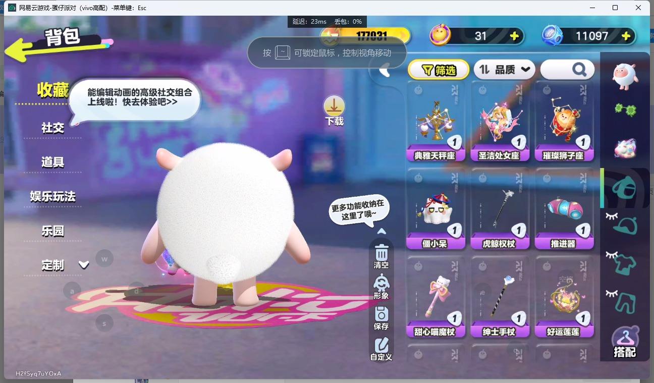 天穹骑士-湛 精灵莉斯尔 圣翼天使-恋 紫色套装: 小太阳葵葵 海藻偷偷 狸猫大力 航天员莱卡 仓鼠米仔 豚豚服务员 饶舌诗人 魔灯闪闪 雪王 菜鸟笨笨 三角龙小萨 失心熊 云村音音 八音盒温妮 水母尤莱亚 水母莱莱 机械鼓手贝克 吉他手卡萝 蓝樱爱丽丝 菠萝苏苏 仔仔熊 DongDong 甜心猫萝拉 哞哞 淘气丸子[10471471]【XQD128】区服:官服安卓苹果都可以玩 9.7可换绑登录方式:邮箱账号历史潮流:56288氪条:43410幻彩套装数量:5紫色套装数量:32幻彩套装:捕梦软软,川剧少女梧桐,星云船长洛洛,太空船长贝贝,主唱矅星紫色套装:红小豆,水波蛋,仔仔熊,雪王,星云咩咩面饰:炫光眼镜,梦幻天马头冠,流星眼镜腰饰:彩虹独角兽,星星糖罐,太阳神鸟挂坠背饰:电极蝴蝶结,美梦指南针,太空猫包载具:星河弹弹车,