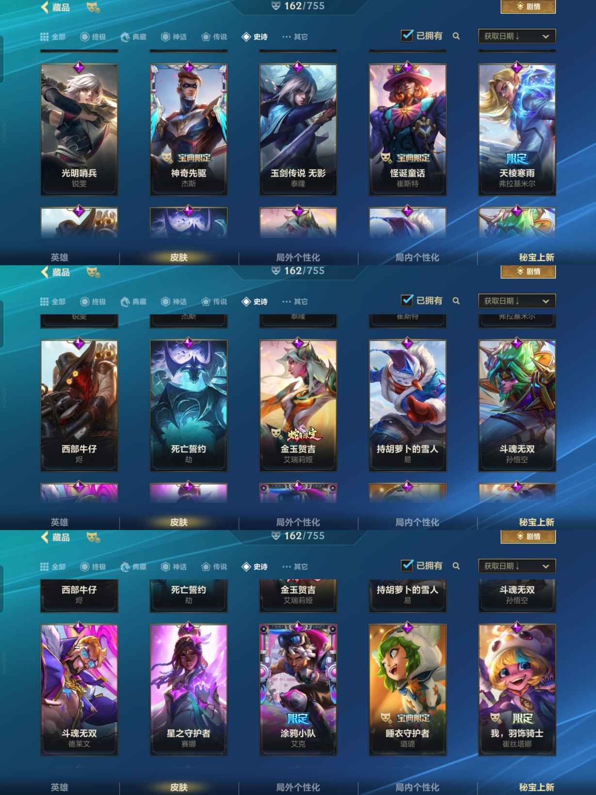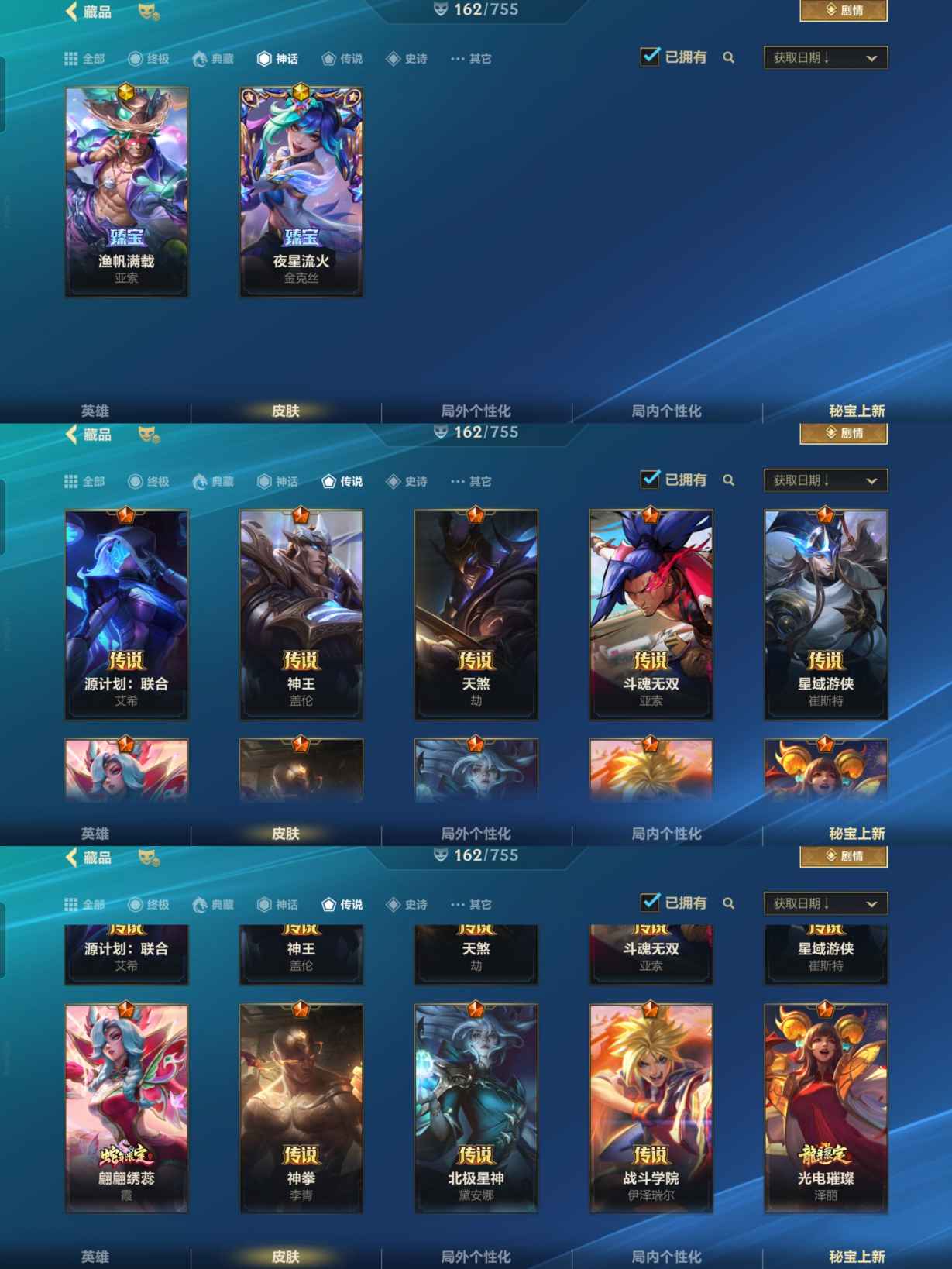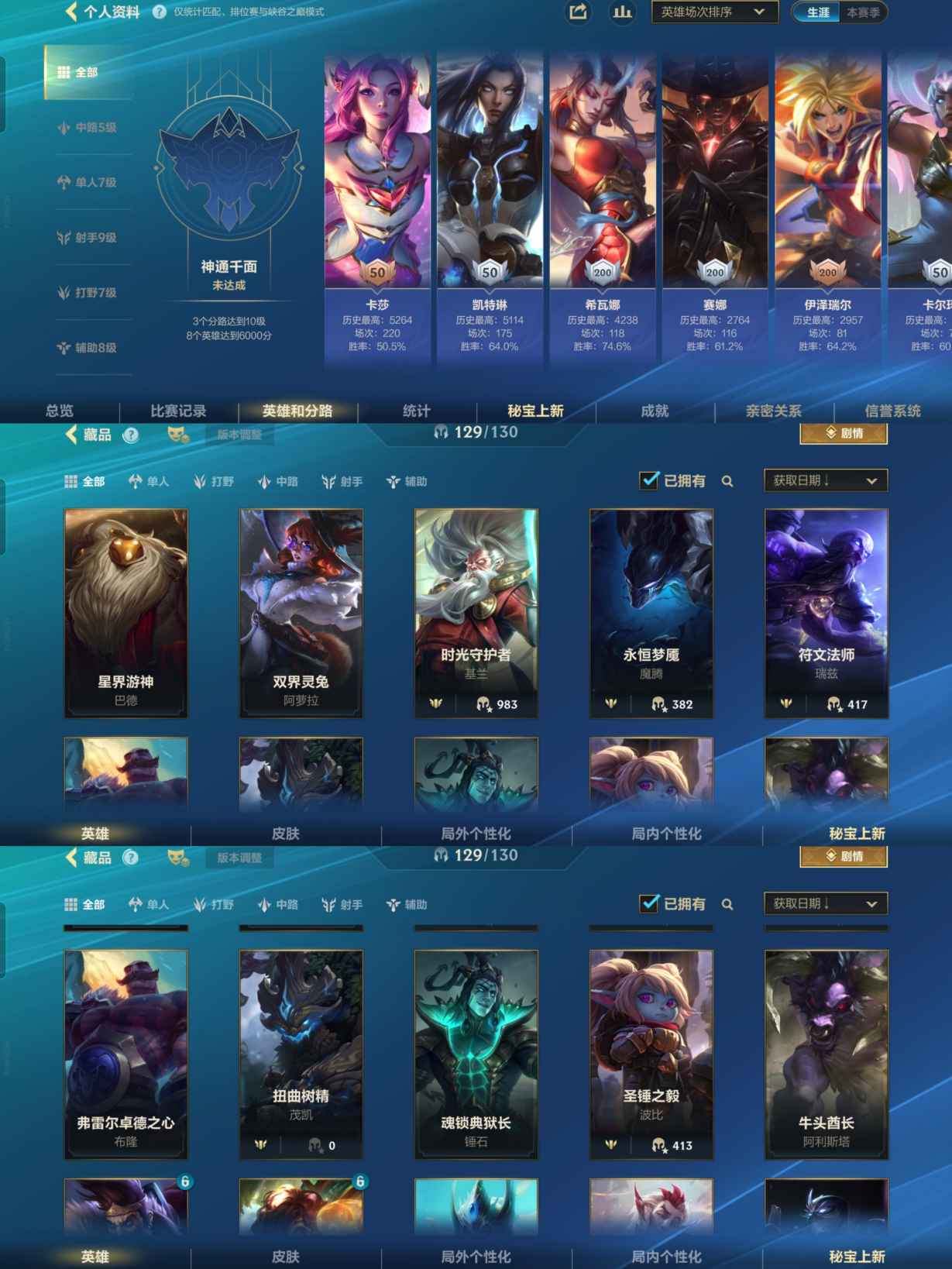 【LSC101】130英雄/706皮肤/傲世宗师/超武乾坤:虹影 劫/超武乾坤:孤拳 瑟提/超武乾坤:裁决 德莱厄斯/超武乾坤:征服 莎弥拉/冠星耀辰 盖伦/臻藏 光影巨翼 亚托克斯/定海神珍:御定乾坤 孙悟空/摄魂使者 薇恩/至臻 斗魂无双 赵信/光谱幻影 金克丝/至臻 喵喵魅影 金克丝/夜星流火 金克丝/星域游侠 圣时豪杰 崔斯特/春晖仙子 苍云缥缈 卡莎/灰烬征服者 潘森/KBG 任凭浪起 破浪 菲奥娜/海克斯科技 安妮/臻藏 御风墨影 亚索/渔帆满载 亚索/星之守护者 永绽盛芒 阿狸/臻藏 西部魔影 卢锡安/至臻 水晶玫瑰 格温/海克斯科技 嘉文四世/银鞍玉甲 嘉文四世/黎明使者 破