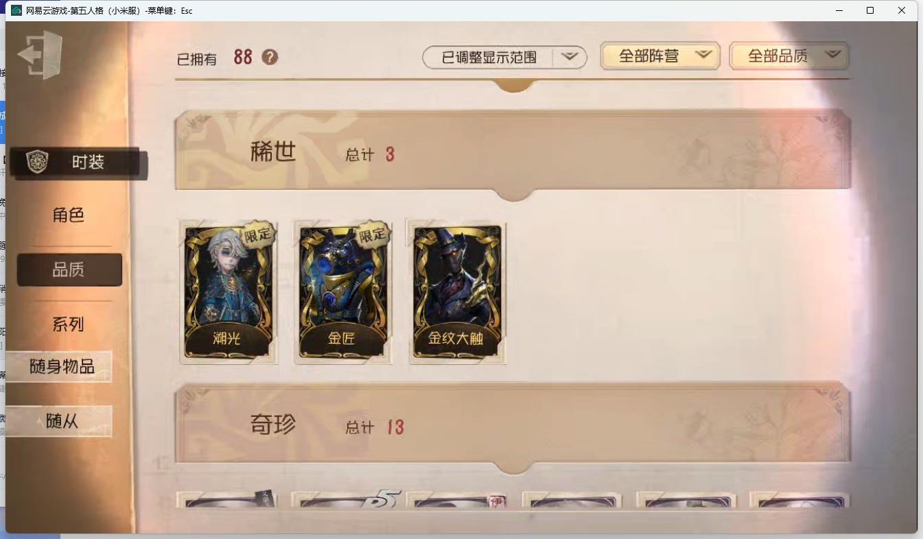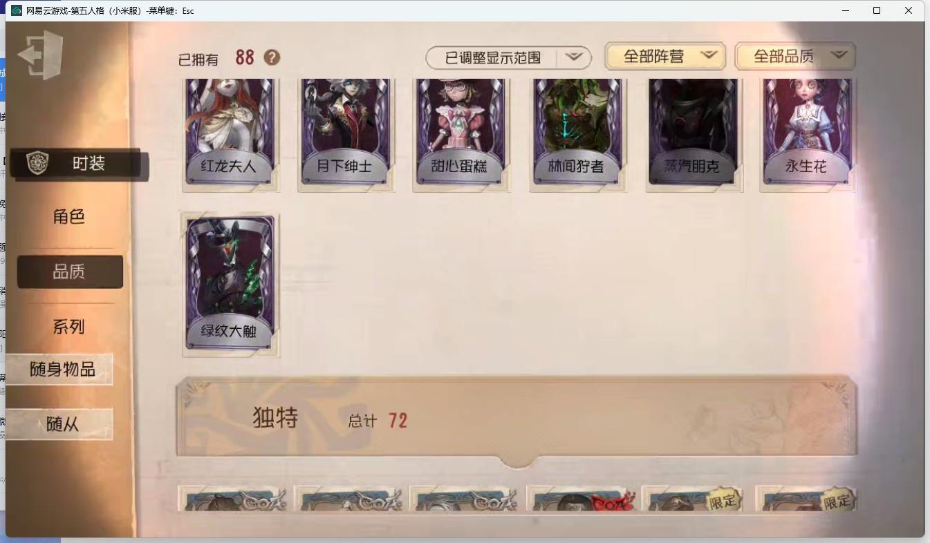 商品描述:[13171406]小米-非账号转移 手机账号 88时装 3金皮 13紫皮 3随从 21随身物品 【时装】:园丁-奥村春,杂技演员-ACE,病患-溯光,医生-永生花,病患-湖中影,鹿头-蒸汽朋克,鹿头-金匠,鹿头-林间狩者,画家-江户川乱步,“杰克”-绿纹大触,“杰克”-金纹大触,梦之女巫-红龙夫人,盲女-甜心蛋糕,摄影师-月下绅士,宿伞之魂-十字路口的美少年
