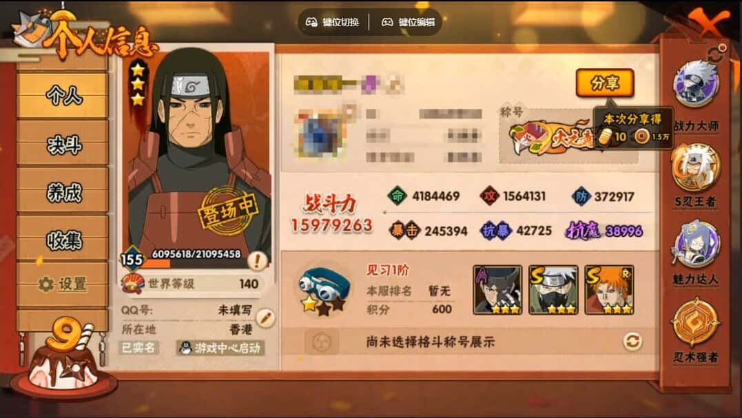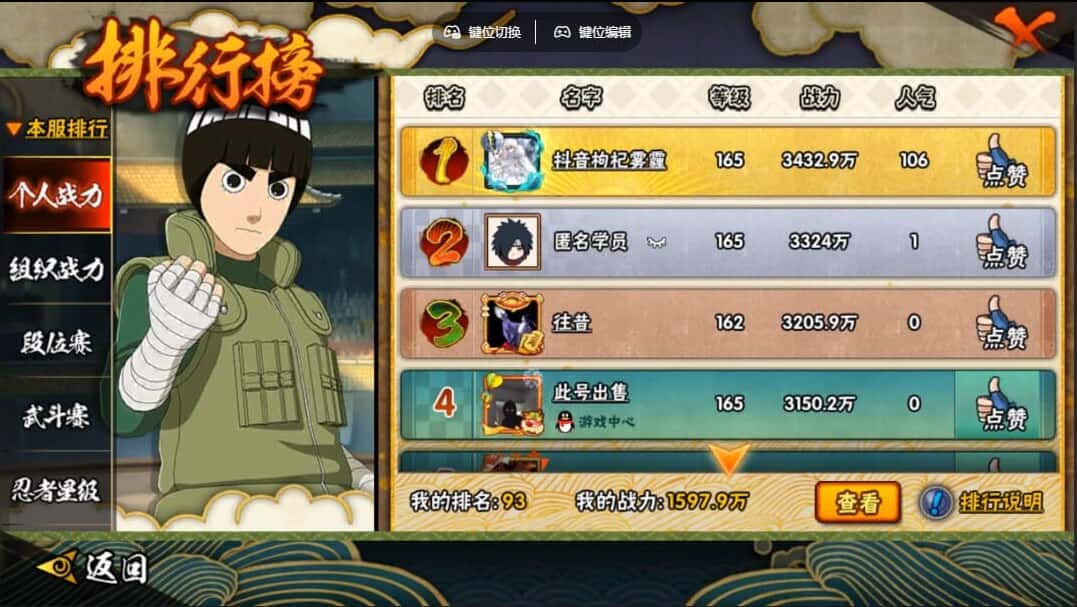 苹果Q309区:可二次实名 VIP13,战力:13070313,S忍者数量:39,A忍者数量:58,本服排名:187,战区排名:未上榜,通灵兽数量:22,时装数:18,段位:暗部1阶,忍者星数:68711s❤20A佩恩 「天道」;大蛇丸;千手扉间;纲手;自来也;千手柱间;长门 「秽土转生」;艾 「四