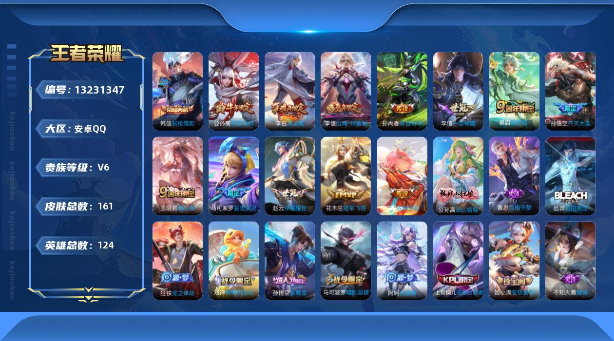 商品描述:[13231347]Xr42683-安卓Q-可二次-V6-至尊星耀IV段位-124英雄-161皮肤-1典藏--12传说-47史诗【英雄全皮】:李信全皮,影全皮【荣耀典藏】:韩信弑枪猎影【传说皮肤】:王昭君映山客,桑启鸣野蒿,庄周牧神诗旅,马可波罗妄想实况,孙悟空齐天大圣,李信山海炽霜斩,赵云淬星耀世,公孙离祈雪灵祝,李信一念神魔,花木兰冠军飞将,李白凤求凰,孙尚香末日机甲【限定皮肤】:白起狰,狄仁杰阴阳师,赵云皇家上将,墨子降魔,芈月重明,吕布猎兽之王,周瑜赤莲之焰,夏侯惇朔风刀,甄姬游园惊梦,曹操烛龙,典韦穷奇,马可波罗暗影游猎,马可波罗妄想实况,狄仁杰魔术师,狄仁杰万华元夜,达摩沙漠行僧,项羽海滩派对,老夫子醍醐杖,程咬金演武夺筹,兰陵王驯魔猎人,兰陵王金庭之子,孙悟空至尊宝,孙悟空齐天大圣,牛魔御旌,李元芳银河之约,李元芳云中旅人,钟馗驱傩正仪,杨玉环遇见飞天,雅典娜黎明之约,蔡文姬繁星吟游,太乙真人饕餮,鬼谷子原初探秘者,鬼谷子五谷丰年,百里玄策原初追逐者,弈星混沌棋,公孙离祈雪灵祝,沈梦溪星空之诺,沈梦溪大漠名商,明世隐疑决卦,裴擒虎李小龙,裴擒虎擒涛扼浪,狂铁御狮,米莱狄御霄,李信山海炽霜斩,盾山御銮,猪八戒西部大镖客,上官婉儿梁祝,上官婉儿天狼绘梦者,鲁班大师探海日志,桑启海盐诗旅,张良古海寻踪,姬小满妄想食味,沈梦溪龙舞盛年【年限皮肤】:李白凤求凰,公孙离祈雪灵祝,李信山海炽霜斩【赛季限定】:白起狰,芈月重明,夏侯惇朔风刀,曹操烛龙,典韦穷奇,狄仁杰万华元夜,达摩沙漠行僧,老夫子醍醐杖,程咬金演武夺筹,兰陵王金庭之子,张良古海寻踪,牛魔御旌,李元芳云中旅人,钟馗驱傩正仪,雅典娜黎明之约,太乙真人饕餮,鬼谷子原初探秘者,百里玄策原初追逐者,弈星混沌棋,沈梦溪大漠名商,明世隐疑决卦,裴擒虎擒涛扼浪,狂铁御狮,米莱狄御霄,盾山御銮,鲁班大师探海日志,桑启海盐诗旅【战令限定】:吕布猎兽之王,周瑜赤莲之焰,马可波罗暗影游猎,兰陵王驯魔猎人,李元芳银河之约,沈梦溪星空之诺,猪八戒西部大镖客【史诗皮肤】:阿轲暗夜猫娘,赵云皇家上将,赵云未来纪元,貂蝉圣诞恋歌,王昭君偶像歌手,狄仁杰魔术师,宫本武藏鬼剑武藏,孙尚香水果甜心,妲己女仆咖啡,吕布末日机甲,张飞乱世虎臣,孙悟空至尊宝,花木兰水晶猎龙者,夏侯惇乘风破浪,甄姬游园惊梦,亚瑟心灵战警,安琪拉心灵骇客,百里守约特工