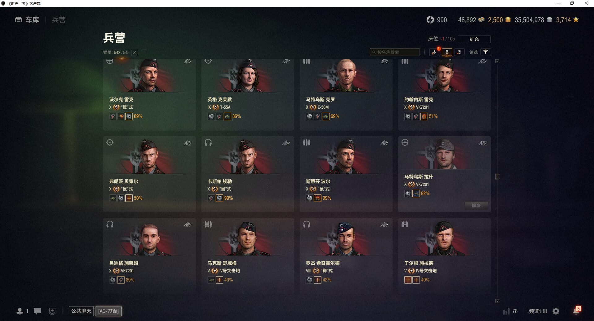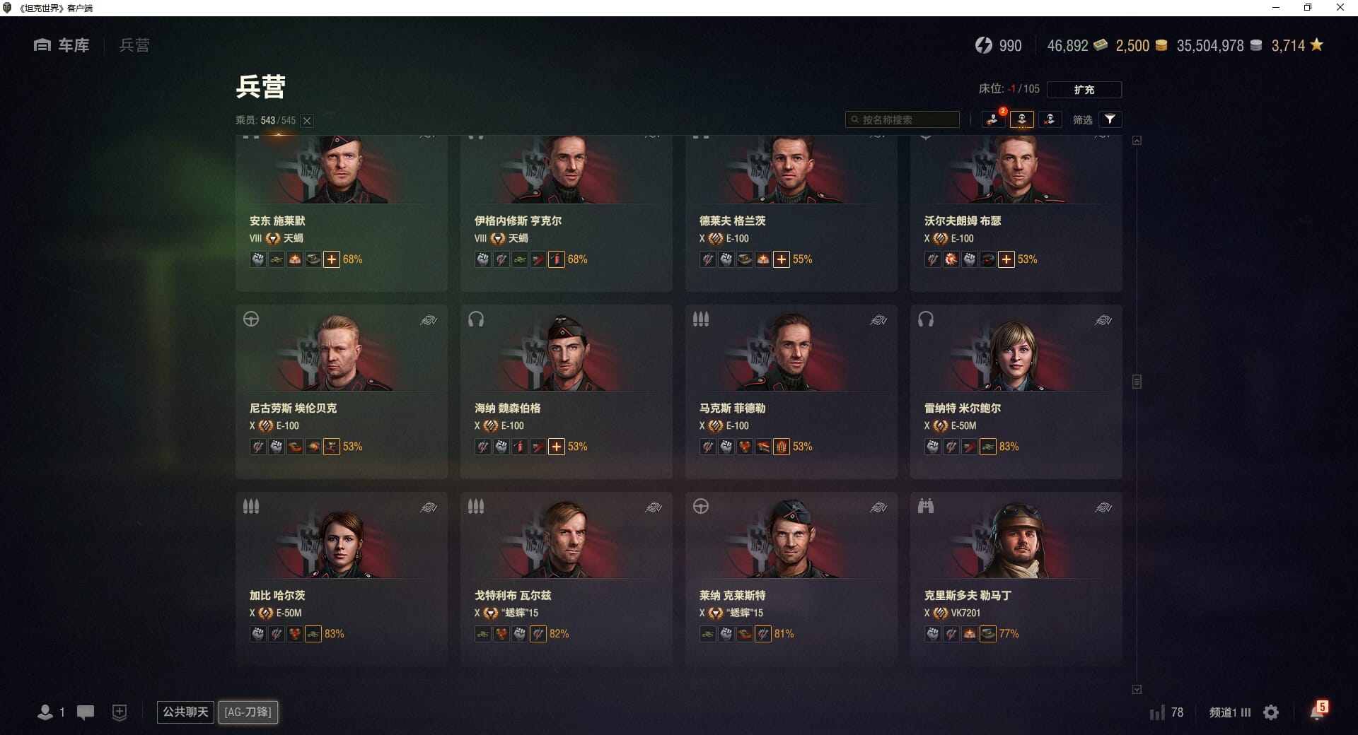 TE803/无绑定-决对安全/坦克7/金币坦克3/10级1/豹I/9级1/GSOR坦克/8级1/TNH 105/1000/债券1484/银币85万/经验3788/乘员74/