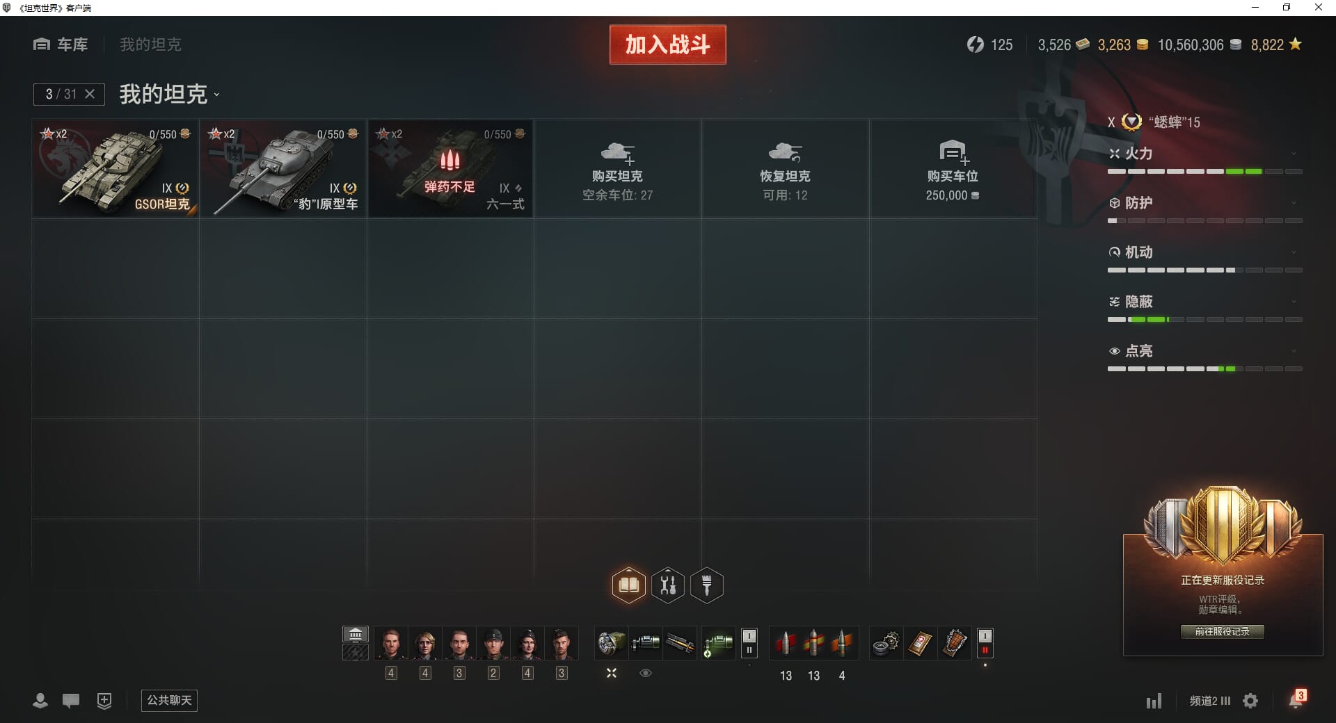 TE803/无绑定-决对安全/坦克7/金币坦克3/10级1/豹I/9级1/GSOR坦克/8级1/TNH 105/1000/债券1484/银币85万/经验3788/乘员74/
