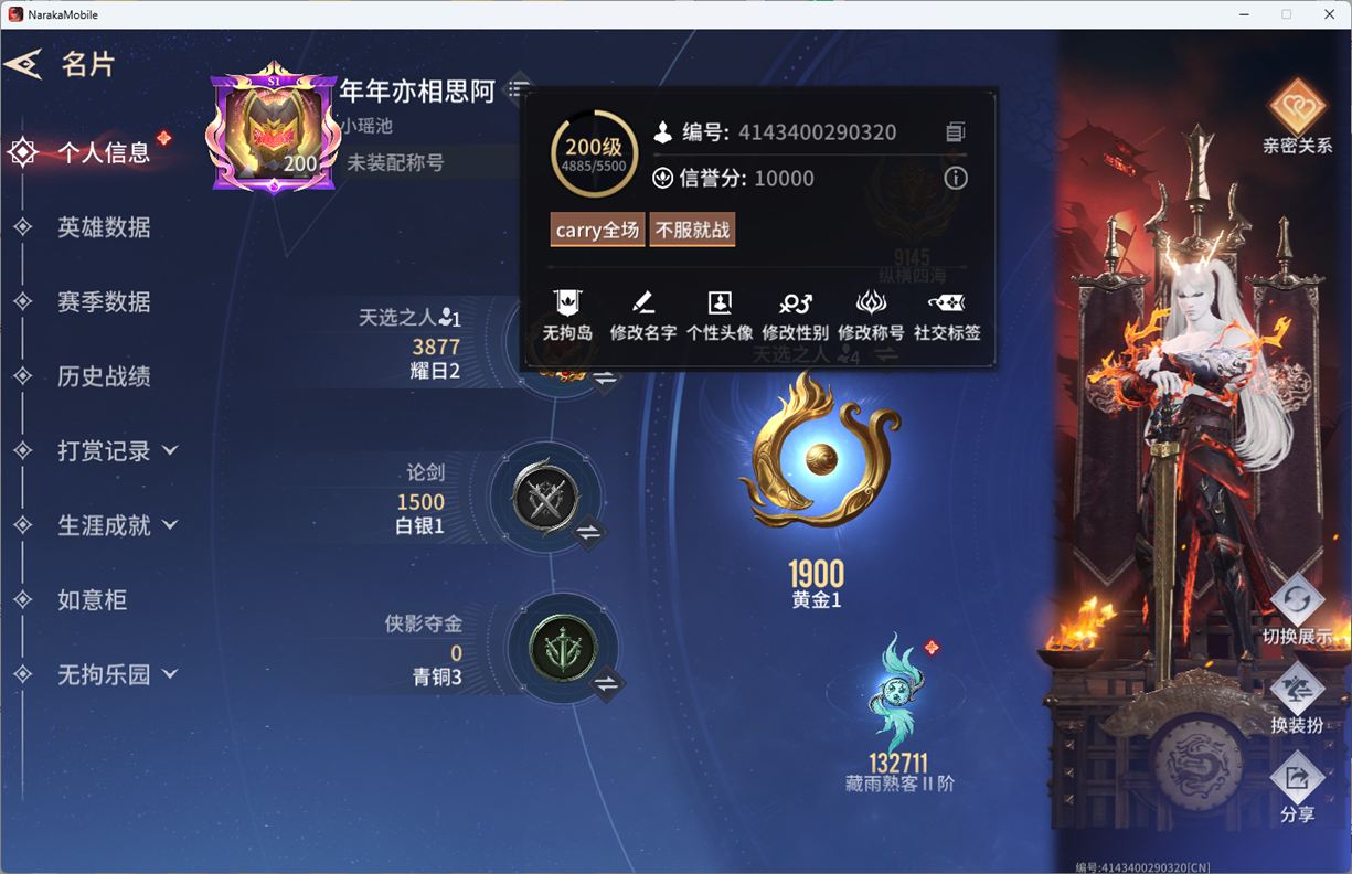 AK6037/网易手机手游/11月27可换绑/四人段位黄金1/8红/313金/金人俑/御祥云/赤瑛/炽切/紫微剑/吉光羽/狼主/初代玄女/戎金狼/鲤梦浮光/熛怒炼火/明瑶斗浪/精武魂/至纯/过江龙/白鹿/劫涛潮/击苍穹/判官笔/琉璃尊者/杨戬/悟空/南山翠暖/悠竹萌客/活动中心手机绑定无法解绑/找回包赔/