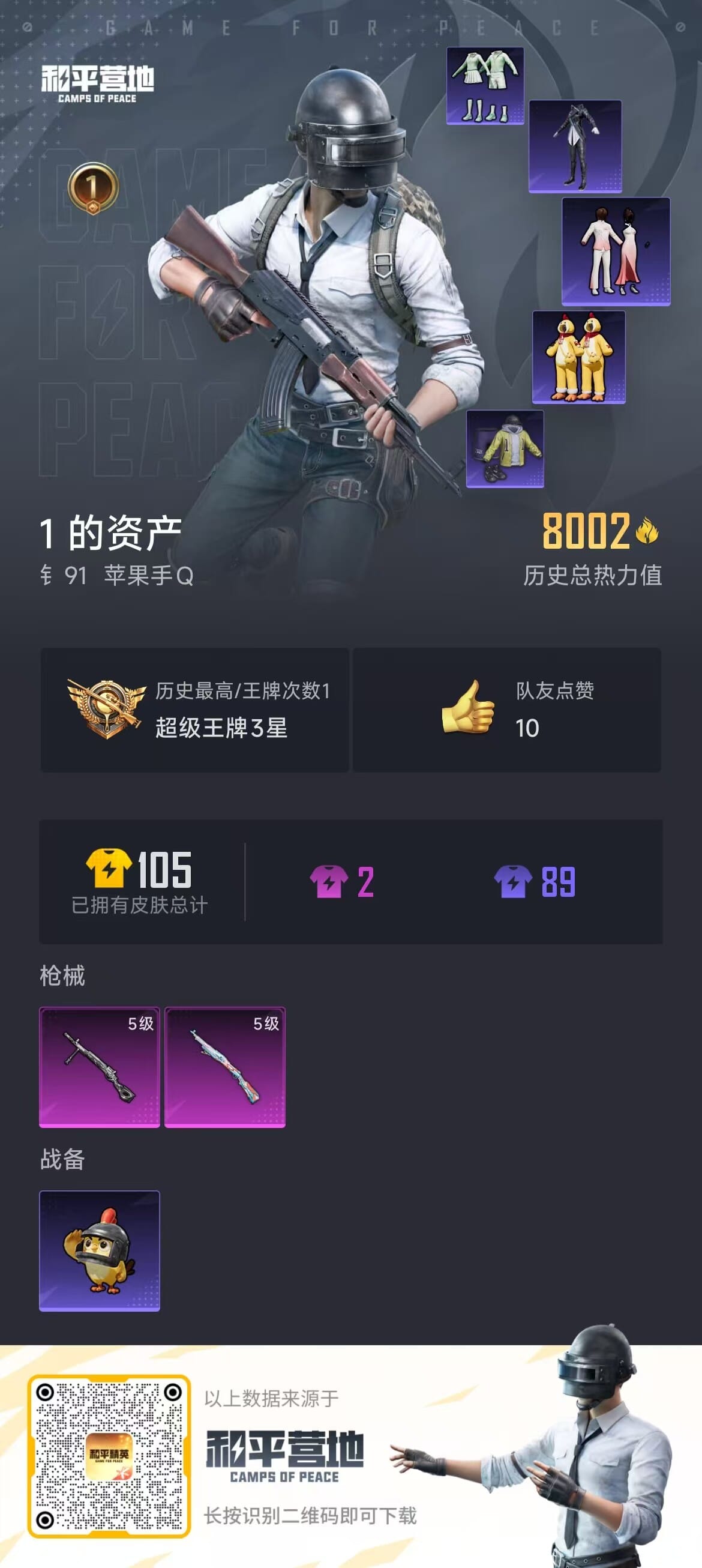 a4079/苹果QQ/-1王牌印记-2特效枪-8002热力值-19套装-32枪皮服务承诺: