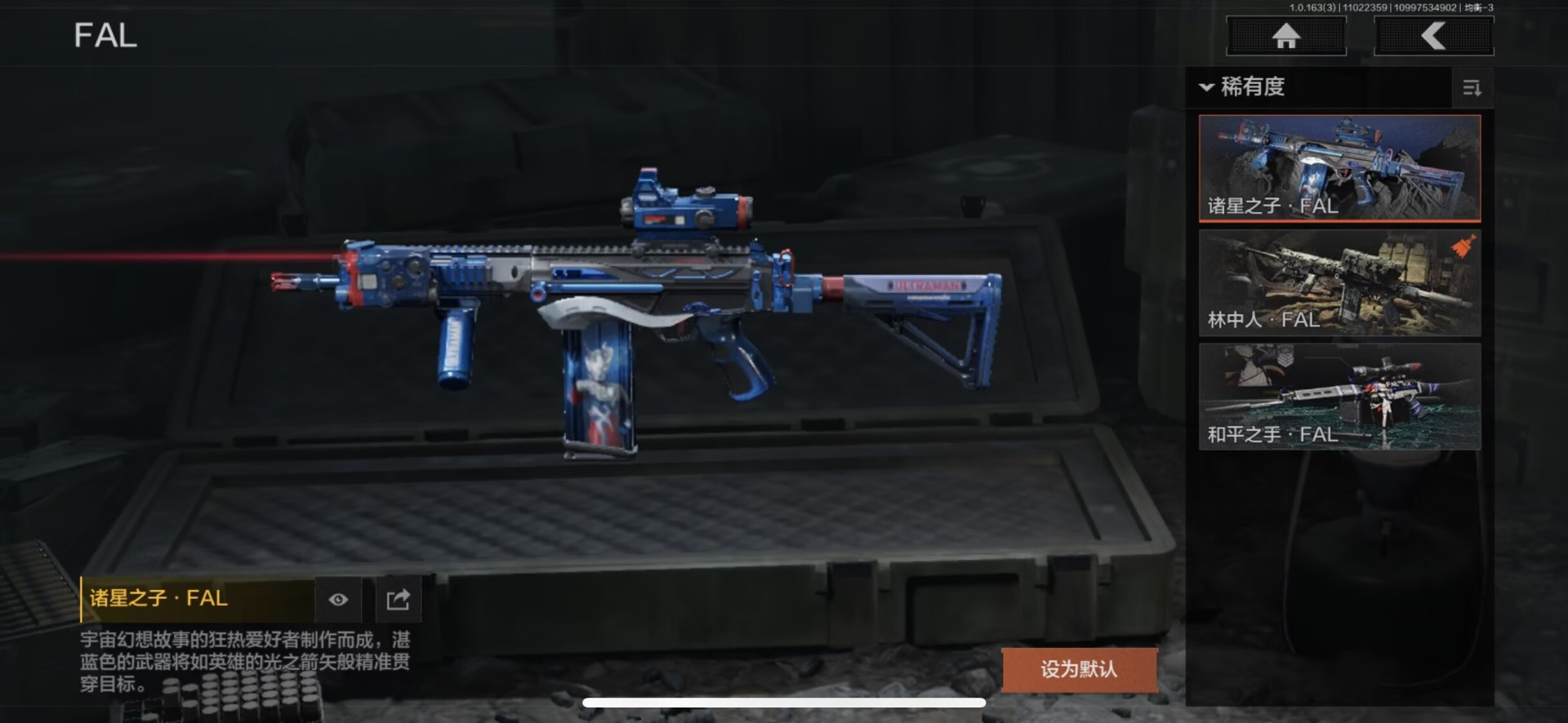 ZMTW673安卓Q-等级30-仓库价值54.8M-科恩币1127K 【刀皮】 热能武器·补牢 工兵铲 【枪皮】 和平之手·FAL 炎夏浪花·H416 竞技·MDR 白狼连队·AK74N 最后防线·AKS74U 火力倾泻·AUG 炎夏浪花·AR57 武侍·FAMAS 火力倾泻·MP5 高塔之内·P90 加速地带·SCDS 高塔之内·VSS 绿松石数码·QBU191 武侍·SJ16 莫克斯·M24