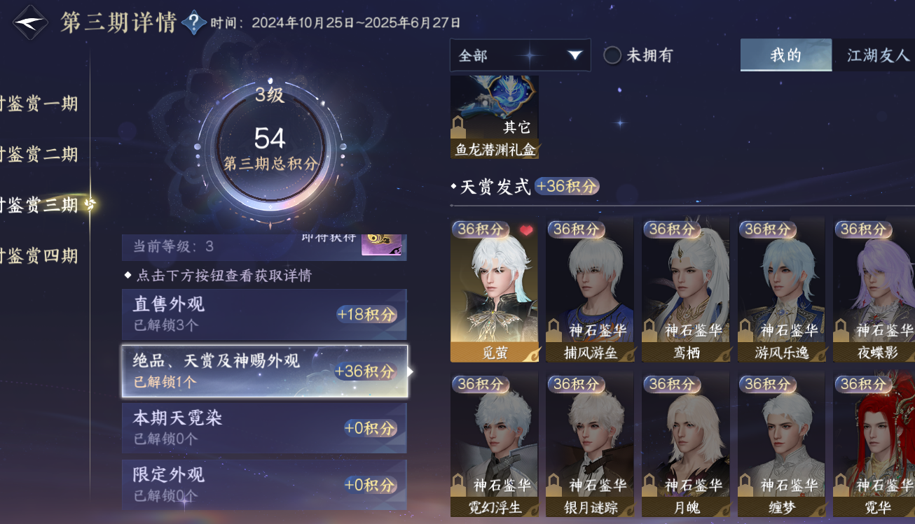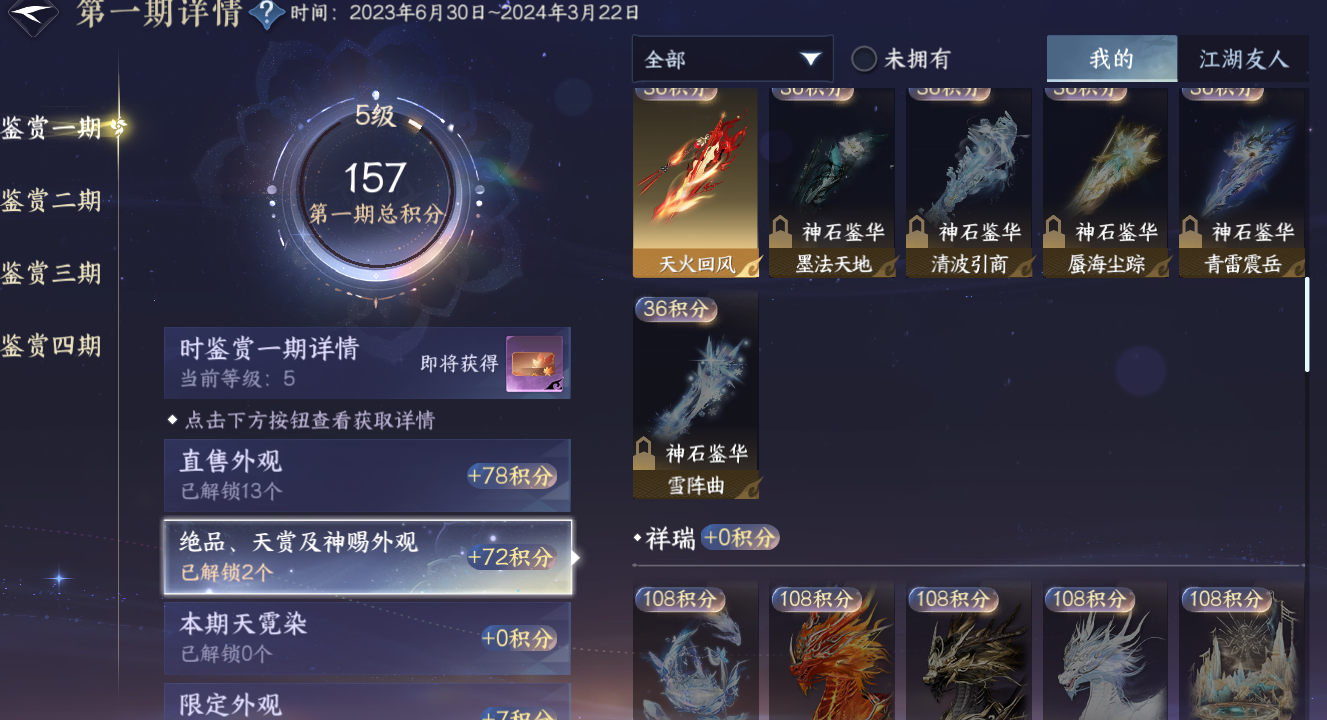 XY-076625675 转盘外观1 祥瑞坐骑12 商城外观14 转盘外观:幻焰狐影;祥瑞坐骑:咩郎,风行万灯明,风行江湖景,玉霄飞练,墨流云玄色,墨流云靛青,牛奶酥,隐云涧,伯力,布丁,纵风甲车赤,骋风叱焰;商城外观:开阳执戈,跃动心芒,朔雪从风,清梦幽思,公子多愁,灵语星彩,似水幽华,鲤跃今宵,血宴风华,墨山烟霏,律动音阶,梦浮生,心韵追声,岁鳞衔新