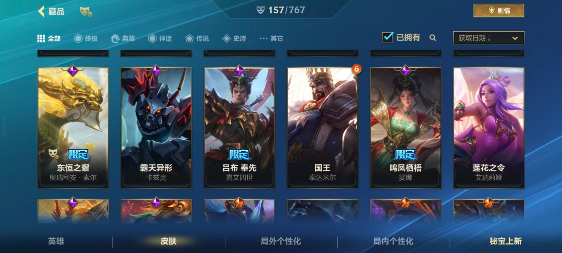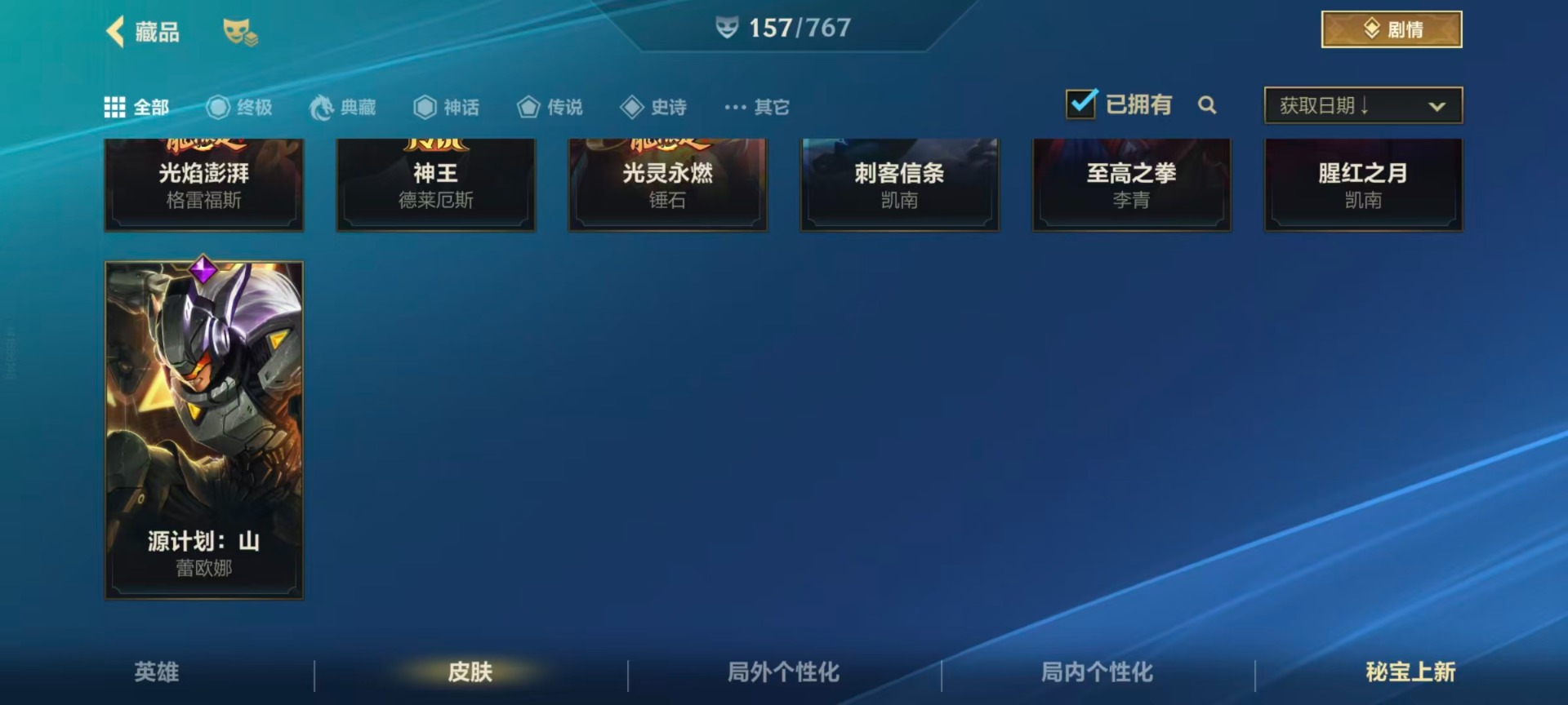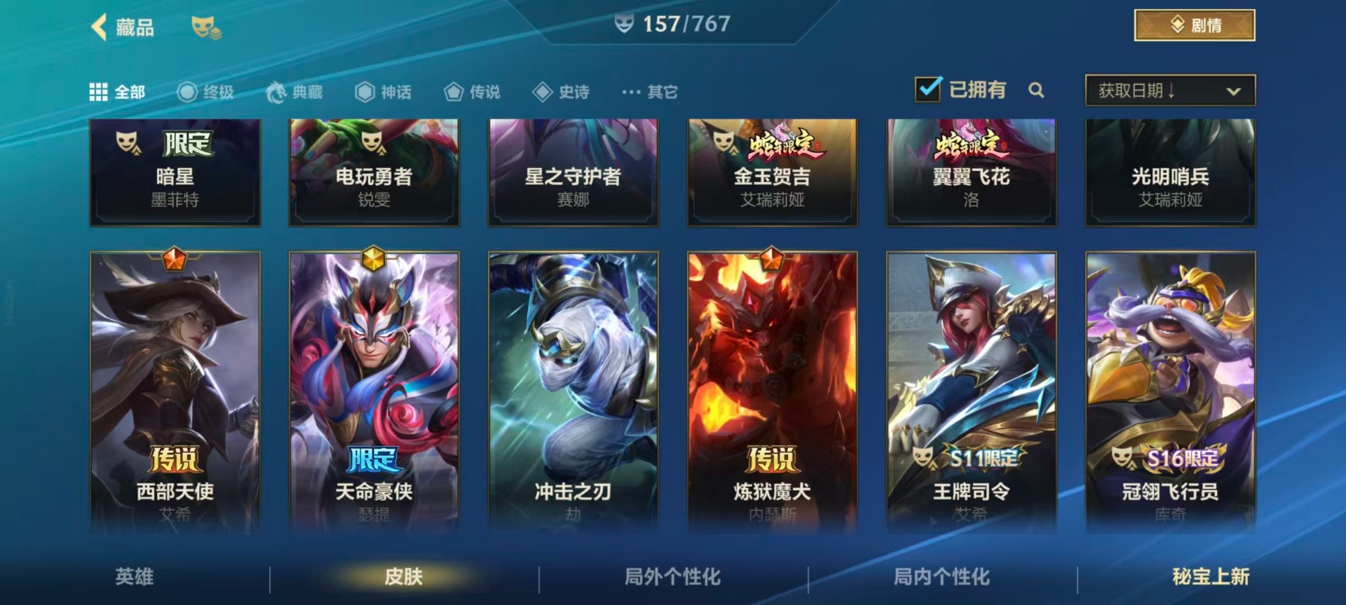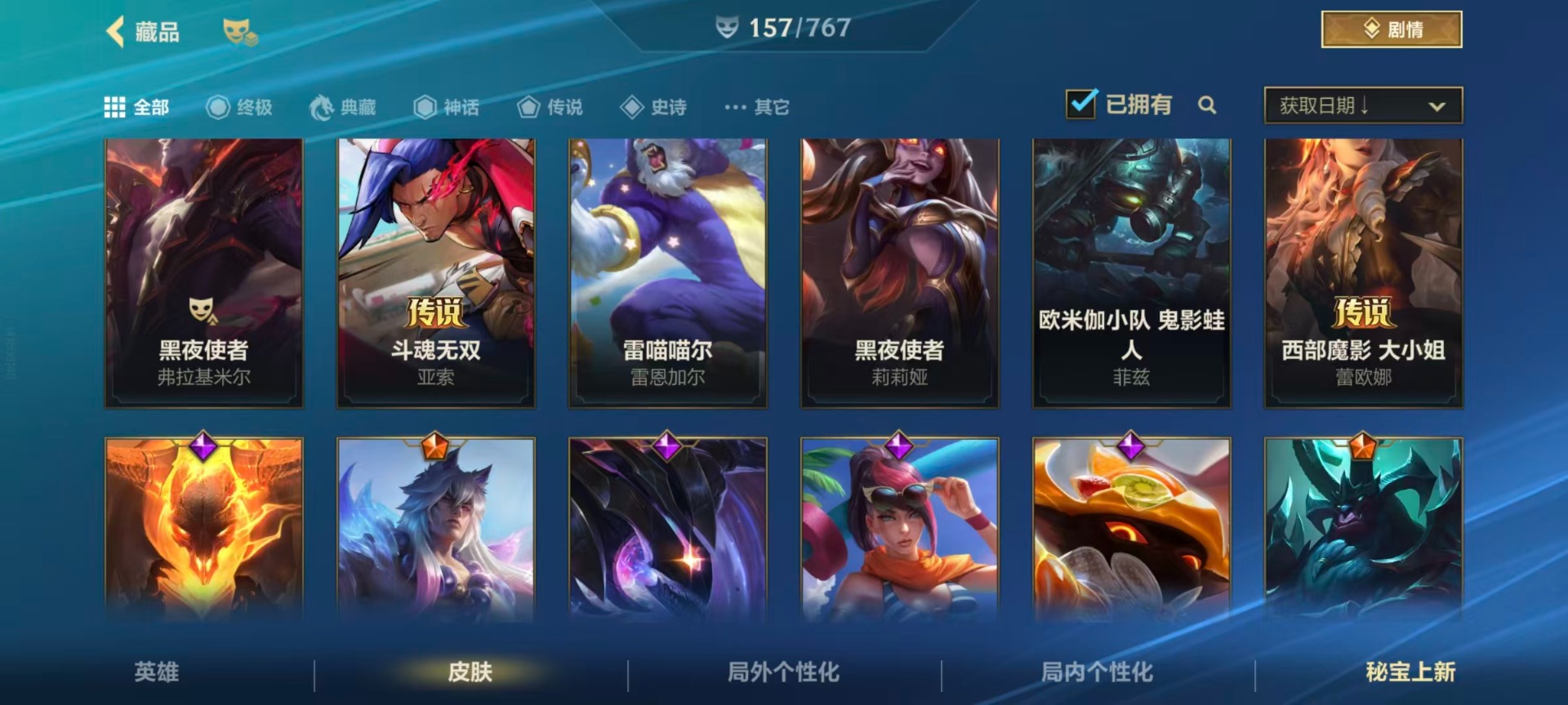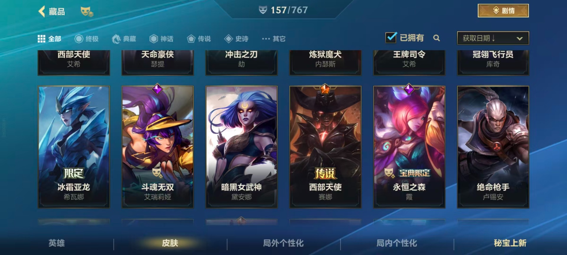 【LSC101】130英雄/706皮肤/傲世宗师/超武乾坤:虹影 劫/超武乾坤:孤拳 瑟提/超武乾坤:裁决 德莱厄斯/超武乾坤:征服 莎弥拉/冠星耀辰 盖伦/臻藏 光影巨翼 亚托克斯/定海神珍:御定乾坤 孙悟空/摄魂使者 薇恩/至臻 斗魂无双 赵信/光谱幻影 金克丝/至臻 喵喵魅影 金克丝/夜星流火 金克丝/星域游侠 圣时豪杰 崔斯特/春晖仙子 苍云缥缈 卡莎/灰烬征服者 潘森/KBG 任凭浪起 破浪 菲奥娜/海克斯科技 安妮/臻藏 御风墨影 亚索/渔帆满载 亚索/星之守护者 永绽盛芒 阿狸/臻藏 西部魔影 卢锡安/至臻 水晶玫瑰 格温/海克斯科技 嘉文四世/银鞍玉甲 嘉文四世/黎明使者 破