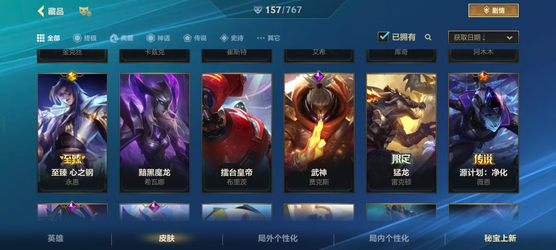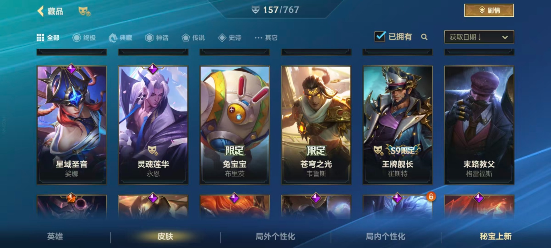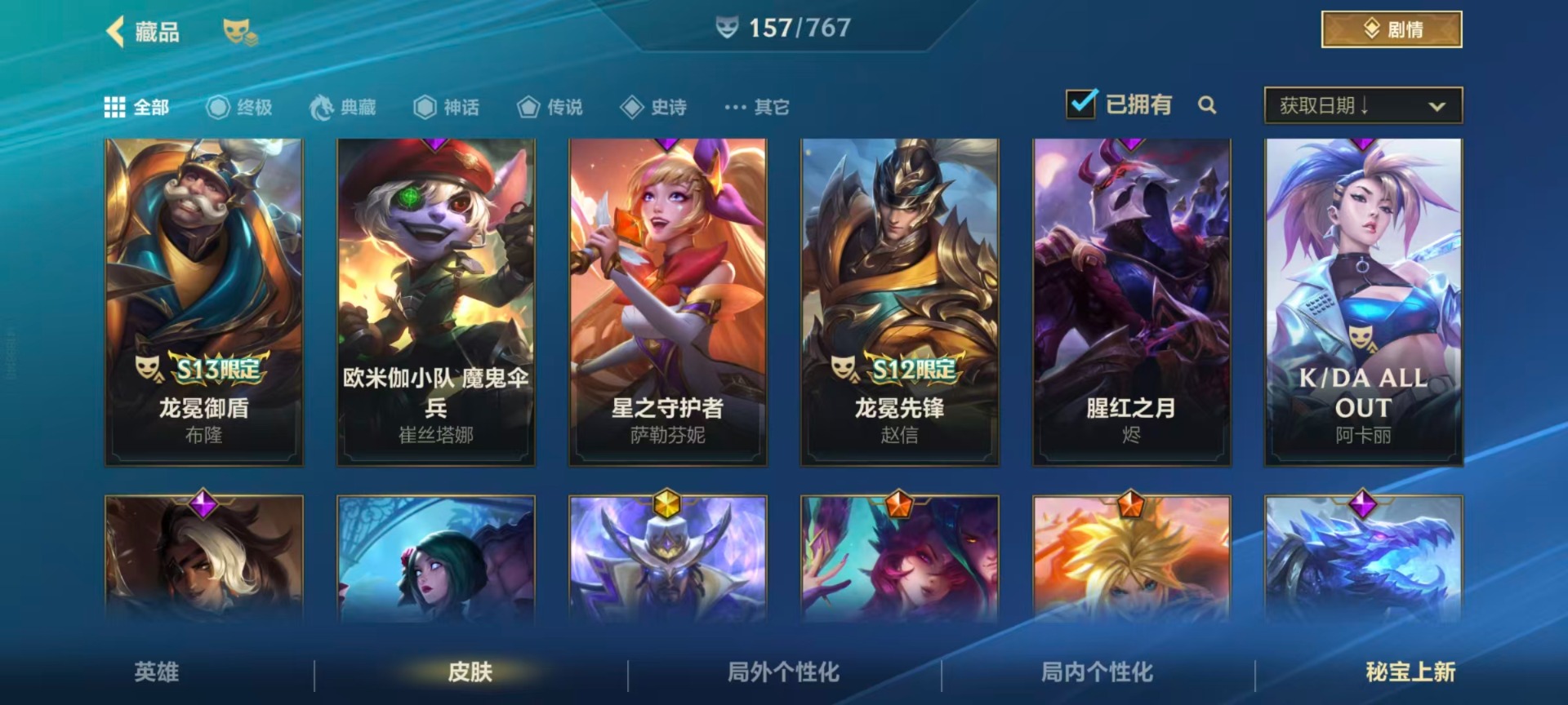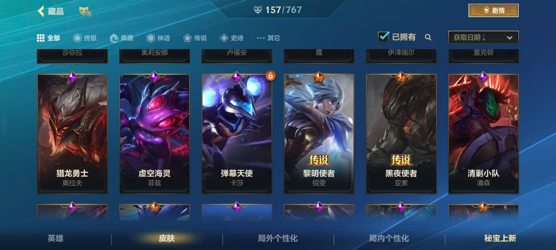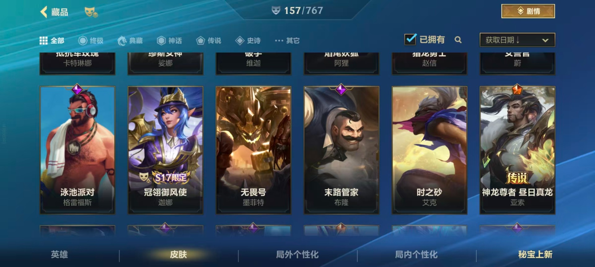 【LSC101】130英雄/706皮肤/傲世宗师/超武乾坤:虹影 劫/超武乾坤:孤拳 瑟提/超武乾坤:裁决 德莱厄斯/超武乾坤:征服 莎弥拉/冠星耀辰 盖伦/臻藏 光影巨翼 亚托克斯/定海神珍:御定乾坤 孙悟空/摄魂使者 薇恩/至臻 斗魂无双 赵信/光谱幻影 金克丝/至臻 喵喵魅影 金克丝/夜星流火 金克丝/星域游侠 圣时豪杰 崔斯特/春晖仙子 苍云缥缈 卡莎/灰烬征服者 潘森/KBG 任凭浪起 破浪 菲奥娜/海克斯科技 安妮/臻藏 御风墨影 亚索/渔帆满载 亚索/星之守护者 永绽盛芒 阿狸/臻藏 西部魔影 卢锡安/至臻 水晶玫瑰 格温/海克斯科技 嘉文四世/银鞍玉甲 嘉文四世/黎明使者 破