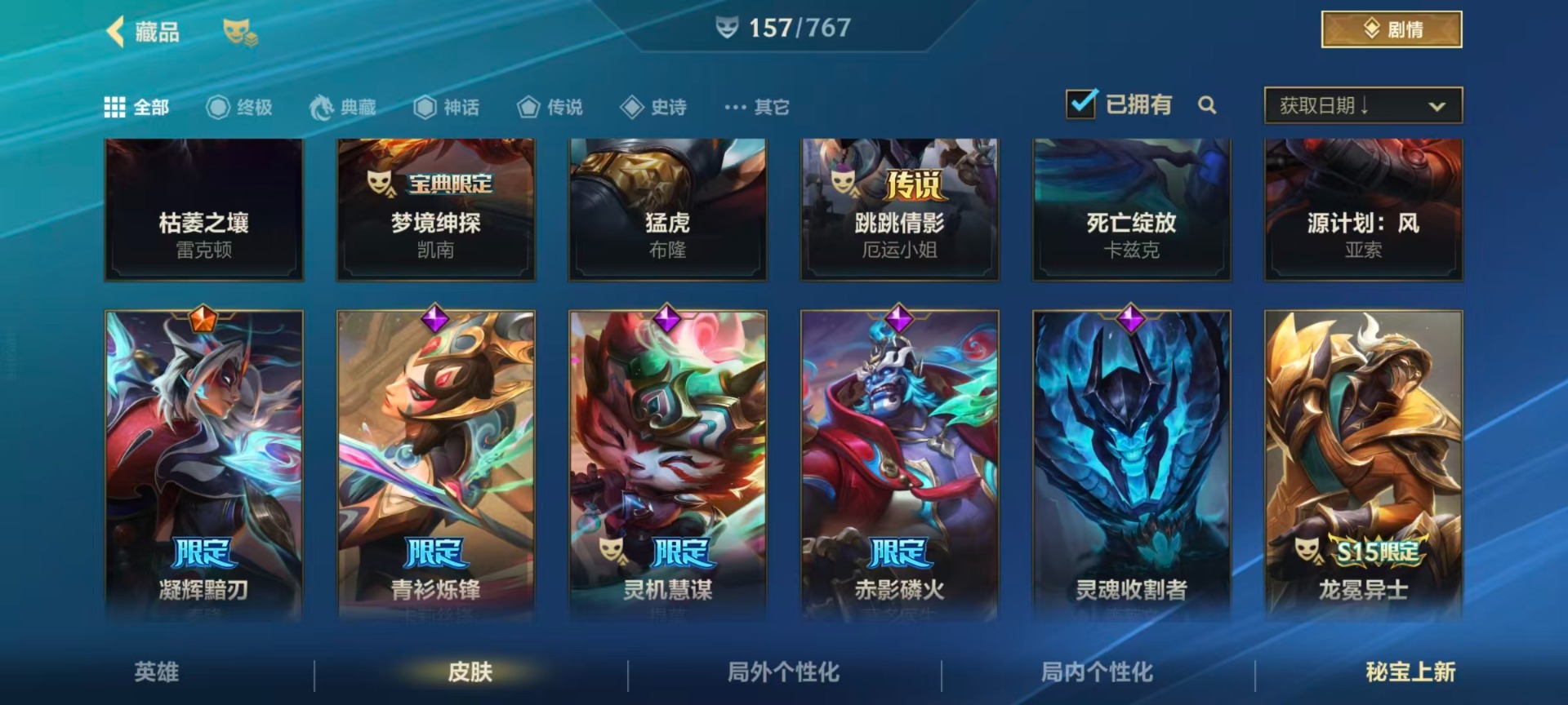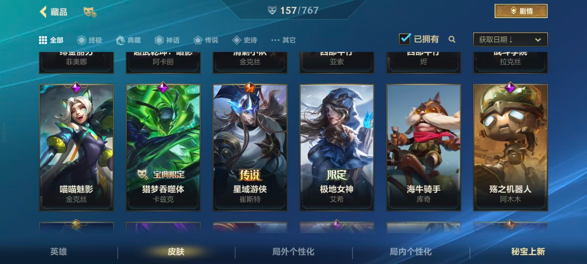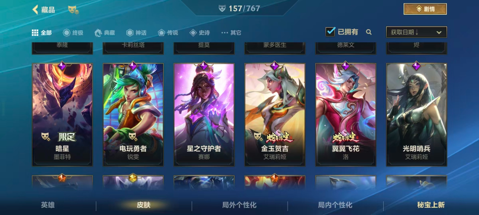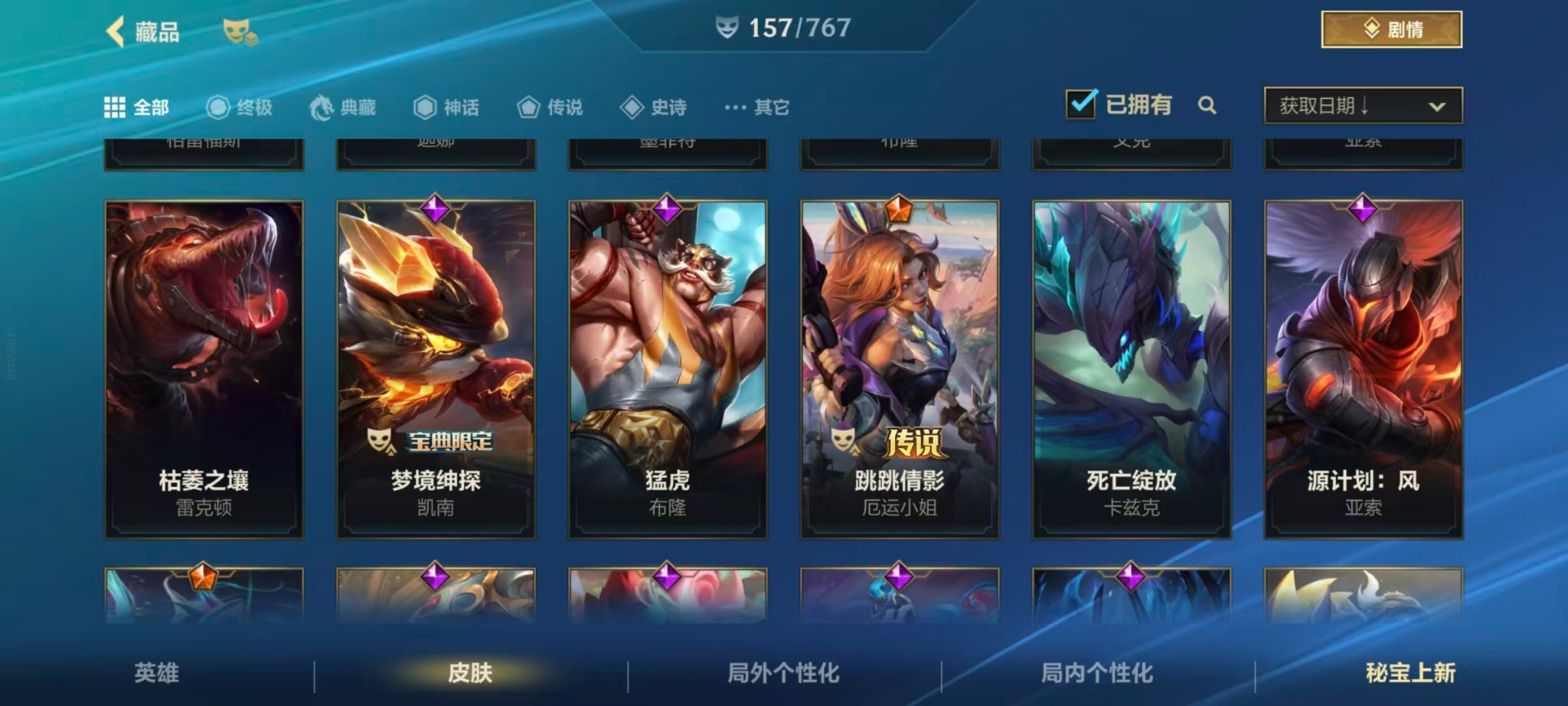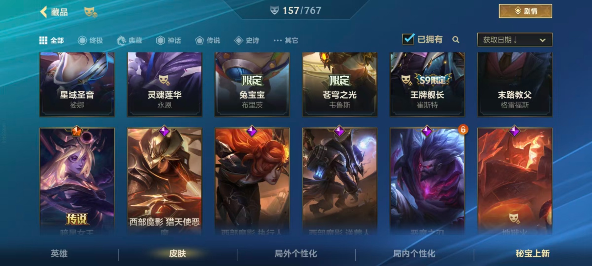 【LSC101】130英雄/706皮肤/傲世宗师/超武乾坤:虹影 劫/超武乾坤:孤拳 瑟提/超武乾坤:裁决 德莱厄斯/超武乾坤:征服 莎弥拉/冠星耀辰 盖伦/臻藏 光影巨翼 亚托克斯/定海神珍:御定乾坤 孙悟空/摄魂使者 薇恩/至臻 斗魂无双 赵信/光谱幻影 金克丝/至臻 喵喵魅影 金克丝/夜星流火 金克丝/星域游侠 圣时豪杰 崔斯特/春晖仙子 苍云缥缈 卡莎/灰烬征服者 潘森/KBG 任凭浪起 破浪 菲奥娜/海克斯科技 安妮/臻藏 御风墨影 亚索/渔帆满载 亚索/星之守护者 永绽盛芒 阿狸/臻藏 西部魔影 卢锡安/至臻 水晶玫瑰 格温/海克斯科技 嘉文四世/银鞍玉甲 嘉文四世/黎明使者 破