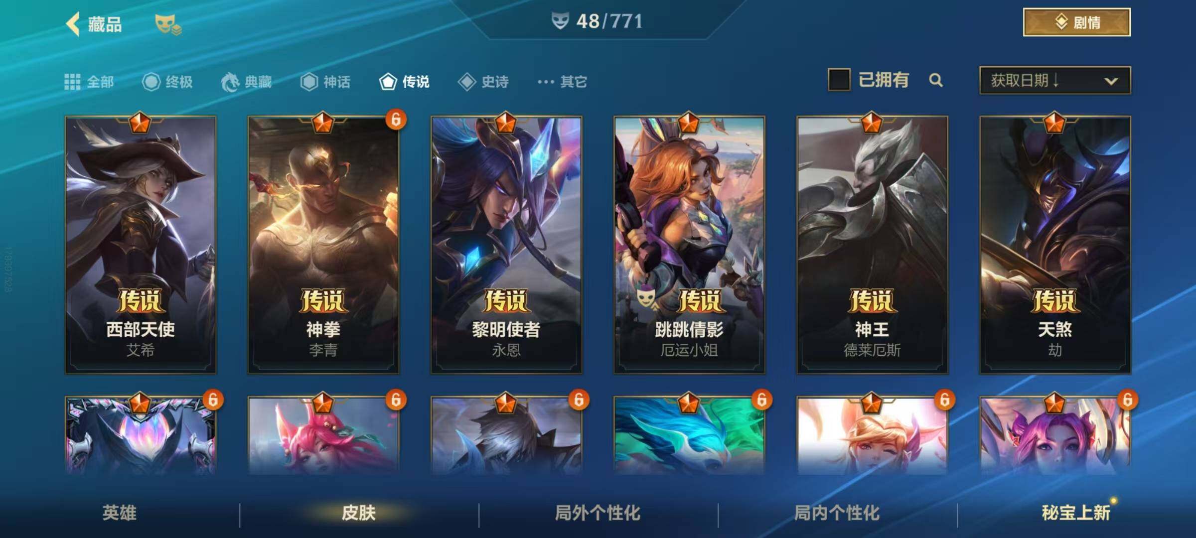 【LSC101】130英雄/706皮肤/傲世宗师/超武乾坤:虹影 劫/超武乾坤:孤拳 瑟提/超武乾坤:裁决 德莱厄斯/超武乾坤:征服 莎弥拉/冠星耀辰 盖伦/臻藏 光影巨翼 亚托克斯/定海神珍:御定乾坤 孙悟空/摄魂使者 薇恩/至臻 斗魂无双 赵信/光谱幻影 金克丝/至臻 喵喵魅影 金克丝/夜星流火 金克丝/星域游侠 圣时豪杰 崔斯特/春晖仙子 苍云缥缈 卡莎/灰烬征服者 潘森/KBG 任凭浪起 破浪 菲奥娜/海克斯科技 安妮/臻藏 御风墨影 亚索/渔帆满载 亚索/星之守护者 永绽盛芒 阿狸/臻藏 西部魔影 卢锡安/至臻 水晶玫瑰 格温/海克斯科技 嘉文四世/银鞍玉甲 嘉文四世/黎明使者 破