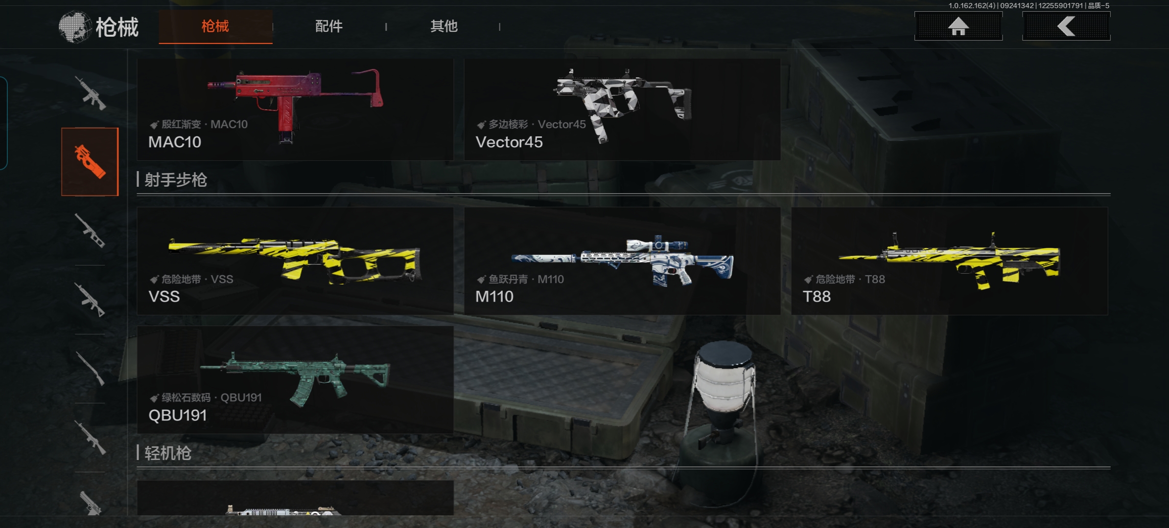 DSTW1302【仓库价值73.9M 工兵铲,开山刀,野战折刀】安卓Q-等级30-科恩币2252k 【刀皮】野战折刀 来战·开山刀 工兵铲 【枪皮】 山地伪装·Vector9 旗帜·SVDS 骑士之剑·14 竞技·M110 旗帜·RPK16 棱光裂变·AKM 自喷网格·H416 棱光装变·AK102 棱光裂变·AK74N 火力倾泻·AUG 棱光裂变·ACE31 旗帜·AEK 07式林地迷彩·QBZ191 自喷网格·UMP45DSTW763加【仓库价值5.9M 柯恩币633442 1套装 15枪皮 2刀 工兵铲 开山刀 】安卓Q-等级30-科恩币633442 【枪皮】来战·AKM 来战·AK74N 骑士之剑·AKS74U 07式林地迷彩·QBZ191 玄戈梨花·MPX 森林迷彩·MP5 玄戈梨花·VSS 【刀皮】 工兵铲 来战·开山刀