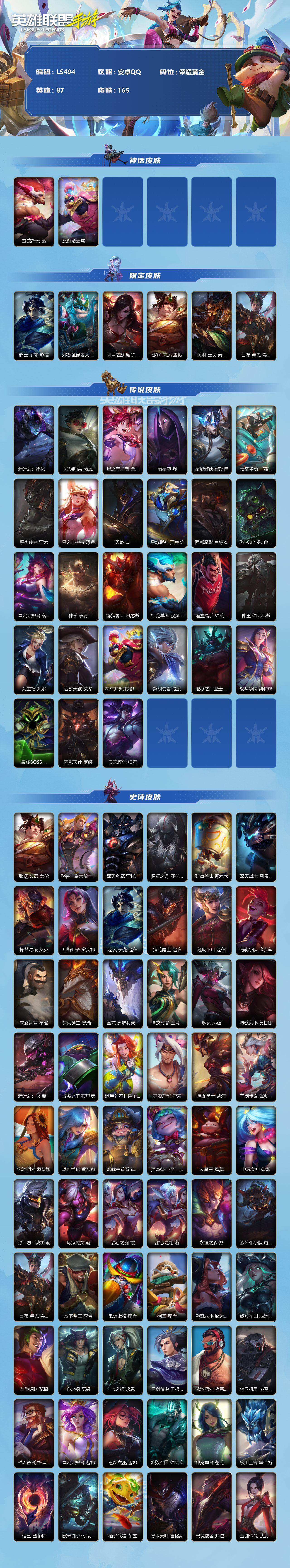 MLL1427【129英雄 162皮肤 2神话 15传说】安卓Q-等级165-段位:钻石-129英雄-168皮肤- 光明哨兵薇恩 律政大亨 神拳盲僧 神王盖伦 天煞劫 西部天使赛娜 星域游侠卡牌 斗魂无双亚索 未来战士女警 星之守护者卡莎 腥红之月皎月 星之守护者赛娜 星之守护者发条 死亡誓约劫 娜就去看看 清剿小队潘森 世界那莫大 灵魂莲华永恩 灵魂莲华莉莉娅 魅惑女巫女枪 涂鸦小队艾克 养蜂人 泳池派对璐璐 泳池派对男枪 泳池派对蕾欧娜 泳池派对发条 源计划:雄心 源代码索拉卡 玉剑传说 武剑仙 黎明使者卡尔玛 斗魂无双德莱文 烘焙童谣猫咪 西部魔影人马 心之钢伊泽瑞尔 猛虎布隆 神奇先驱杰斯 源计划:雷 欧米伽小队 毒针狙击手 图奇 海之歌泽丽 喵喵魅影金克丝 虚空海灵 福牛守护者皇子 光明哨兵锐雯 K/DA ALL OUT阿狸 K/DA ALL OUT寡妇 柯基 猎龙勇士潘森 灵魂收割者 灵能特工莎弥拉 福牛守护者牛头 晨星之翎 福牛守护者诺手 霸天战士狮子狗 冰川巨兽石头人 持胡萝卜的雪人 福牛守护者安妮 电玩女神女枪 地狱火加里奥 星之守护者拉克丝 天启骑士 甜心之羽 s1光耀之刃 s2光耀之芒 s3光耀之灵 s5绯金魅影 s6绯金丽刃