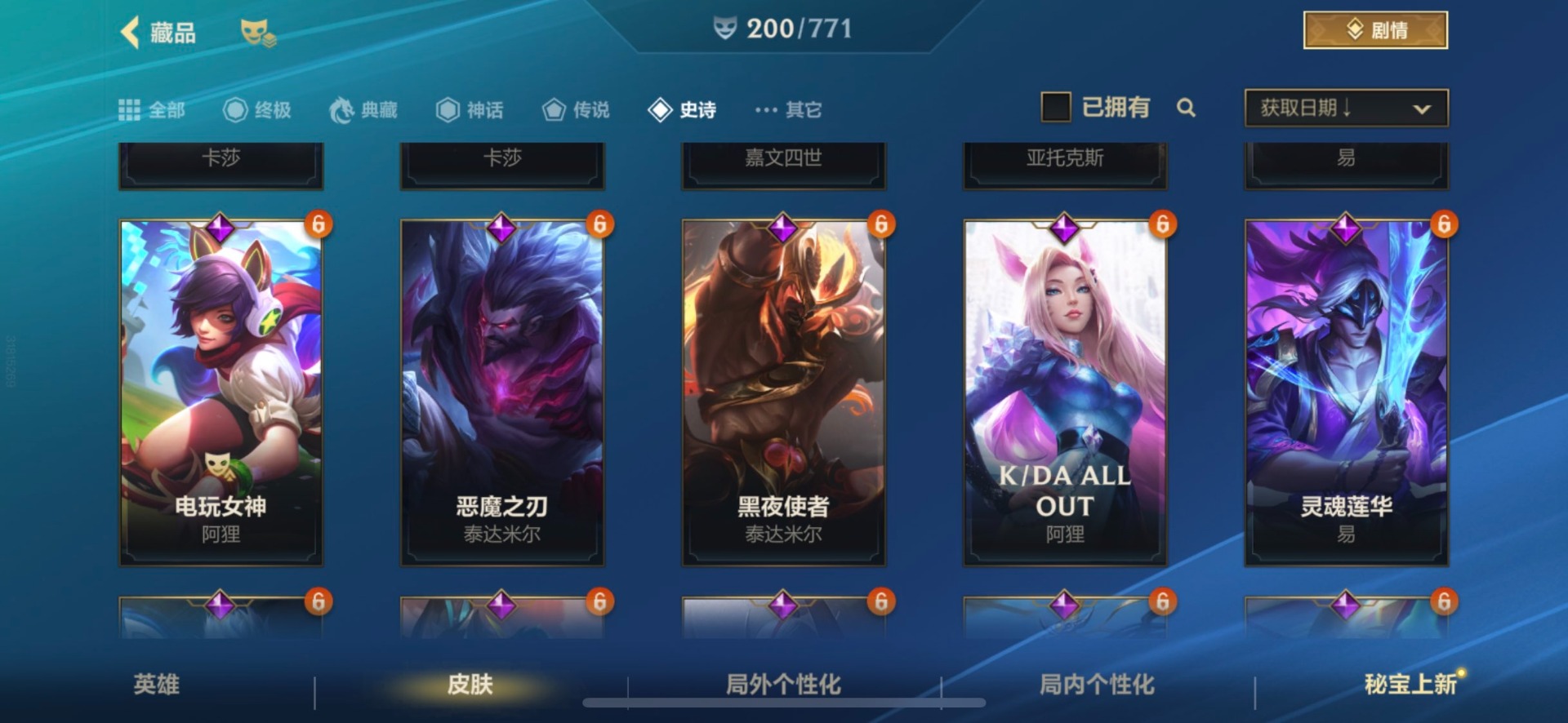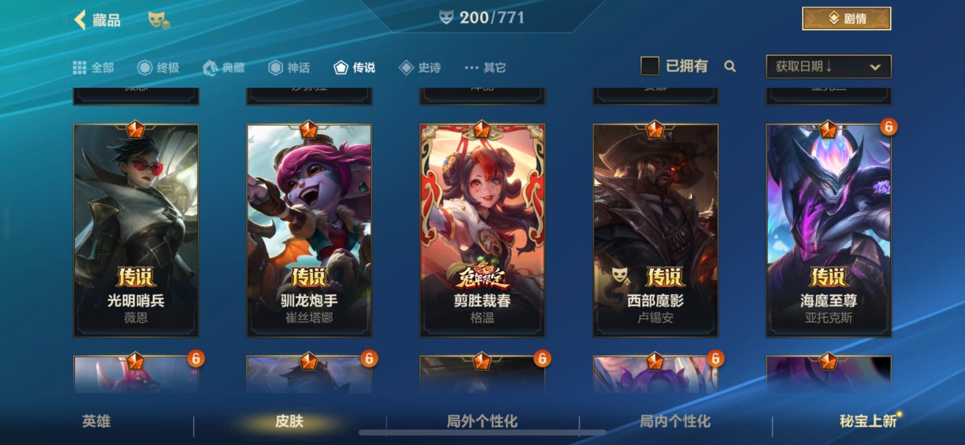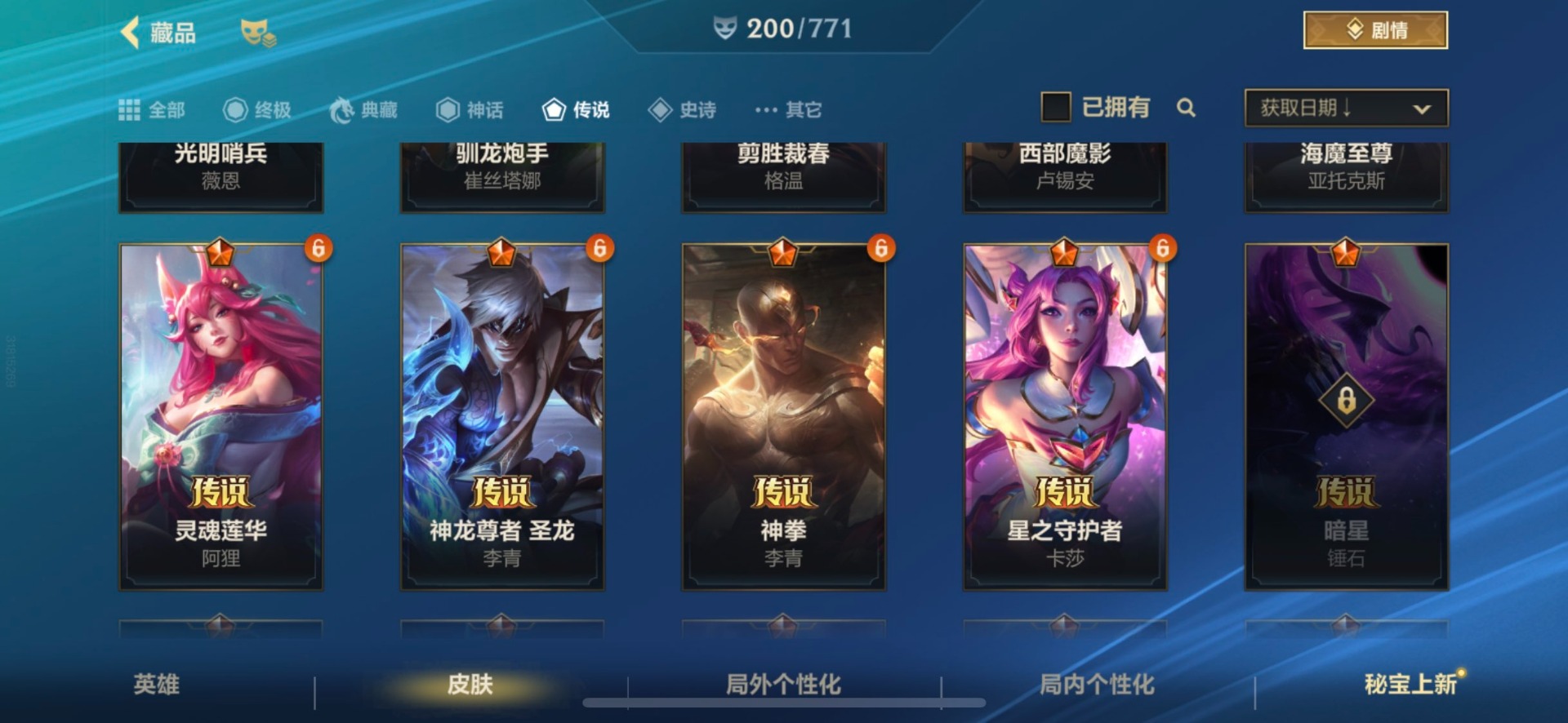 【LSC101】130英雄/706皮肤/傲世宗师/超武乾坤:虹影 劫/超武乾坤:孤拳 瑟提/超武乾坤:裁决 德莱厄斯/超武乾坤:征服 莎弥拉/冠星耀辰 盖伦/臻藏 光影巨翼 亚托克斯/定海神珍:御定乾坤 孙悟空/摄魂使者 薇恩/至臻 斗魂无双 赵信/光谱幻影 金克丝/至臻 喵喵魅影 金克丝/夜星流火 金克丝/星域游侠 圣时豪杰 崔斯特/春晖仙子 苍云缥缈 卡莎/灰烬征服者 潘森/KBG 任凭浪起 破浪 菲奥娜/海克斯科技 安妮/臻藏 御风墨影 亚索/渔帆满载 亚索/星之守护者 永绽盛芒 阿狸/臻藏 西部魔影 卢锡安/至臻 水晶玫瑰 格温/海克斯科技 嘉文四世/银鞍玉甲 嘉文四世/黎明使者 破