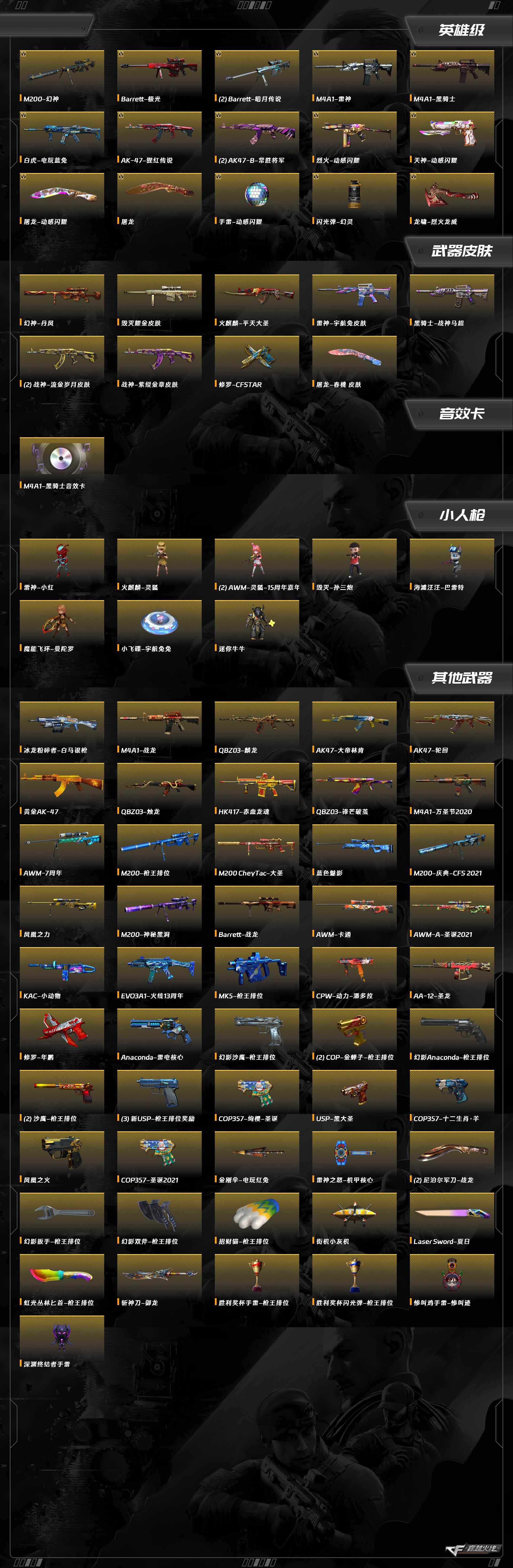 四川一区 有二次 可排位 11v 【M200-幻神+幻神-纸灯龙】【王者芳薇】【M4A1-青龙】【幻灵之锋+幻灵手雷套】天启 黑鲨 修罗 等各种永久道具详情看图(截图展示段位不代表实际段位,如赛季更新等不可抗拒因素发生变化、时限道具不保证所剩时间,其余道具看截图或咨询客服)陕西一区 有二次 可排位 78v 【传说破晓+晴雅+炽芒蝶刃】【M200-幻神+幻神-宠儿+幻神-N9+幻神-星火小队签名珍藏版+幻神-冠军之幻+幻神-丹凤+幻神音效卡+USP雷暴+柯尔特-荣耀世冠+冠军之刃*2】【王者星霆】【QBZ金色蔷薇+QBZ-CFS2024+QBZ王者蔷薇】【Scar白虎+白虎-暗星+M4A1-青龙】【火麒麟+火麒麟-HeartShot+火麒麟音效卡】【雷神+雷神-巅峰荣耀+雷神-LGD18冠军】【毁灭+毁灭-HeartShot+毁灭-AG15冠军+毁灭音效卡】【天龙+天龙-能量核心】【极光+极光音效卡】【斩神刀-雷暴+雷暴手雷套】【幻灵之锋+幻灵手雷套】【雷霆王者之锋+雷霆王者手雷套】王者之魄 王者之势 王者之烈 王者玉锋 炫金火麒麟 炫金骑士 炫金毁灭 炫金天神 无影 极光 裁决 修罗 天神 屠龙 麒麟刺 【小人枪】COP白鲨 【角色】4防王者云悠悠 晴雅 奇洋探员 王者玲珑 王者凌霄 云海玲珑 岚兮儿 魅影 如赛季更新等不可抗拒因素发生变化、时限道具不保证所剩时间 如有号中有战队需解除或退出只能协调解除不保证解除成功