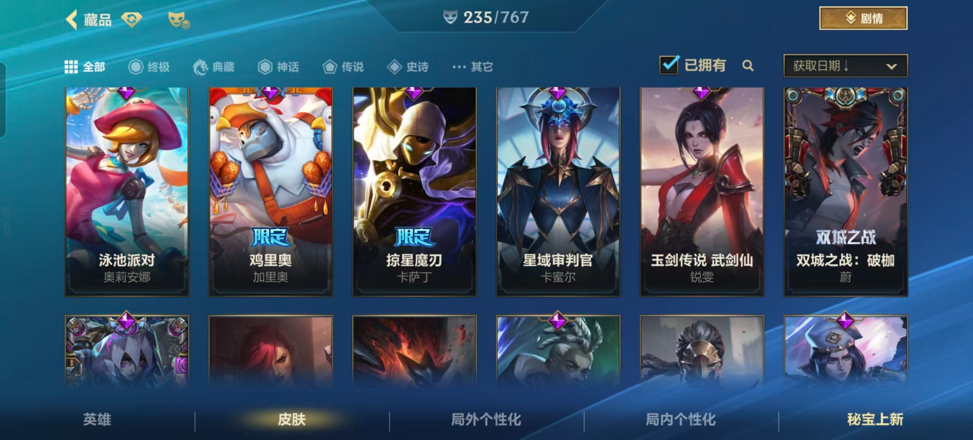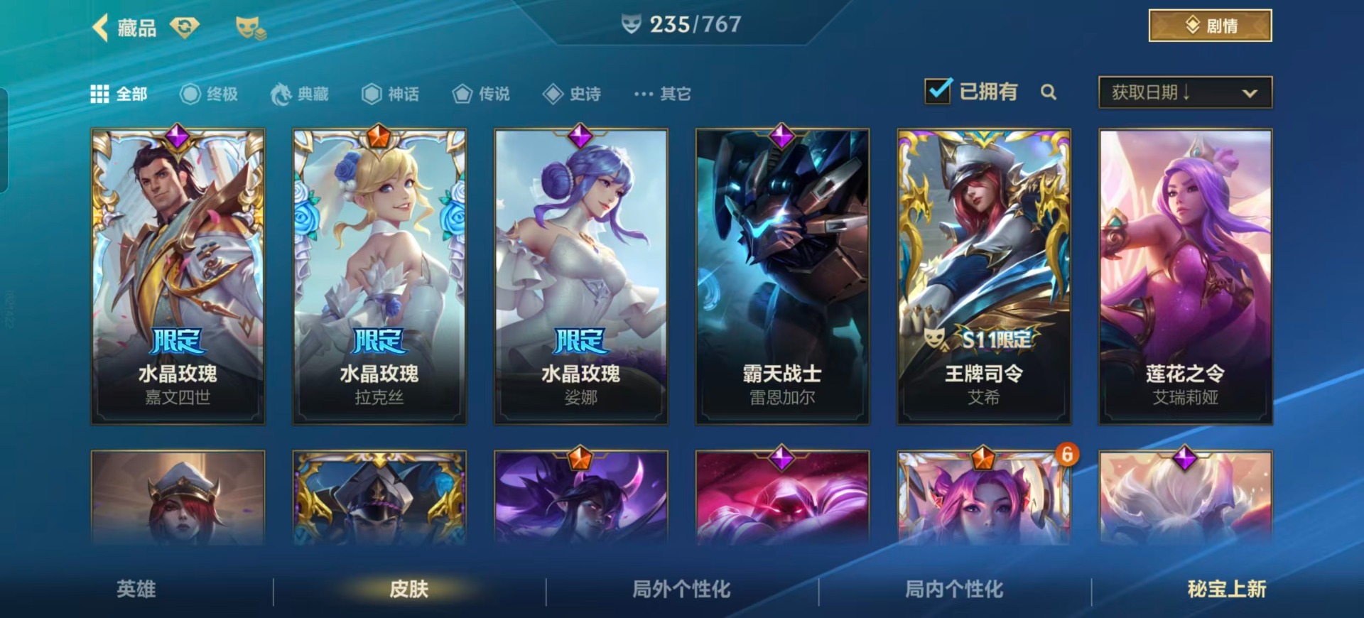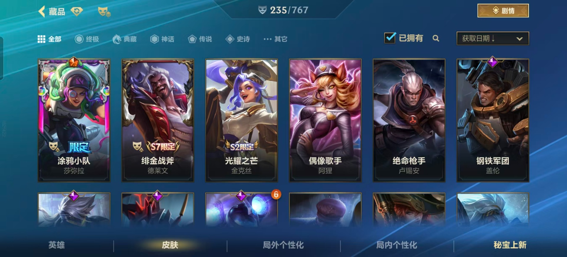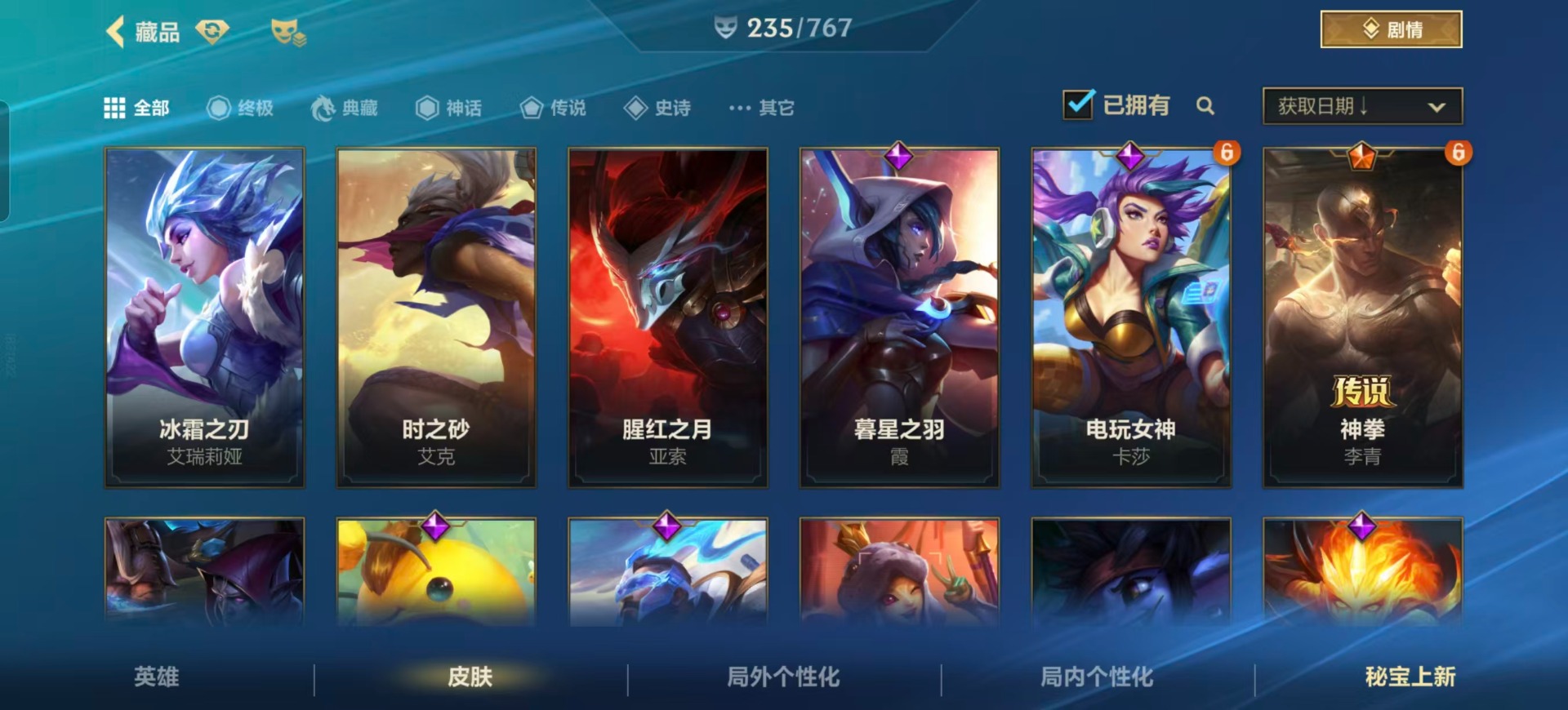 【LSC101】130英雄/706皮肤/傲世宗师/超武乾坤:虹影 劫/超武乾坤:孤拳 瑟提/超武乾坤:裁决 德莱厄斯/超武乾坤:征服 莎弥拉/冠星耀辰 盖伦/臻藏 光影巨翼 亚托克斯/定海神珍:御定乾坤 孙悟空/摄魂使者 薇恩/至臻 斗魂无双 赵信/光谱幻影 金克丝/至臻 喵喵魅影 金克丝/夜星流火 金克丝/星域游侠 圣时豪杰 崔斯特/春晖仙子 苍云缥缈 卡莎/灰烬征服者 潘森/KBG 任凭浪起 破浪 菲奥娜/海克斯科技 安妮/臻藏 御风墨影 亚索/渔帆满载 亚索/星之守护者 永绽盛芒 阿狸/臻藏 西部魔影 卢锡安/至臻 水晶玫瑰 格温/海克斯科技 嘉文四世/银鞍玉甲 嘉文四世/黎明使者 破