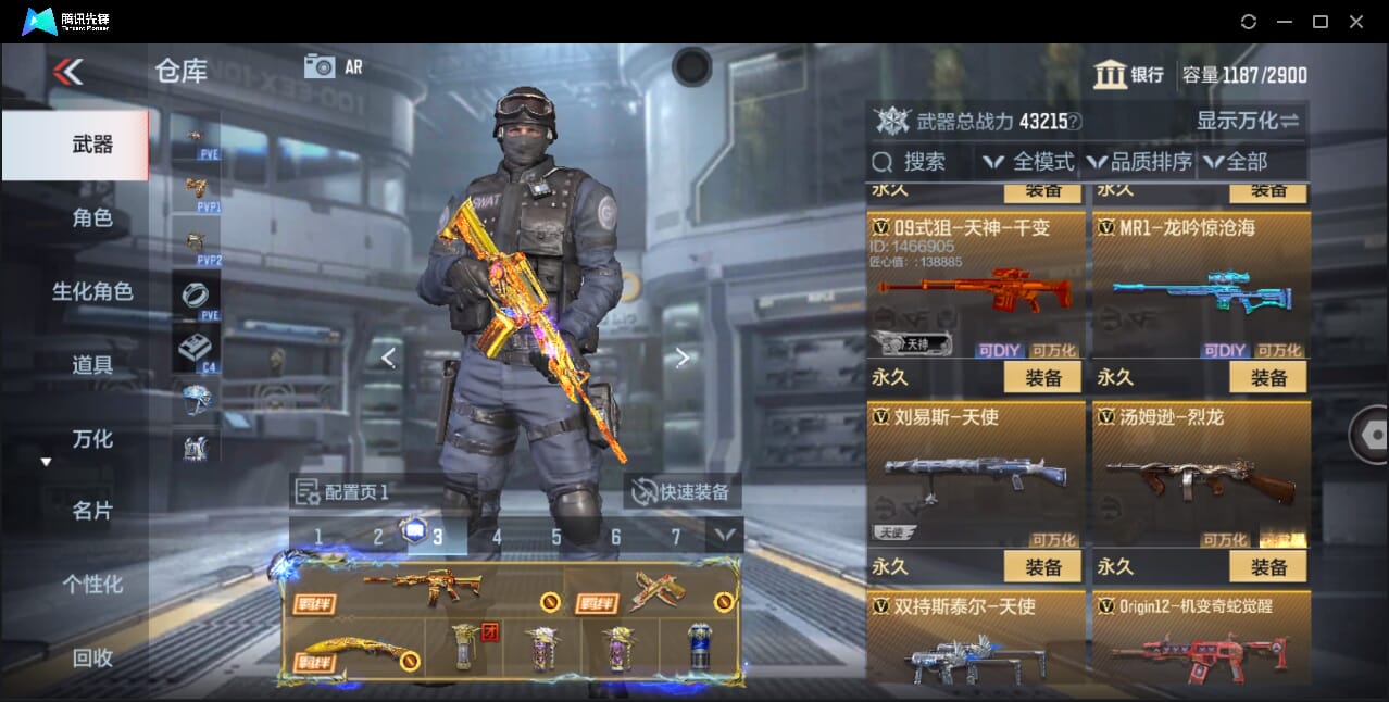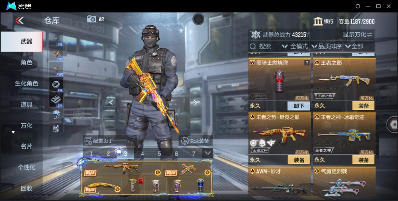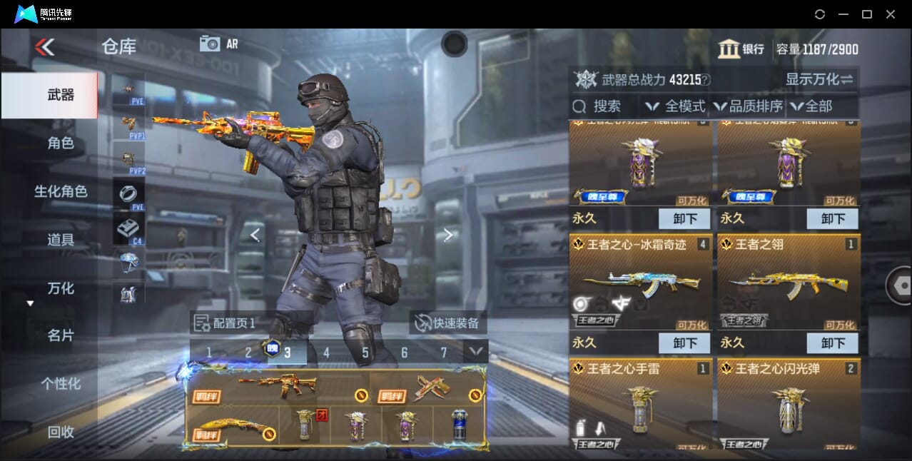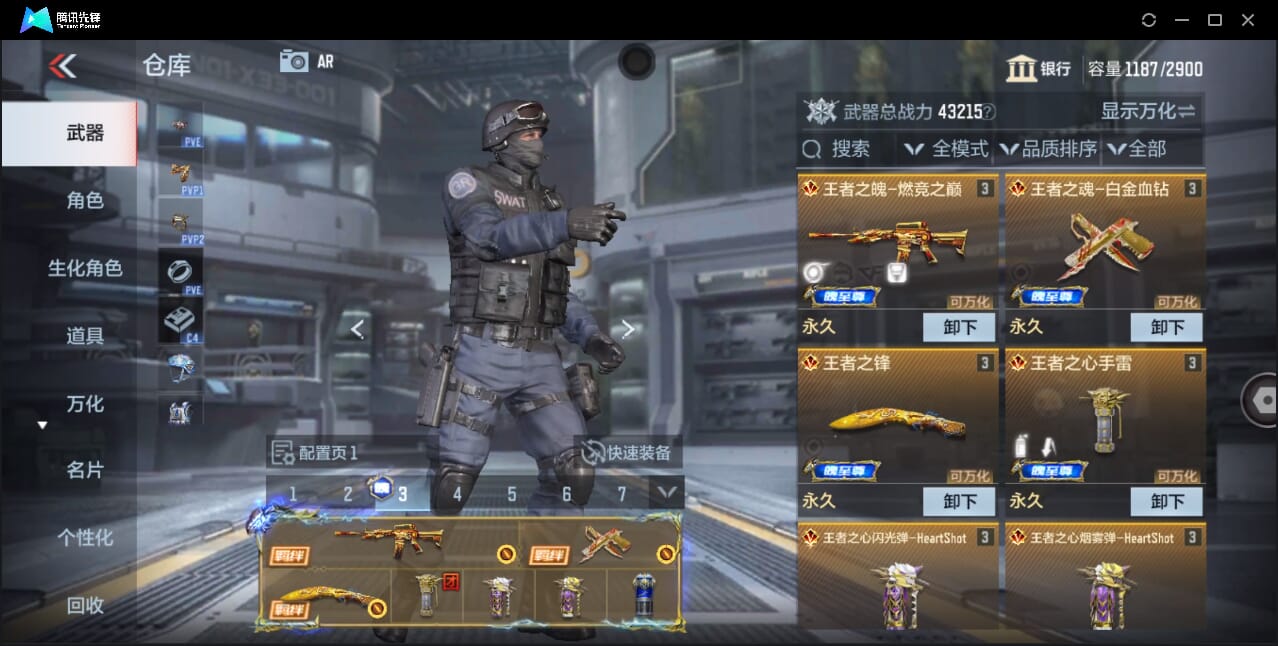 安卓q区 枪战王者 已收藏英雄武器28 角色8 万化39【双持斯泰尔-天使】AK47-无影-不屈老兵 M4A1-死神 巴雷特-毁灭 加特林-堡垒 USP-神罚 沙鹰-修罗-现代金属 沙鹰-修罗-紫魇 双持沙鹰-雷麒麟 柯尔特-伏刹山海觉醒 神罚战斧 秋逸觉醒 马来剑-毁灭-暗月 详情看截图、低价出售找回包赔、截图展示段位不代表实际段位,如赛季更新等不可抗拒因素发生变化、时限道具不保证所剩时间、此截图在网吧截图、实际不包括带网吧特权的道具武器【皓月】TD10405/安卓QQ/贵5/可转区/钱包注销/可二次/189V不重复/37角色/369万化/8王者武器/仁德套/幻神套/威侯/屈魔/81式光明之神/三足金乌/王者之心/王者之烈/王者之隐/王者之魂/王者之业/王者之兽手雷/冰霜奇迹/王者之影闪光弹/王者之竞手雷/【角色】/蔡文昭/零水下丽影/零新生/炽天使X/关小雨/步练师/瞳/黑武士套/毁灭套/冰锋套/机械迷城套/血月套/诗仙套/鼓龙套/卧龙套