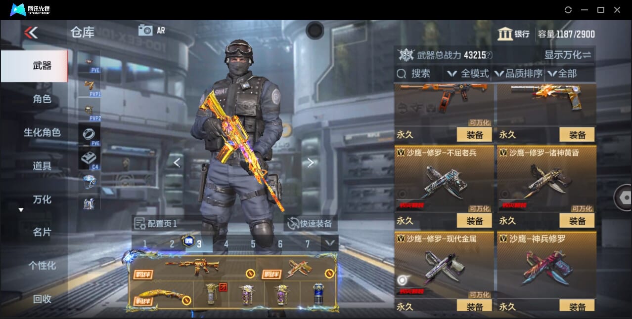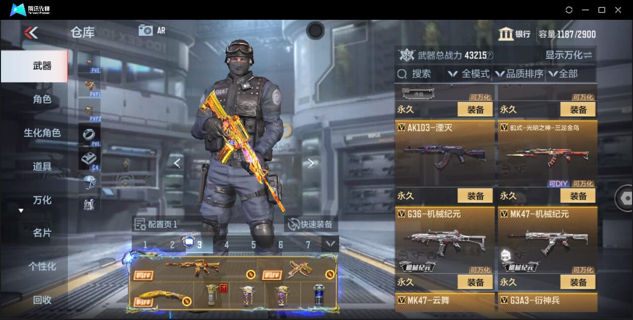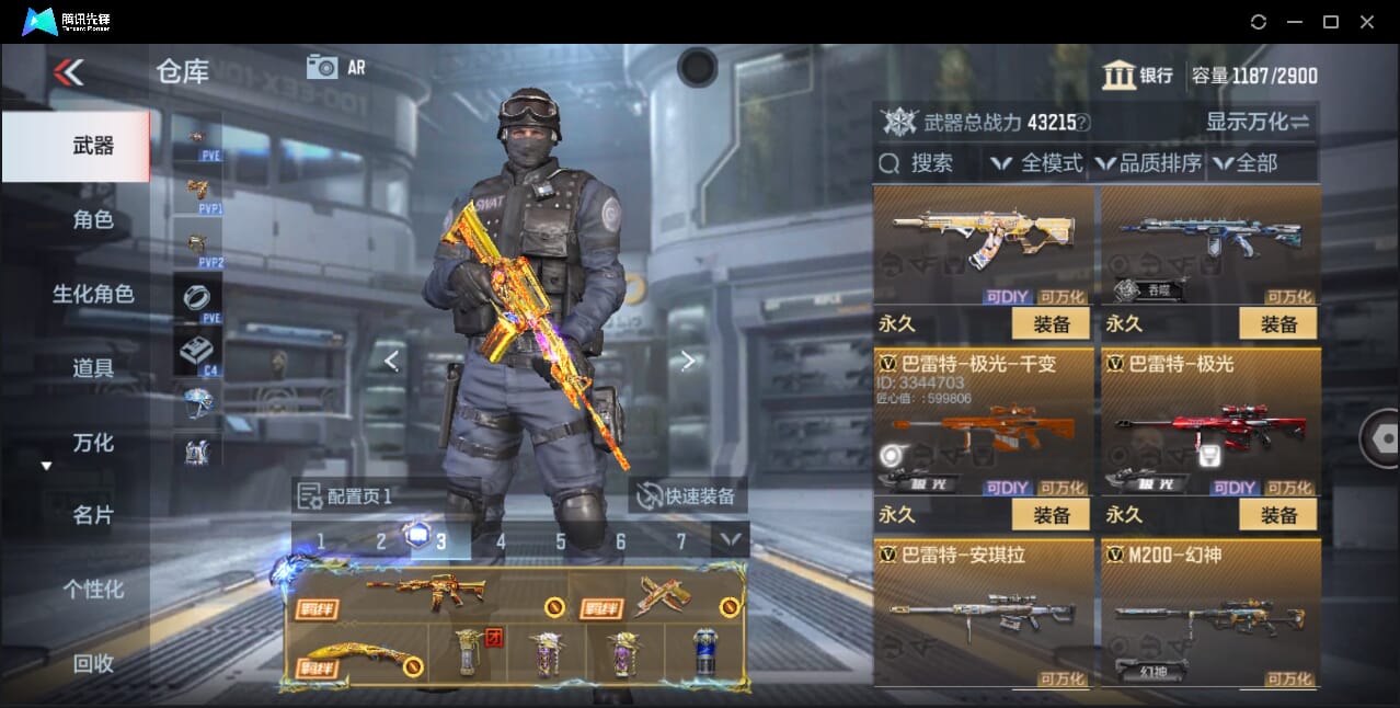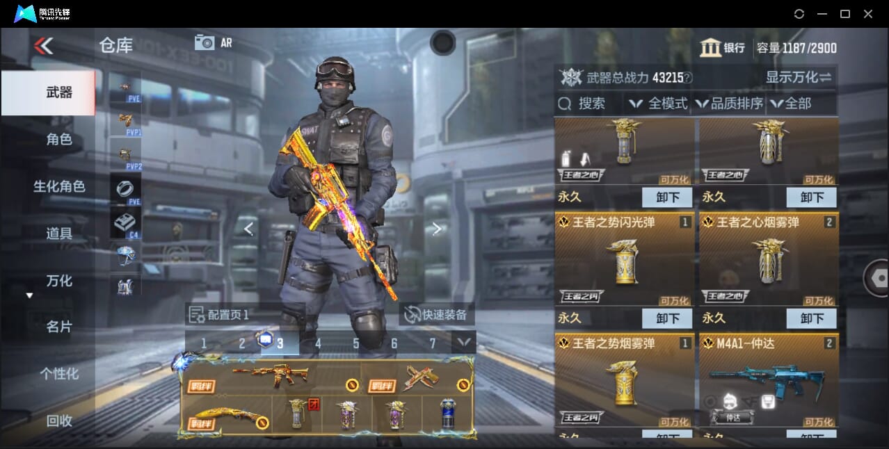安卓q区 枪战王者 已收藏英雄武器28 角色8 万化39【双持斯泰尔-天使】AK47-无影-不屈老兵 M4A1-死神 巴雷特-毁灭 加特林-堡垒 USP-神罚 沙鹰-修罗-现代金属 沙鹰-修罗-紫魇 双持沙鹰-雷麒麟 柯尔特-伏刹山海觉醒 神罚战斧 秋逸觉醒 马来剑-毁灭-暗月 详情看截图、低价出售找回包赔、截图展示段位不代表实际段位,如赛季更新等不可抗拒因素发生变化、时限道具不保证所剩时间、此截图在网吧截图、实际不包括带网吧特权的道具武器【皓月】TD10405/安卓QQ/贵5/可转区/钱包注销/可二次/189V不重复/37角色/369万化/8王者武器/仁德套/幻神套/威侯/屈魔/81式光明之神/三足金乌/王者之心/王者之烈/王者之隐/王者之魂/王者之业/王者之兽手雷/冰霜奇迹/王者之影闪光弹/王者之竞手雷/【角色】/蔡文昭/零水下丽影/零新生/炽天使X/关小雨/步练师/瞳/黑武士套/毁灭套/冰锋套/机械迷城套/血月套/诗仙套/鼓龙套/卧龙套
