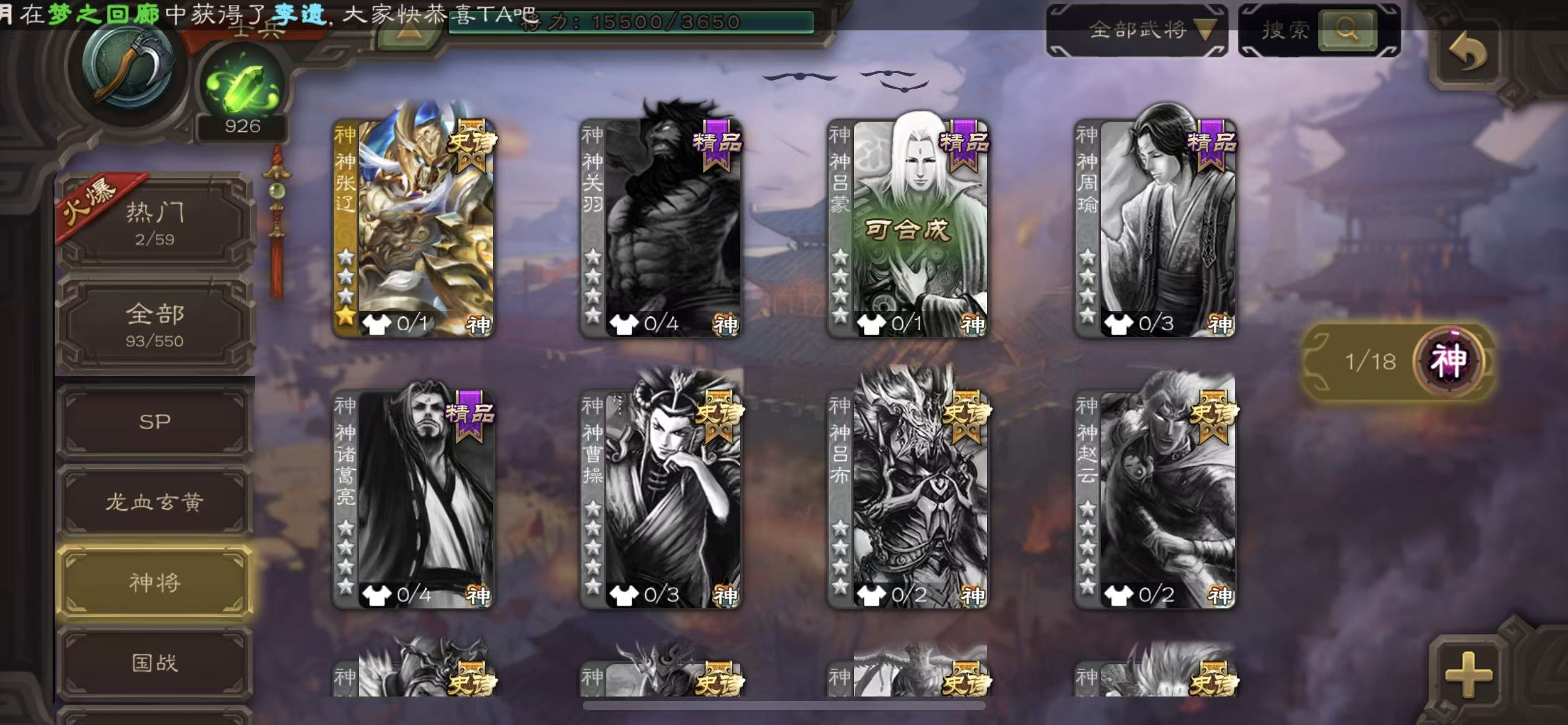 商品描述:士兵动态界徐盛大宝神张辽三卡900将魂