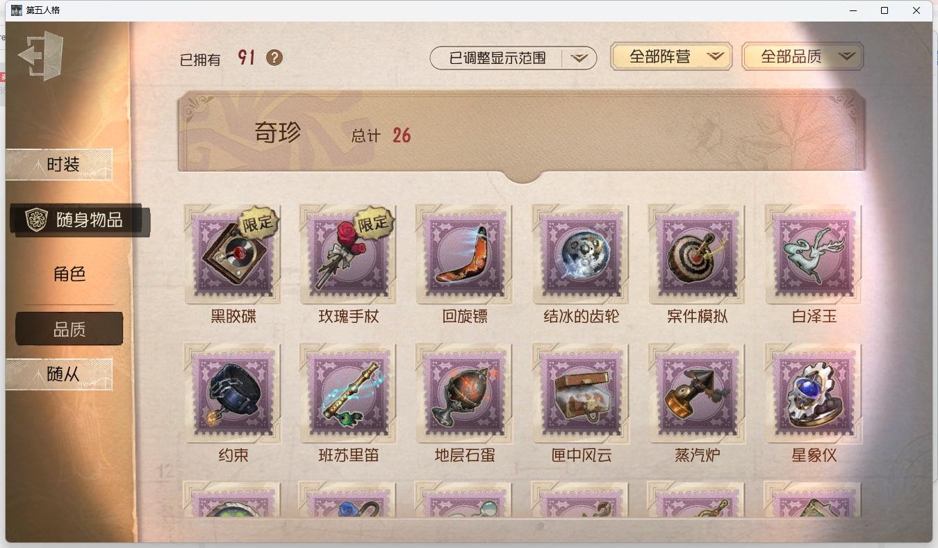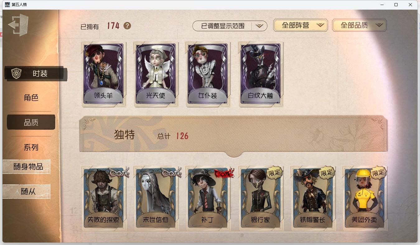[14028274]OPPO-非账号转移 手机账号 559时装 23金皮 147紫皮 20随从 186随身物品 【时装】:勘探员-盖提亚之遗,爱哭鬼-摩诺,红蝶-壹原侑子,渔女-Chef K,小提琴家-不羁的浪漫,野人-雪原猎人,佣兵-柴郡猫,佣兵-赤井秀一,蜘蛛-花祭,“囚徒”-天海兰太郎,“小女孩”-欧律狄刻,调香师-提炼师,记者-伊布,医生-司药,雕刻家-善忘的海马体,记者-华生小姐,画家-掌中篆记,幸运儿-蛋小黄的好朋友,调香师-Buffy,教授-紧急运输,古董商-菌丝研究,画家-多色印刷,蜘蛛-不息载械,木偶师-义体再构,小说家-“伊始新篇”,击球手-迫降专家,空军-尼德霍格,空军-寒香舞,空军-毛利兰,机械师-不会枯萎的花,机械师-小红帽,26号守卫-蛋壳先生,爱哭鬼-点金,病患-逃罪之人,“杰克”-盛宴伯爵,红夫人-贝拉夫人,红蝶-花嫁,调香师-今夜不再,调香师-Lady K,“小女孩”-滚滚伙伴,医生-罪木蜜柑,幸运儿-苗木诚,幸运儿-拉塔托斯克,孽蜥-窃梦行者,盲女-暗金蛋糕,盲女-吉尔达,梦之女巫-川上富江,“囚徒”-蝰