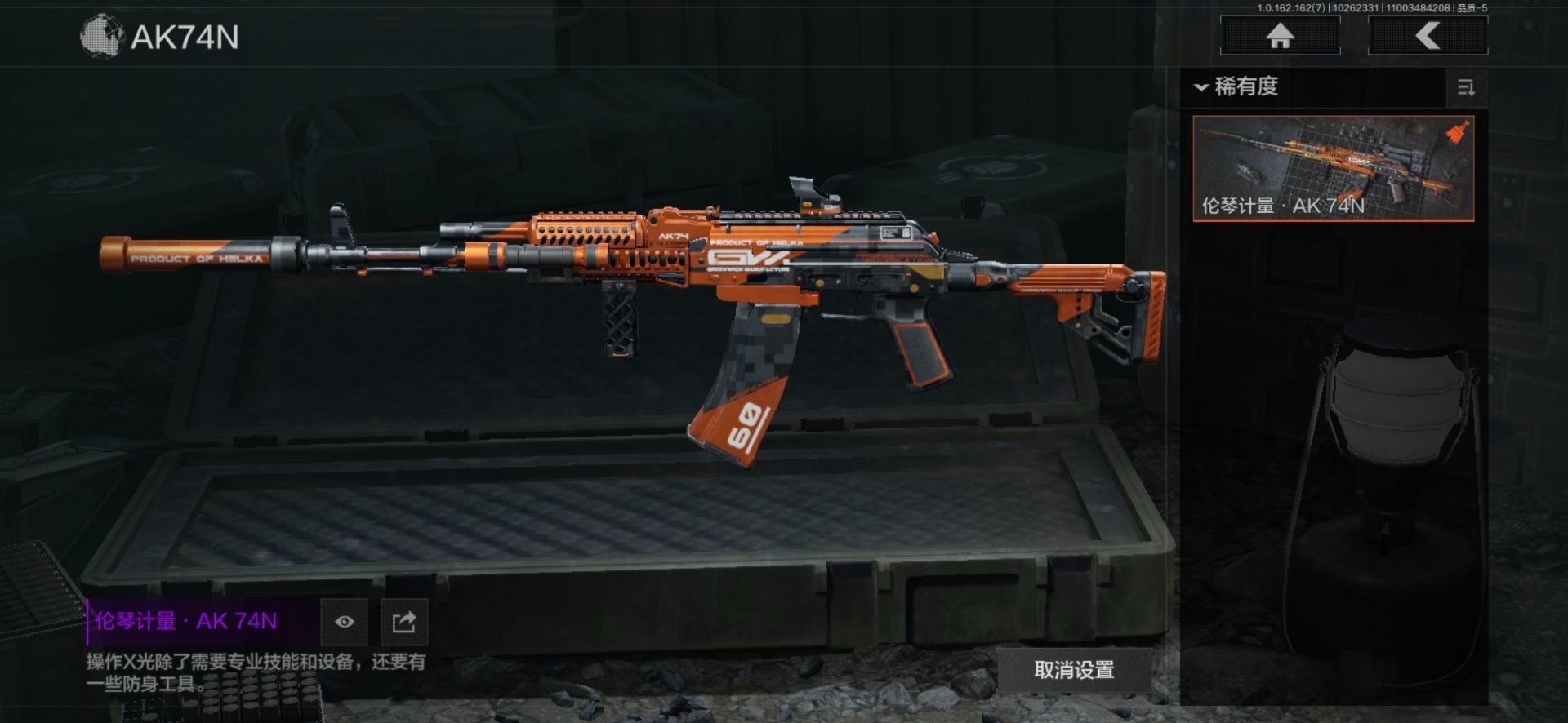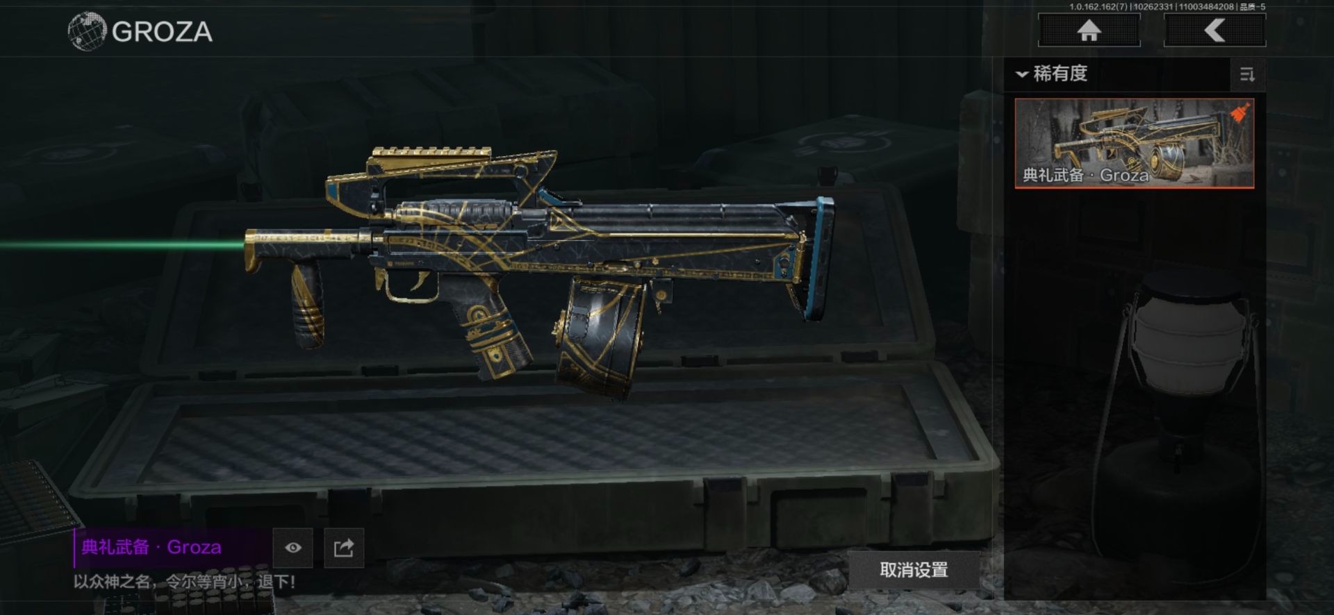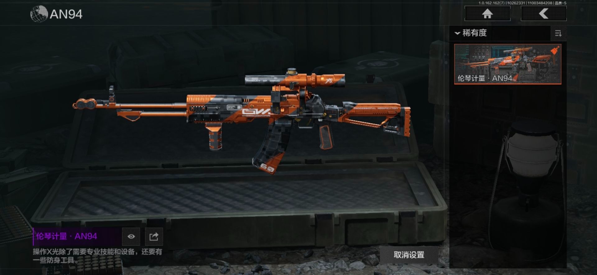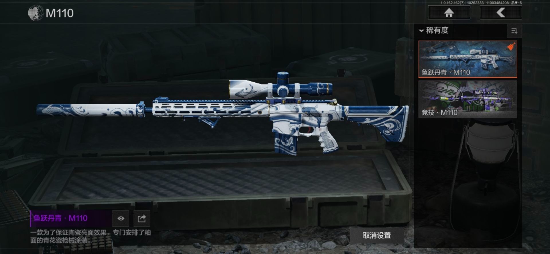 商品描述:[13573192]库存价值73642 2金枪皮 可修改实名 【柯恩币数量】:90.0【金色枪皮】:棱光裂变·QBU191,伦琴幻影·AX50【紫色枪皮】:德尔塔小队·H416,棱光裂变·莫辛,棱光裂变·AK102,棱光裂变·AKM,竞技·AUG,伦琴计量·SKS,伦琴计量·AN94,伦琴计量·AK74N,典礼武备·S12K,典礼武备·GROZA,秘域鎏金·RPK16,竞技·M110,竞技·MDR,猩红羽翼·VSS,骤羽尖啸·莫辛,鱼跃丹青·M110,鱼跃丹青·DT MDR,白狼连队·VSS【角色装扮(紫)】:鎏金街头套装
