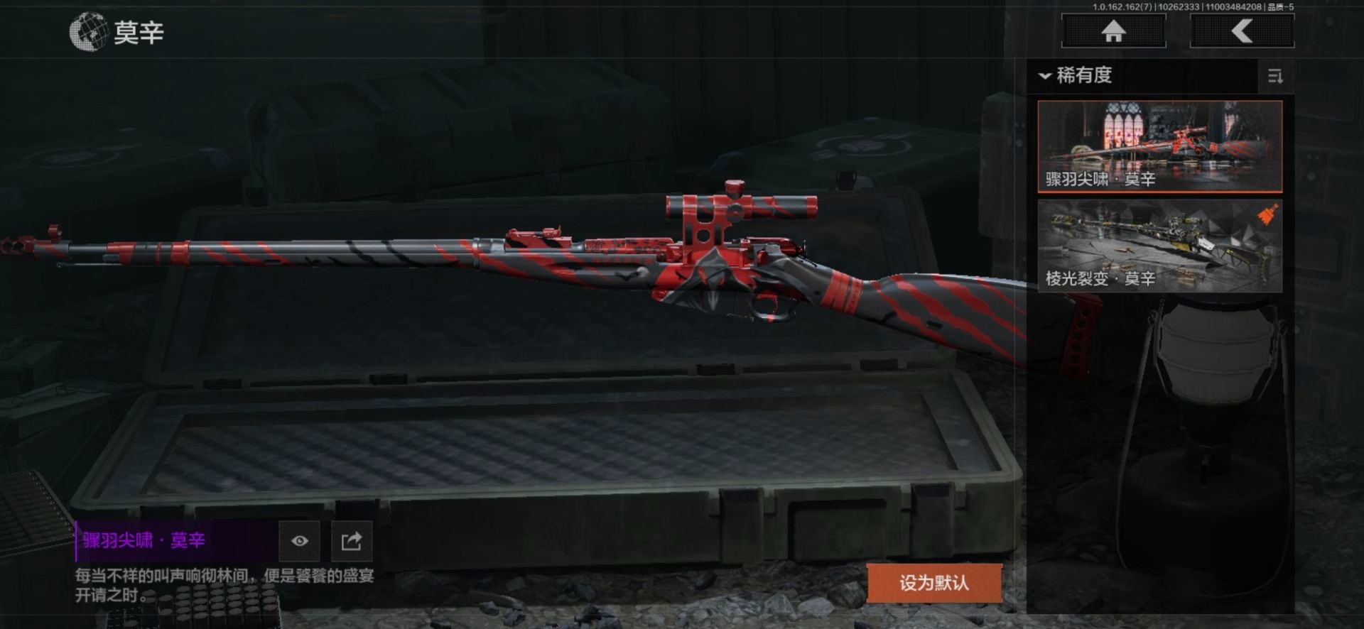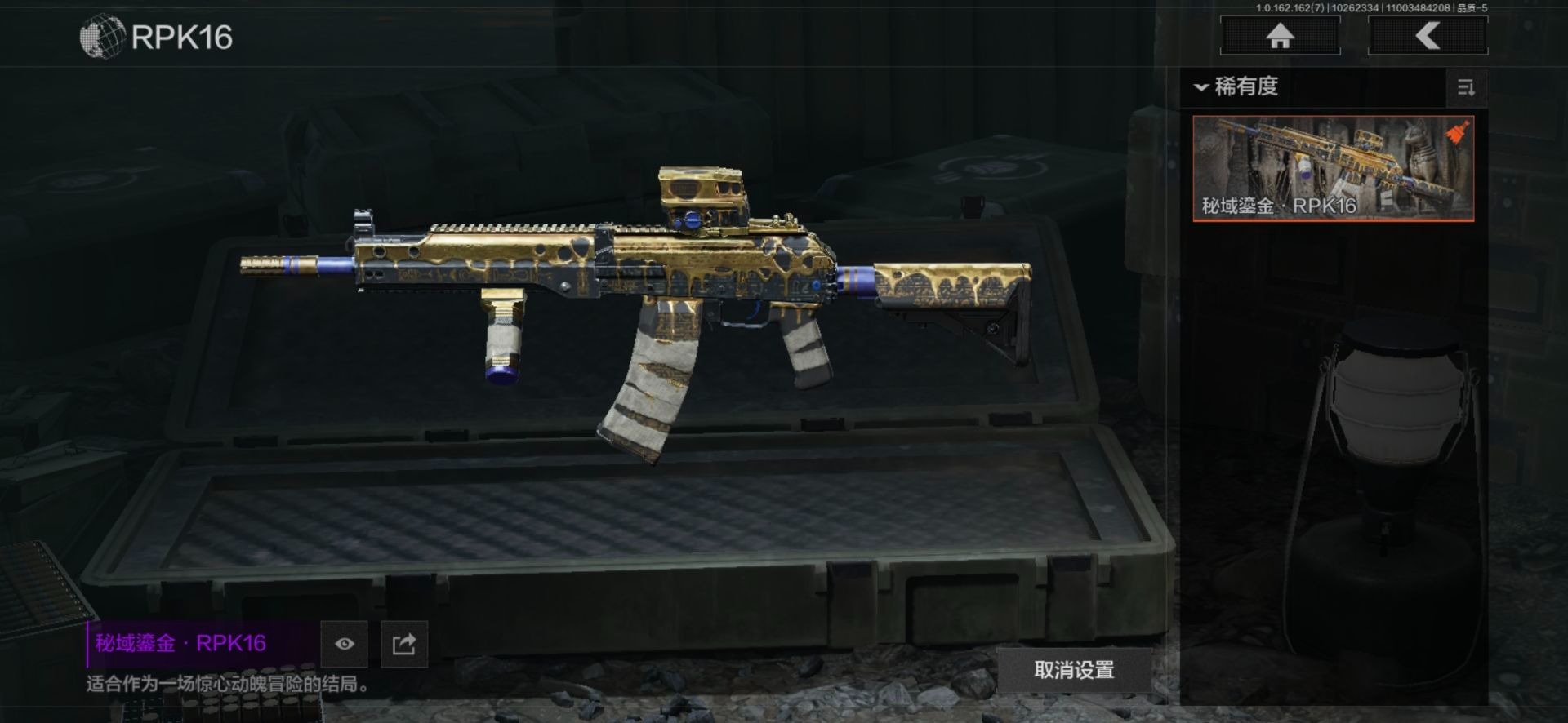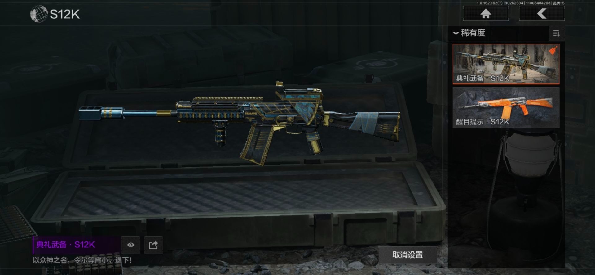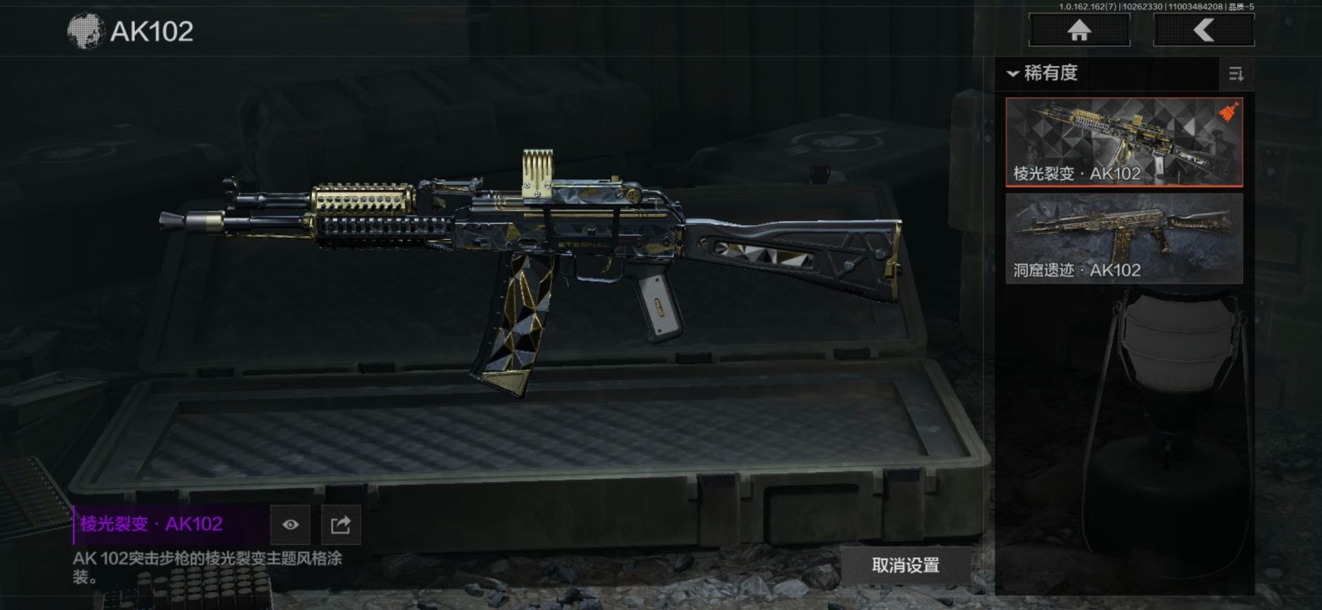商品描述:[13573192]库存价值73642 2金枪皮 可修改实名 【柯恩币数量】:90.0【金色枪皮】:棱光裂变·QBU191,伦琴幻影·AX50【紫色枪皮】:德尔塔小队·H416,棱光裂变·莫辛,棱光裂变·AK102,棱光裂变·AKM,竞技·AUG,伦琴计量·SKS,伦琴计量·AN94,伦琴计量·AK74N,典礼武备·S12K,典礼武备·GROZA,秘域鎏金·RPK16,竞技·M110,竞技·MDR,猩红羽翼·VSS,骤羽尖啸·莫辛,鱼跃丹青·M110,鱼跃丹青·DT MDR,白狼连队·VSS【角色装扮(紫)】:鎏金街头套装