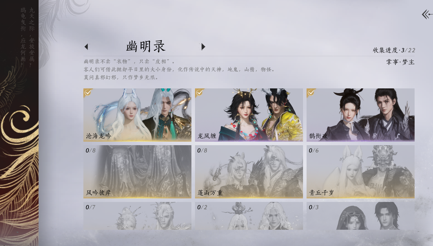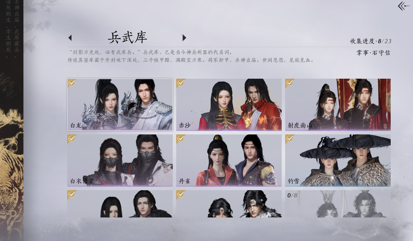 XY-076654477 角色性别【文本】女 【绝境】 【有换绑CD】 【不可换绑】 【未注册】 【不支持人脸包赔】 【女】 【是】 【是】 【否】XY-076643637 风华值21989 武林造诣(鹅)35550 已用八音窍数量3 未用八音窍数量0 等级100 角色等级100 角色性别【文本】男 【无换绑CD】 【绝境】 【无冷却】 【不支持人脸包赔】 【男】 【手机帐号】 【网易手机账号】 【是】 【是】 【未拥有】 【已知晓】 【自己上传】 稀有套装3 稀有武学奇术1 套装14 武学奇术1 稀有套装:有狐绥绥,乌纱红漪,晏平生; 稀有武学奇术:一雷惊蛰; 套装:清河强者,金池鲤,翠羽顾,江湖客,逐红花,一心三藏,丹雀,午风清,雁还乡,射虎南山,宿露轻盈,驰走西风,相思曲,云中锦书; 武学奇术:墨泼风;