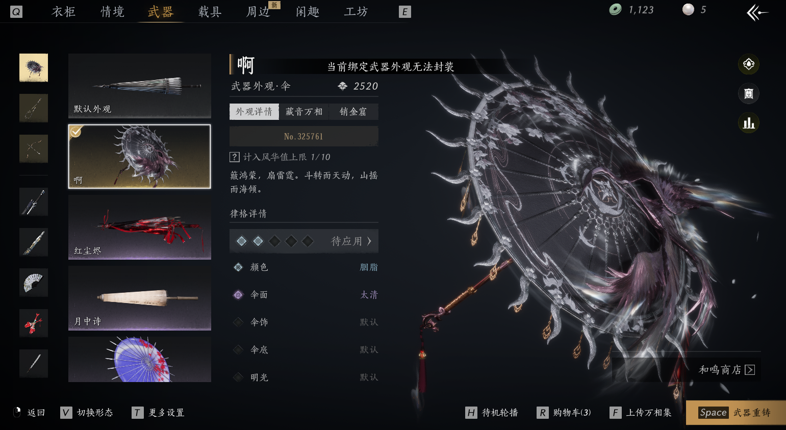 商品描述:XY-076656654 【聆音绝版套装, 侠名:龙城飞将./剑开天门。竞速号】 风华值39561 武林造诣(鹅)34450 已用八音窍数量2 等级100 角色性别【文本】女 【绝境】 【无换绑CD】 【未绑定或可换绑】 【未注册】 【不支持人脸包赔】 【女】 【无】 【安卓】 【否】 【否】 稀有套装2 稀有武器外观1 套装5 稀有套装:天上白玉京,瑞鹤仙; 稀有武器外观:藏音·北溟有鱼; 套装:剑影藏心,瑞鹤仙,蜀戏春,蝎心蛟影,驰走西风;