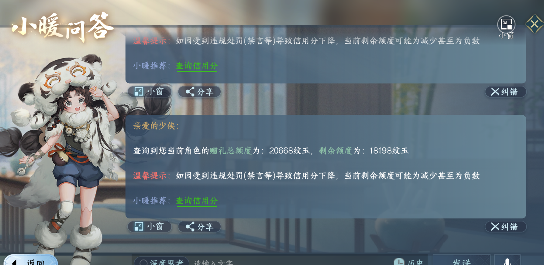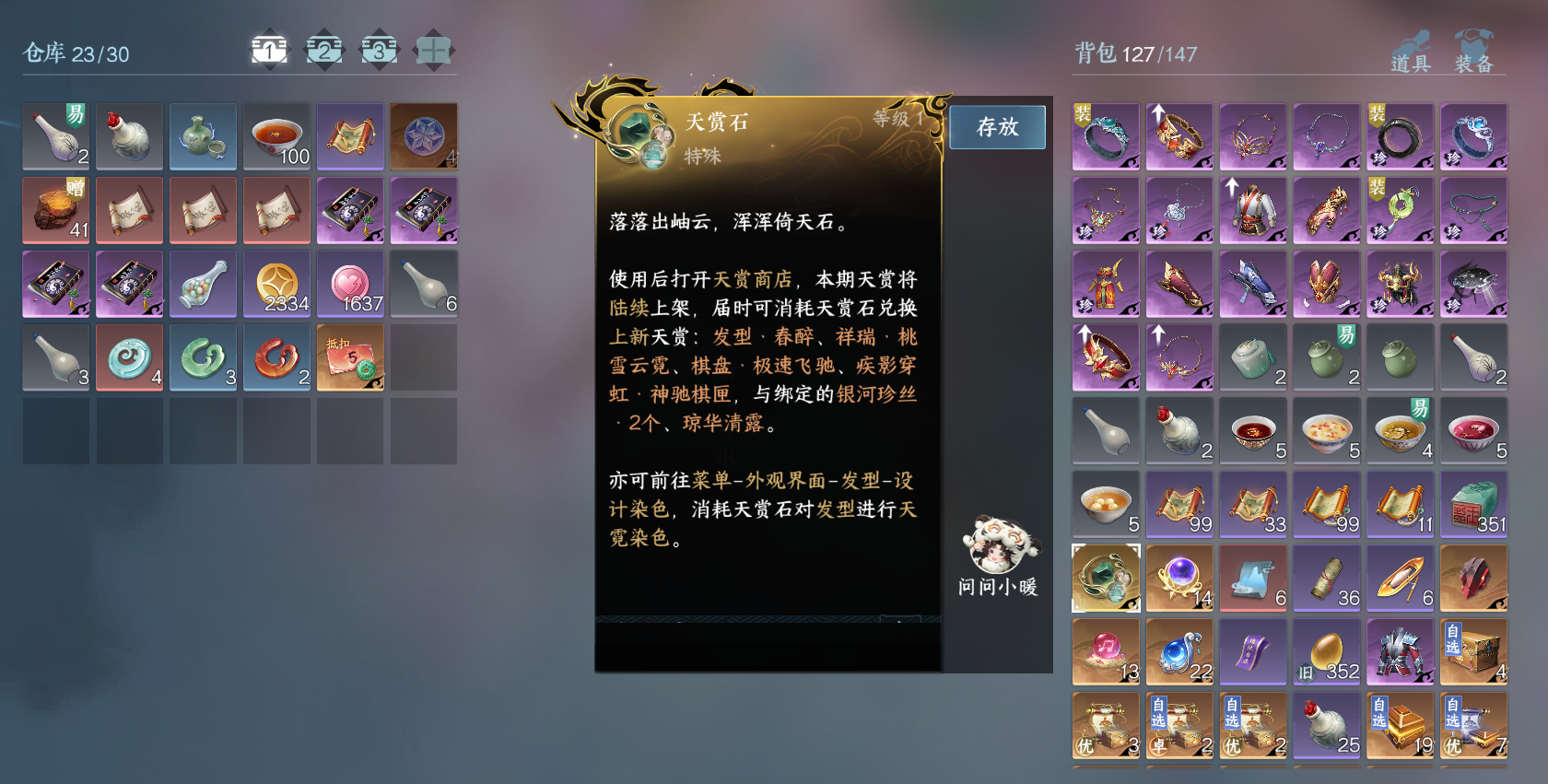 XY-076643134 战力值460477 总评460477 角色等级89 衣品值209790 国色值134400 已用天赏石29 未用天赏石0 天霓染数量9 【网易邮箱账号】 【无换绑冷却】 【素问】 【男】 【7级】 【把酒临风】 商城外观1 商城外观:云极天穹;