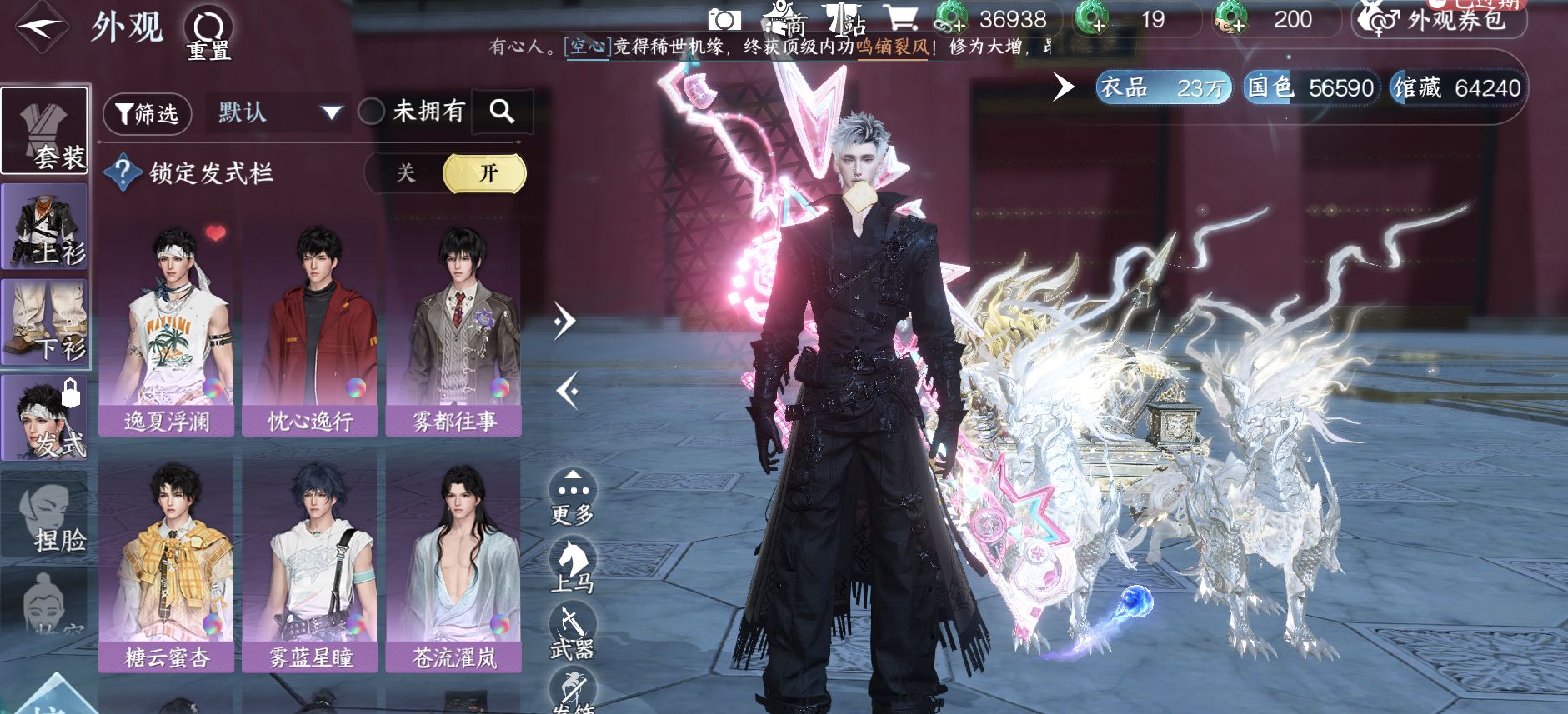 XY-076646230 战力值1087684 总评1087684 角色等级89 衣品值259225 国色值38910 已用天赏石21 天霓染数量1 【网易手机账号】 【无换绑冷却】 【沧澜】 【男】 【6级】 【把酒临风】 【互通】 转盘外观2 天赏外观8 天霓染1 天赏祥瑞3 天赏灵宠1 祥瑞坐骑34 商城外观50 转盘外观:微光,沐风; 天赏外观:虹夜曲,喵语,风华,鸾栖,浮云山,火焰武器,幻焰狐影,竞梦绒心; 天霓染:竹隐翠生*1; 天赏祥瑞:灵猊衔威舆,贯日猊,幻虹猊; 天赏灵宠:灵宠·天狼星; 祥瑞坐骑:呆宝,布丁,风行·江湖景,风行·世间情,风行·冷香萦,风行·万灯明,龙衔瑞焰,金冠鼠鼠,纵风甲车·玄,粉黛娇,幻琉晶,狂霸天,星河转·银昼,星河转·赤夜,骋风叱焰,抟乌镇妖,贺岁喜狮,伯力,咩郎,墨流云·玄色,墨流云·朱红,墨流云·靛青,奔虹赤,踏星夜,彩虹小马,独步悠然车,踏歌行夜,犬威哮月,犬威哮月·沧,银砂素波,梅香团子,绒绒夜,隐云涧,空山闲; 商城外观:金筹曜夜,朝歌旧梦,暮夜陷落,逸夏浮澜,玄喵夜行,鳞纱幻海,飞狐烁金,绯魂寄川,鹊桥仙袂,蕉雨夜澜,靛蓝沉汐,烹椒听雀,青羽惊梦,拂新柳,归墟化神,绯夜誓语,血宴风华,鸿福昭运,羲皇定世,神戬天威,玲珑灼火,诗剑纵歌,千星咏叹,灵珠海羽,跃动心芒,蝎影度月,灼金喵影,侠影流霜,狼原灰骑,晴岸涛吟,帝皇铠甲,乌夜禁巡,衣香鬓影,逆鳞浊日,瀚渊龙炎,曦照东晖,金粉绮梦,烽火浮生,赤狐魅语,圣月沉夜,天纵恒尊,林泽仙踪,白灵幻尘,法度禅心,玄证禅心,极夜天曦,御宇临渊,异界倾音,轻功诀天马,轻功诀伞梦;XY-076647205 战力值1047 衣品值206690 国色值88190 已用天赏石13 天霓染数量4 【网易邮箱账号】 【无换绑冷却】 【沧澜】 【女】 【5级】 【把酒临风】 转盘外观3 天赏外观5 天霓染3 武器环身1 配饰1 转盘外观:灼妖,曦光,旋悠光; 天赏外观:无言歌,鳞川,桀骜,灵蔓,幻焰狐影; 天霓染:朔雪从风*1,春禧暖岁*1,混天焚莲*1; 武器环身:掌星执辰; 配饰:流梦比翼;
