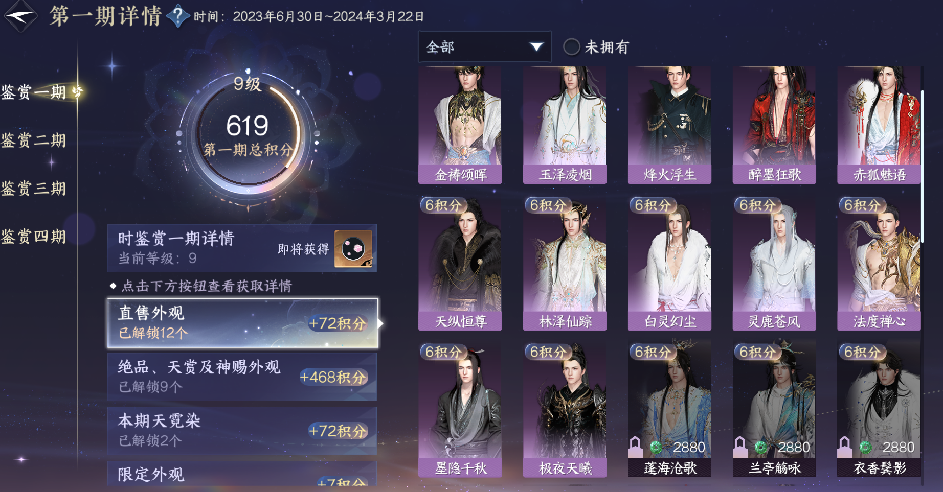 XY-076643134 战力值460477 总评460477 角色等级89 衣品值209790 国色值134400 已用天赏石29 未用天赏石0 天霓染数量9 【网易邮箱账号】 【无换绑冷却】 【素问】 【男】 【7级】 【把酒临风】 商城外观1 商城外观:云极天穹;