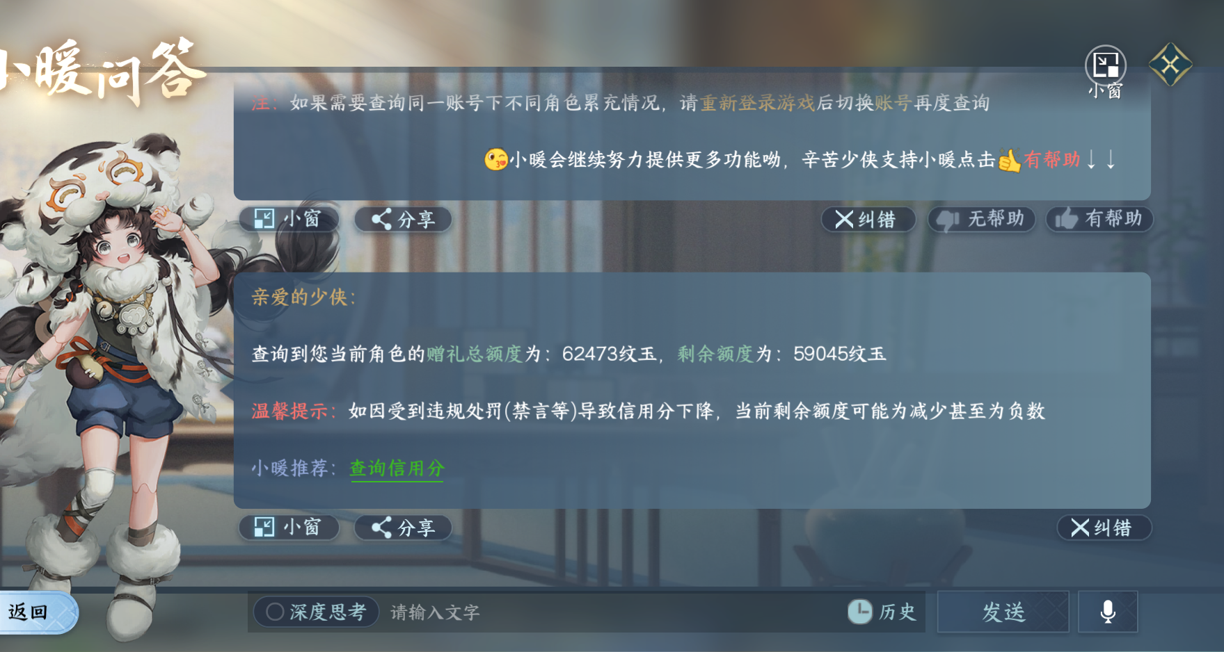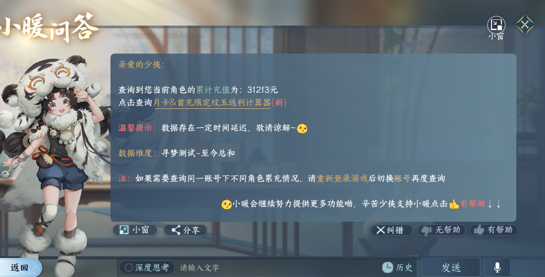 XY-076666979 战力值1012000 总评1012000 角色等级89 衣品值101790 国色值12870 已用天赏石4 【网易手机账号】 【有换绑冷却】 【龙吟】 【女】 【2级】 【无防沉迷】 【把酒临风】 【互通】 天赏外观4 祥瑞坐骑14 商城外观22 天赏外观:觅萤,绯玉枝,鳞川,绯烟香袅; 祥瑞坐骑:风行·江湖景,风行·世间情,龙衔瑞焰,风行·万灯明,金冠鼠鼠,粉黛娇,骋风叱焰,奔虹赤,犬威哮月·沧,玉霄飞练,花花团子,梅香团子,牛奶酥,隐云涧; 商城外观:猩红猎夜,羽信絮梦,绯月狼舞,白露惑心,巧影逐光,音律织光,朝歌旧梦,飞叶若依,晶梦绮舞,灵珠饮月,闻鹤九皋,蝎影度月,灵语星彩,凤亭疏香,云汉逢夕,难负君思,星宫遐音,赤狐魅语,林泽清瑶,白灵雪魅,春灯裁蝶,轻功诀伞梦;
