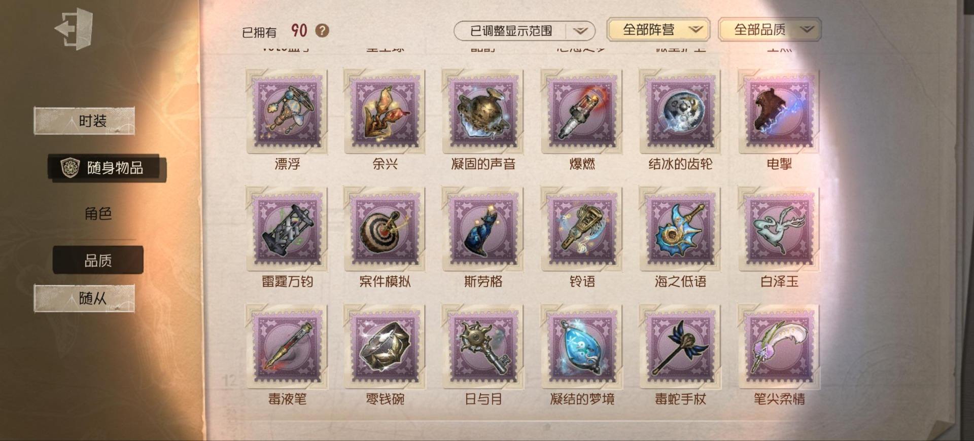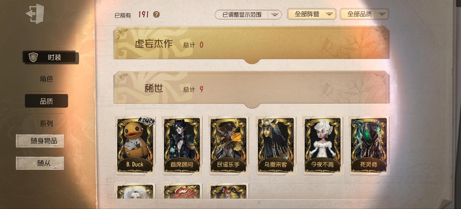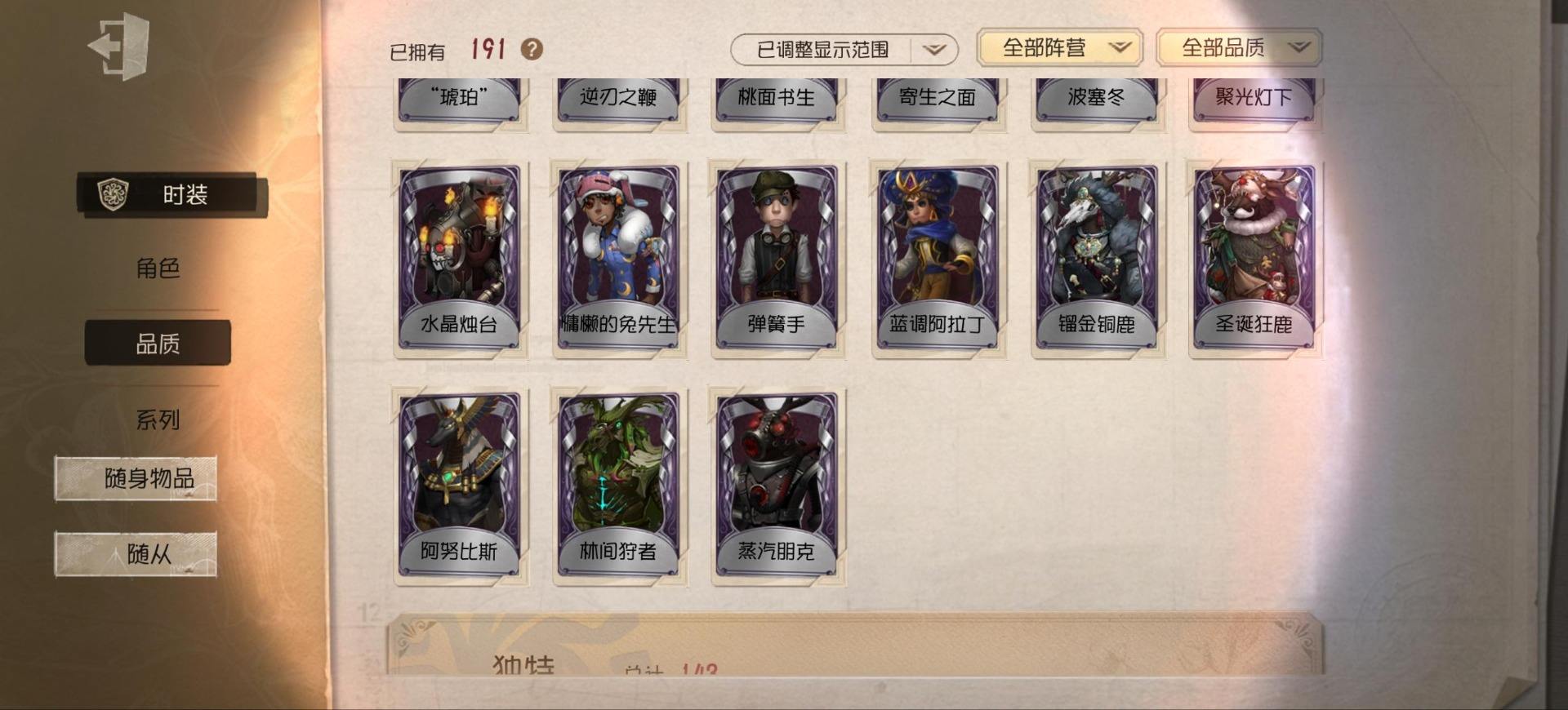 [14349997]苹果官服 邮箱账号 1虚妄杰作 243时装 13金皮 70紫皮 18随从 101随身物品 【时装】:古董商-招风旗,渔女-垂泪的神女,使徒-多加雷萨,小说家-最原终一,画家-温暖的平安夜,古董商-木兰,园丁-异想Hello Kitty,爱哭鬼-摩诺,渔女-百万人鱼,律师-亚伯拉罕·葛雷,祭司-“绯”,渔女-Chef K,古董商-填海平,邮差-秋日随想,“囚徒”-天海兰太郎,调香师-提炼师,古董商-黑鸦,咒术师-椰香假日,杂技演员-雨宫莲,杂技演员-JOKER,空军-爱神之吻,记者-伊布,红蝶-融化的泪琥珀,大副-雷斯垂德探长,雕刻家-善忘的海马体,骑士-艺术品商人,爱哭鬼-善恶的本性,教授-吟游诗人,画家-掌中篆记,26号守卫-秘密大厨,小说家-无归的昨日,冒险家-赞因,“法罗女士”-向深处求告,魔术师-动力芯,幸运儿-蛋小黄的好朋友,古董商-墨韵,宿伞之魂-桃面书生,摄影师-“琥珀”,勘探员-盛夏飞盘,“法罗女士”-VIOLET,古董商-菌丝研究,先知-纯白之盐,调酒师-逐浪的玫瑰,“法罗女士”-芳泽霞,“小女孩”-异动指针,小说家-“伊始新篇”,园丁-郁金香之梦,破轮-沙滩漂移,蜡像师-收藏品,空军-新岛真,空军-QUEEN,祭司-“朝圣者”,机械师-佐仓双叶,空军-“苏珊娜”,蜡像师-淋浴,魔术师-梅林,昆虫学者-可妮兔,“杰克”-夜来香,大副-明智吾郎,“噩梦”-随机数,红蝶-仙鹤,红蝶-彼岸,红蝶-更纱,红夫人-贝拉夫人,红蝶-竹华,舞女-高卷杏,舞女-女武神,舞女-PANTHER,调香师-致命温柔,调香师-Lady K,调香师-红菱艳,调香师-摩涅莫绪涅之梦,调香师-花序,园丁-奥村春,先知-月相,“小女孩”-年岁,前锋-坂本龙司,盲女-海西遗风,梦之女巫-川上富江,摄影师-月下绅士,入殓师-喜多川祐介【随身物品】:荣光的残像(稀世),茅龙书(稀世),夏(稀世),遗忘之花(稀世),火火火(奇珍),指挥(奇珍),海岸花环(奇珍),海之低语(奇珍),集邮册(奇珍),回旋镖(奇珍),炸药桶(奇珍),“全熟”(奇珍),凝固的声音(奇珍),漂浮(奇珍),充气海豚(奇珍),沙漠精灵(奇珍),咖啡壶(稀世),德米特里1号(奇珍),聚集哨笛(奇珍),手摇铃(奇珍),酩酊(奇珍),心海之梦(奇珍),欢呼(奇珍),糖果鬼(奇珍),秘密(奇珍),折柳(稀世),海底遗物(奇[13739442]苹果官服 邮箱账号 208时装 15金皮 63紫皮 8随从 78随身物品 【时装】:守夜人-KNIGHT-c3,破轮-胡桃夹子,勘探员-盖提亚之遗,飞行家-异相睡眠,小丑-捣蛋裘克,爱哭鬼-摩诺,作曲家-幽灵帆,舞女-西尔菲德,佣兵-中岛敦,园丁-宇宙女巫,杂技演员-茶话会,记者-华生小姐,“囚徒”-OPH.LUCA,骑士-Mentor K,教授-吟游诗人,病患-溯光,“杰克”-加里,雕刻家-善忘的海马体,邮差-华生医生,小丑-OPH.JOKER,邮差-潘塔龙,小说家-“伊始新篇”,哭泣小丑-熄灭的太阳,“法罗女士”-芳泽霞,时空之影-“有机磷”,入殓师-“温室”,“记录员”-删除符,击球手-迫降专家,哭泣小丑-炮弹飞船,勘探员-中原中也,爱哭鬼-雪上小王子,红夫人-女大公,画家-江户川乱步,红蝶-更纱,舞女-高卷杏,调酒师-海盐特调,幸运儿-双一,小丑-变脸王,魔术师-广津柳浪,梦之女巫-信使,前锋-SKULL,梦之女巫-川上富江,前锋-坂本龙司,摄影师-宿醉,“囚徒”-太宰治